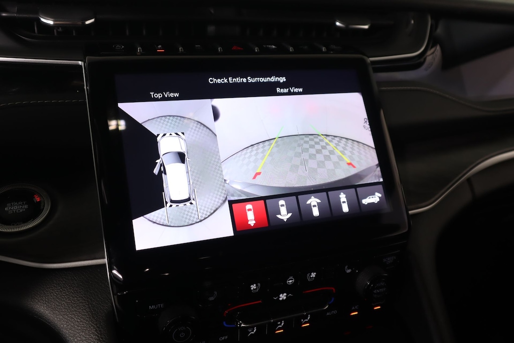 THIS VEHICLE COMES EQUIPPED WITH THE FOLLOWING OPTIONS AND FEATURES: Luxury Tech Group II (2nd Row Manual Window Shades, Auto-Dimming Exterior Driver Mirror, Capri Leatherette w/Axis II Seats, Integrated Off-Road Camera, Intersection Collision Assist System, Memory Steering Column, ParkSense Front/Rear Park Assist w/Stop, Passive Entry - Front/Rear Doors, Liftgate, Power Tilt/Telescope Steering Column, Rain Sensitive Windshield Wipers, Rear Back Up Camera Washer, Rearview Autodim Digital Display Mirror, Surround View Camera System, Ventilated Front Seats, and Wireless Charging Pad), Quick Order Package 23E, Cooper Certified Certified, 3.45 Rear Axle Ratio, 3rd row seats: split-bench, 4-Wheel Disc Brakes, 6 Speakers, ABS brakes, Active Noise Control System, Air Conditioning, Alloy wheels, AM/FM radio: SiriusXM with 360L, Anti-whiplash front head restraints, Audio memory, Auto High-beam Headlights, Automatic temperature control, Brake assist, Bumpers: body-color, Capri Leatherette Seats, Compass, Delay-off headlights, Driver door bin, Driver vanity mirror, Dual front impact airbags, Dual front side impact airbags, Electronic Stability Control, Emergency communication system, Four wheel independent suspension, Front anti-roll bar, Front Bucket Seats, Front Center Armrest w/Storage, Front dual zone A/C, Front fog lights, Front License Plate Bracket, Front Passenger Interactive Display, Front reading lights, Fully automatic headlights, Garage door transmitter, Heated door mirrors, Heated front seats, Heated rear seats, Heated steering wheel, Illuminated entry, Knee airbag, Low tire pressure warning, Manual Fold Seatbacks, Memory seat, Molded In Color Black/Gloss Black Roof Rails, Navigation System, Normal Duty Suspension, Occupant sensing airbag, Outside temperature display, Overhead airbag, Overhead console, Panic alarm, ParkView Rear Back-Up Camera, Passenger door bin, Passenger vanity mirror, Power door mirrors, Power driver seat, Power Liftgate, Power passenger seat, Power steering, Power windows, Radio data system, Radio: Uconnect 5 Nav w/10.1" Display, Rear air conditioning, Rear anti-roll bar, Rear reading lights, Rear window defroster, Rear window wiper, Reclining 3rd row seat, Remote keyless entry, Security system, Speed control, Speed-Sensitive Wipers, Split folding rear seat, Spoiler, Steering wheel mounted audio controls, Tachometer, Telescoping steering wheel, Tilt steering wheel, Traction control, Trip computer, Turn signal indicator mirrors, Variably intermittent wipers, Voltmeter, and Wheels: 18" x 8.0" Fully Painted Aluminum.