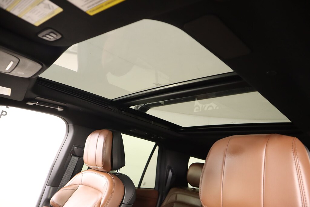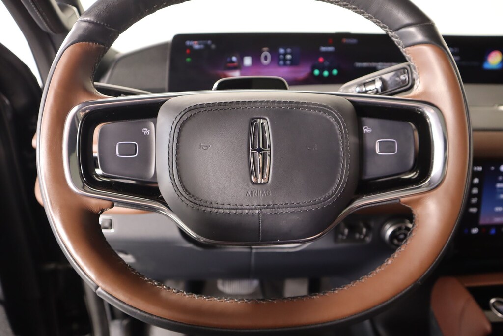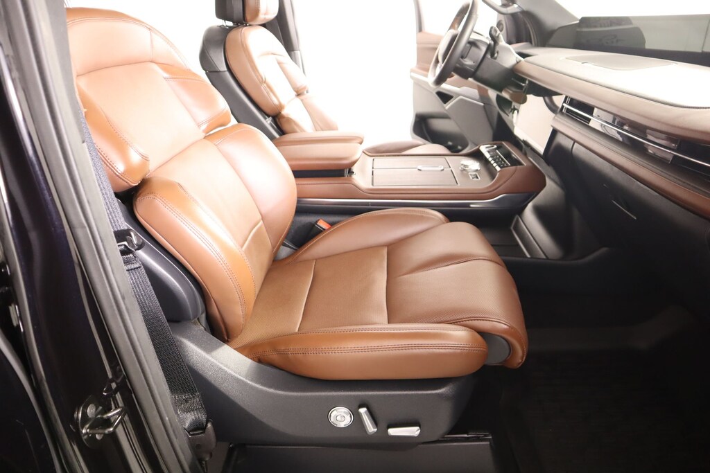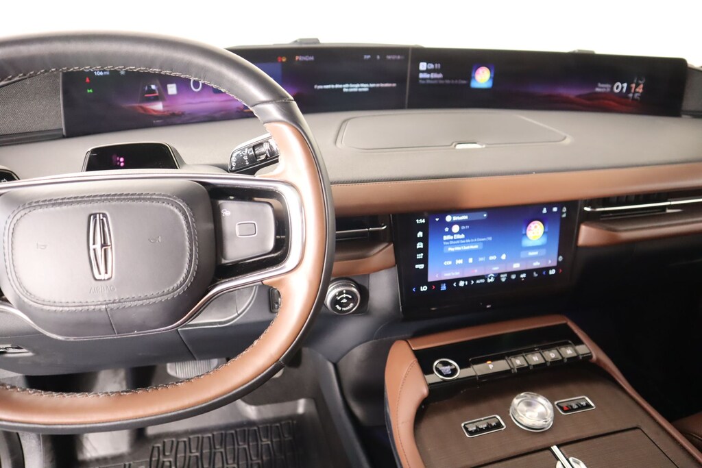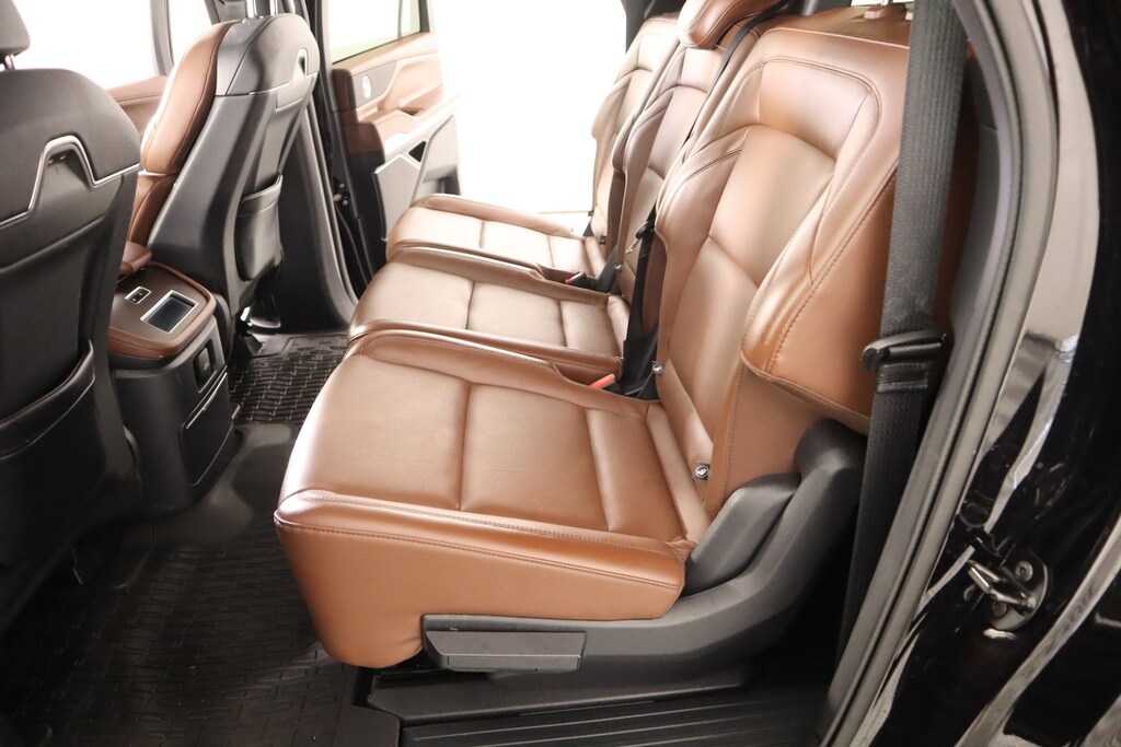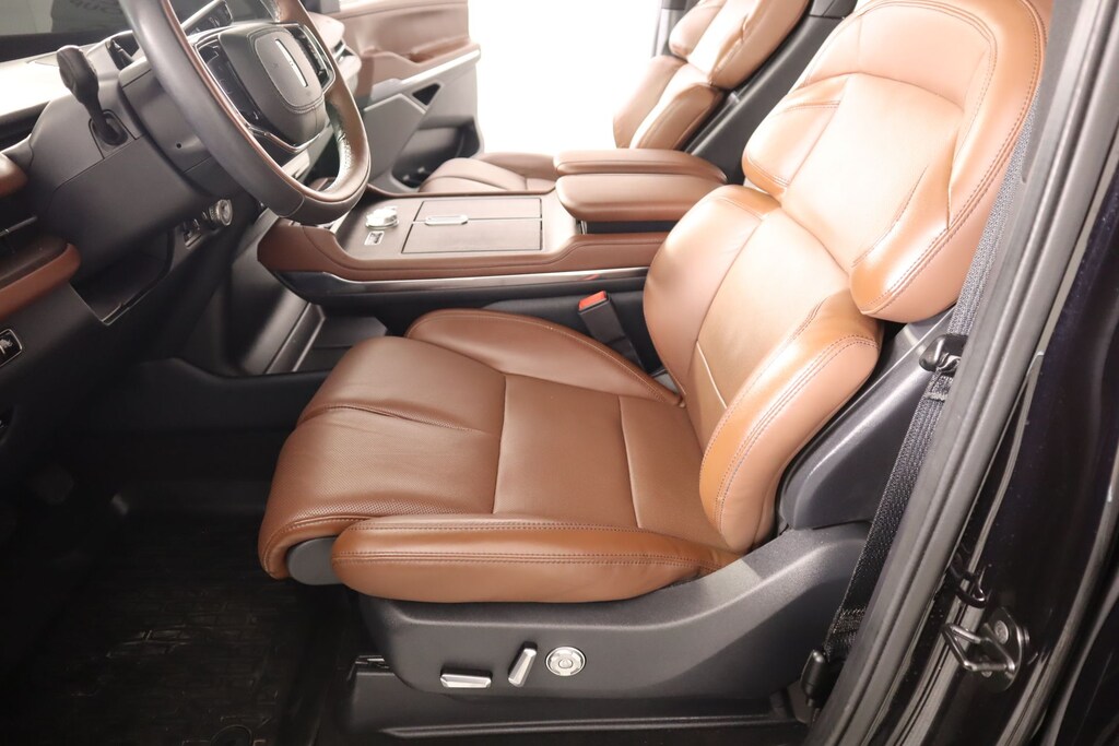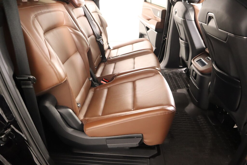 THIS VEHICLE COMES EQUIPPED WITH THE FOLLOWING OPTIONS AND FEATURES: Equipment Group 202A Reserve II, Heavy-Duty Trailer Tow Package (26mm Engine Radiator and Trailer Brake Controller), 28 Speakers, 2nd Row Heated 40/20/40 Split Bench Seat, Adaptive suspension, Heated front seats, Heated rear seats, Heated steering wheel, Leather steering wheel, Lincoln Connect, Lincoln Premium Connectivity, Navigation system: Connected Navigation (1-year trial), Power moonroof, Radio: Revel Ultima 3D AM/FM/HD Audio System, SiriusXM w/360L, Ventilated front seats, 3rd row seats: split-bench, 4-Wheel Disc Brakes, ABS brakes, Adjustable pedals, Air Conditioning, All-Weather Flr Liners w/o Fr & Rr Carpet Flr Mats, Alloy wheels, AM/FM radio: SiriusXM with 360L, Apple CarPlay/Android Auto, Audio memory, Auto High-beam Headlights, Auto Htd & Ventilated Premium Lthr Captain's Chair, Auto Start-Stop Technology, Auto tilt-away steering wheel, Auto-dimming door mirrors, Auto-dimming Rear-View mirror, Auto-leveling suspension, Automatic temperature control, Brake assist, Bumpers: body-color, Compass, Delay-off headlights, Driver door bin, Driver vanity mirror, Driver's Seat Mounted Armrest, Dual front impact airbags, Dual front side impact airbags, Electronic Stability Control, Emergency communication system: 911 Assist, Exterior Parking Camera Rear, Four wheel independent suspension, Front anti-roll bar, Front Bucket Seats, Front dual zone A/C, Front reading lights, Fully automatic headlights, Garage door transmitter, Heated door mirrors, HVAC memory, Illuminated entry, Low tire pressure warning, Memory seat, Occupant sensing airbag, Outside temperature display, Overhead airbag, Overhead console, Panic alarm, Passenger door bin, Passenger seat mounted armrest, Passenger vanity mirror, Pedal memory, Power adjustable front head restraints, Power adjustable rear head restraints, Power door mirrors, Power driver seat, Power passenger seat, Power steering, Power windows, Radio data system, Rain sensing wipers, Rear air conditioning, Rear anti-roll bar, Rear audio controls, Rear reading lights, Rear window defroster, Rear window wiper, Reclining 3rd row seat, Remote keyless entry, Security system, Speed control, Speed-sensing steering, Speed-Sensitive Wipers, Split folding rear seat, Spoiler, Steering wheel memory, Steering wheel mounted audio controls, Tachometer, Telescoping steering wheel, Tilt steering wheel, Traction control, Trip computer, Turn signal indicator mirrors, Variably intermittent wipers, and Wheels: 22" Dark Tarnished Aluminum.