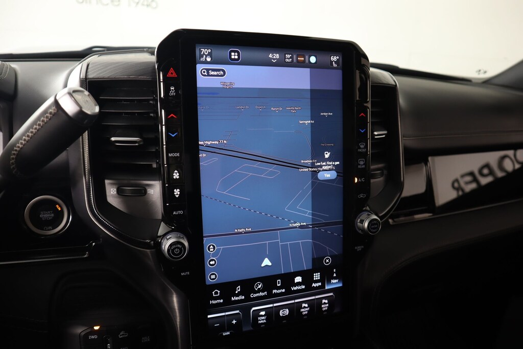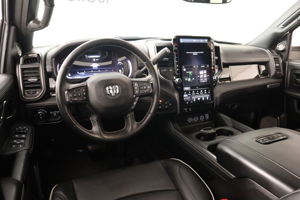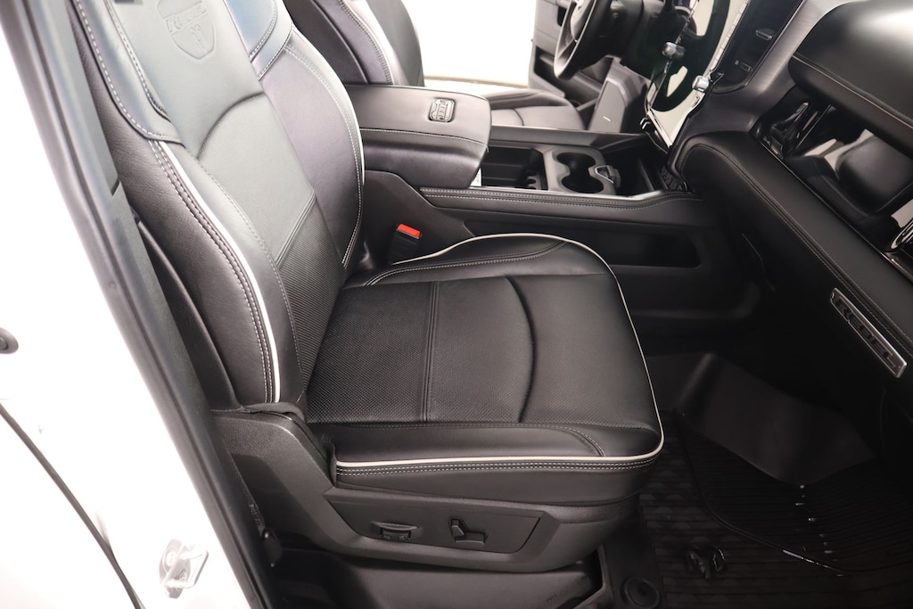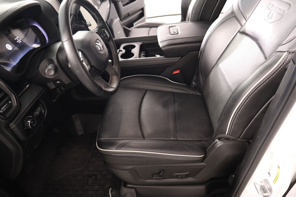 THIS VEHICLE COMES EQUIPPED WITH THE FOLLOWING OPTIONS AND FEATURES: Quick Order Package 24R Rebel, Rebel Level 2 Equipment Group (115V Auxiliary Rear Power Outlet, 2 Way Rear Headrest Seat, 4 Way Front Headrests, 4G LTE Wi-Fi Hot Spot, Alexa Built-In, Aluminum Litho Instrument Panel Bezels w/Blk Trim, Apple CarPlay, Connected Travel & Traffic Services, Connectivity - US/Canada, CTR Stop Lamp w/Cargo View Camera, Disassociated Touchscreen Display, Dual Wireless Charging Pad, Emergency Vehicle Alert System (EVAS), Folding Flat Load Floor Storage, Global Telematics Box Module (TBM), Google Android Auto, GPS Antenna Input, GPS Navigation, HD Radio, Heated Front Seats, Heated Steering Wheel, High Back Seats, Integrated Voice Command w/Bluetooth, Leather Trimmed Bucket Seats (NL), Leather Wrapped Shift Control, LED Bed Lighting, Luxury Door Trim Panel (CTH), MOPAR Deployable Bed Step, MOPAR Spray In Bedliner, Off-Road Info Pages, Power 2-Way Driver Lumbar Adjust, Power 2-Way Passenger Lumbar Adjust, Power Adjust 8-Way Driver Seat, Power Adjust 8-Way Front Passenger Seat, Power Deployable Running Boards, Radio: Uconnect 5 Nav w/14.4" Display, Rear 60/40 Folding Seat, Selectable Tire Fill Alert, SiriusXM Radio Service, SiriusXM w/360L, and Trailer Tow Pages), Cooper Certified Certified, 3.42 Axle Ratio, 3.73 Axle Ratio, 4-Wheel Disc Brakes, 5th Wheel/Gooseneck Towing Prep Group, 6 Speakers, ABS brakes, Adjustable pedals, Air Conditioning, Alloy wheels, AM/FM radio: SiriusXM with 360L, Apple CarPlay/Android Auto, Auto Power-Folding Mirrors, Auto-dimming Rear-View mirror, Automatic temperature control, Black Exterior Mirrors, Black Wheel Center Hub, Block heater, Brake assist, Cloth Heated Power Bench Seat, Compass, Delay-off headlights, Driver door bin, Dual front impact airbags, Dual front side impact airbags, Electronic Stability Control, Exterior Mirrors Courtesy Lamps, Exterior Mirrors w/Heating Element, Exterior Mirrors w/Supplemental Signals, Forward & Reverse Utility Lights, Front anti-roll bar, Front Center Armrest w/Storage, Front dual zone A/C, Front fog lights, Front reading lights, Fully automatic headlights, Heated door mirrors, Heated front seats, Heated steering wheel, Illuminated entry, Leather steering wheel, Low tire pressure warning, Mirror Running Lights, MOPAR Front & Rear Rubber Floor Mats, Navigation System, Occupant sensing airbag, Outside temperature display, Overhead airbag, Overhead console, Panic alarm, ParkView Rear Back-Up Camera, Passenger door bin, Passenger vanity mirror, Power Adjust Mirrors, Power Adjustable Convex Aux Mirrors, Power door mirrors, Power driver seat, Power steering, Power Sunroof, Power Telescoping Mirrors, Power windows, Radio data system, Radio: Uconnect 5 Nav w/12.0" Display, Rear anti-roll bar, Rear seat center armrest, Rear step bumper, Rear window defroster, Remote keyless entry, Security system, Speed control, Split folding rear seat, Steering wheel mounted audio controls, Tachometer, Tilt steering wheel, Traction control, Trip computer, Turn signal indicator mirrors, Variably intermittent wipers, Vendor Painted Cargo Box, Vendor Painted Cargo Box Tracking, Voltmeter, and Wheels: 20" x 8.0" Black Diamond Cut Aluminum.