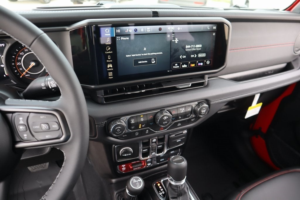 THIS VEHICLE COMES EQUIPPED WITH THE FOLLOWING OPTIONS AND FEATURES: Convenience Group (Heated Front Seats, Heated Steering Wheel, Remote Start System, and Universal Garage Door Opener), Quick Order Package 24R Rubicon, 4-Wheel Disc Brakes, 4.10 Rear Axle Ratio, 8 Speakers, ABS brakes, Air Conditioning, Alloy wheels, AM/FM radio: SiriusXM with 360L, Apple CarPlay/Android Auto, Automatic temperature control, Body Color 3-Piece Hard Top, Body Color Rubicon Highline Flare, Brake assist, Cloth Low-Back Bucket Seats, Compass, Delay-off headlights, Driver door bin, Driver vanity mirror, Dual front impact airbags, Dual front side impact airbags, Electronic Stability Control, Emergency communication system: Jeep Connect, Freedom Panel Storage Bag, Front anti-roll bar, Front Bucket Seats, Front Center Armrest w/Storage, Front dual zone A/C, Front fog lights, Front reading lights, Fully automatic headlights, Heated door mirrors, Illuminated entry, Integrated roll-over protection, Low tire pressure warning, MOPAR All-Weather Slush Mats, Occupant sensing airbag, Outside temperature display, Overhead airbag, Panic alarm, Passenger door bin, Passenger vanity mirror, Performance Suspension, Power door mirrors, Power steering, Power windows, Radio data system, Rear anti-roll bar, Rear reading lights, Rear Sliding Window, Rear Window Defroster, Remote keyless entry, Security system, Speed control, Split folding rear seat, Steering wheel mounted audio controls, Tachometer, Telescoping steering wheel, Tilt steering wheel, Traction control, Trip computer, USB Host Flip, Variably intermittent wipers, Voltmeter, and Wheels: 17 x 7.5 Machined/Painted Black. Price includes: $1500 - 2026 National Select Inventory Bonus Cash. Exp. 01/04/2027 $2000 - 2026 National Select Inventory Bonus Cash. Exp. 02/02/2026