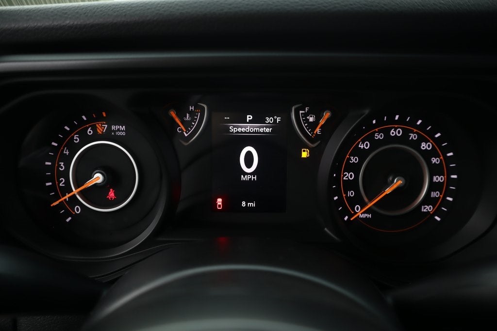 THIS VEHICLE COMES EQUIPPED WITH THE FOLLOWING OPTIONS AND FEATURES: Quick Order Package 24B Sport, 110 Mph Vehicle Max Speed Calibration, 12.3 Touchscreen Display, 3.73 Rear Axle Ratio, 4-Wheel Disc Brakes, 4G LTE Wi-Fi Hot Spot, 8 Speakers, ABS brakes, Air Conditioning, Alexa Built-in, AM/FM radio: SiriusXM with 360L, Apple CarPlay, Apple CarPlay/Android Auto, Black 3-Piece Hard Top, Brake assist, Compass, Connectivity - US/Canada, Delay-off headlights, Driver door bin, Driver vanity mirror, Dual front impact airbags, Dual front side impact airbags, Electronic Stability Control, Freedom Panel Storage Bag, Front anti-roll bar, Front Bucket Seats, Front Center Armrest w/Storage, Front fog lights, Front reading lights, Google Android Auto, Illuminated entry, Integrated roll-over protection, Low tire pressure warning, MOPAR All-Weather Slush Mats, Normal Duty Suspension, Occupant sensing airbag, Outside temperature display, Overhead airbag, Panic alarm, ParkView Rear Back-Up Camera, Passenger door bin, Passenger vanity mirror, Power steering, Power windows, Radio data system, Radio: Uconnect 5 with 12.3 Display, Rear anti-roll bar, Rear reading lights, Rear Sliding Window, Rear Window Defroster, Remote keyless entry, Speed control, Split folding rear seat, Steering wheel mounted audio controls, Tachometer, Telescoping steering wheel, Tilt steering wheel, Traction control, Trip computer, USB Host Flip, Variably intermittent wipers, Voltmeter, and Wheels: 17 x 7.5 Black Steel Styled.
