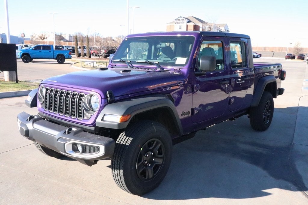 2026 Jeep Gladiator Quick Order Package 24B Sport, 110 Mph Vehicle Max Speed Calibration, 12.3 Touchscreen Display, 3.73 Rear Axle Ratio, 4-Wheel Disc Brakes, 4G LTE Wi-Fi Hot Spot, 8 Speakers, ABS brakes, Air Conditioning, Alexa Built-in, AM/FM radio: SiriusXM with 360L, Apple CarPlay, Apple CarPlay/Android Auto, Black 3-Piece Hard Top, Brake assist, Compass, Connectivity - US/Canada, Delay-off headlights, Driver door bin, Driver vanity mirror, Dual front impact airbags, Dual front side impact airbags, Electronic Stability Control, Freedom Panel Storage Bag, Front anti-roll bar, Front Bucket Seats, Front Center Armrest w/Storage, Front fog lights, Front reading lights, Google Android Auto, Illuminated entry, Integrated roll-over protection, Low tire pressure warning, Normal Duty Suspension, Occupant sensing airbag, Outside temperature display, Overhead airbag, Panic alarm, ParkView Rear Back-Up Camera, Passenger door bin, Passenger vanity mirror, Power steering, Power windows, Radio data system, Radio: Uconnect 5 with 12.3 Display, Rear anti-roll bar, Rear reading lights, Rear Sliding Window, Rear Window Defroster, Remote keyless entry, Speed control, Split folding rear seat, Steering wheel mounted audio controls, Tachometer, Telescoping steering wheel, Tilt steering wheel, Traction control, Trip computer, USB Host Flip, Variably intermittent wipers, Voltmeter, and Wheels: 17 x 7.5 Black Steel Styled.