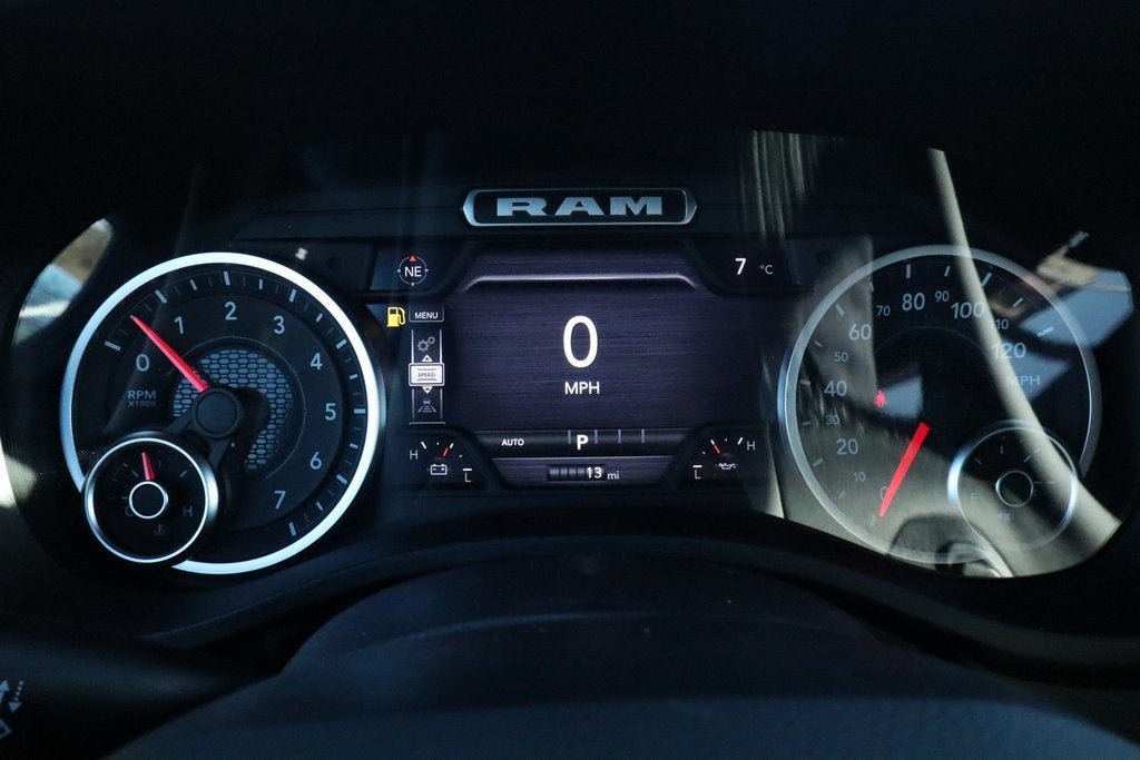 2026 Ram 1500 Big Horn Level 2 Equipment Group (115V Auxiliary Power Outlet, 115V Auxiliary Rear Power Outlet, 12 Touchscreen Display, 2nd Row in Floor Storage Bins, 3 Rear Seat Head Restraints, 4 Way Front Headrests, 400W Inverter, 4G LTE Wi-Fi Hot Spot, 9 Amplified Speakers with Subwoofer, Air Conditioning ATC with Dual Zone Control, Apple CarPlay, Auto Power-Folding Mirrors, Auto-Dimming Exterior Driver Mirror, Auto-Dimming Rear-View Mirror, Black Exterior Mirrors, Black Premium Power Mirrors, Body Color Fender Flares, Bucket Seats, Center Console Parts Module, Cluster 7.0 TFT Color Display, Configurable Drive Mode, Connected Travel and Traffic Services, Connectivity - US/Canada, Convex Wide-Angle Exterior Mirror Insert, Deluxe Cloth Bucket Seats, Disassociated Touchscreen Display, Exterior Mirrors Courtesy Lamps, Exterior Mirrors with Heating Element, Exterior Mirrors with Supplemental Signals, Front Seat Back Map Pockets, Full Length Floor Console, Global Telematics Box Module, Glove Box Lamp, Google Android Auto, GPS Antenna Input, GPS Navigation, HD Radio, Heated Front Seats, Heated Steering Wheel, Integrated Center Stack Radio, Integrated Voice Command with Bluetooth®, Leather Wrapped Steering Wheel, LED Dome Lamp with on/Off Switch, LED Footwell Lighting, Manual Adjust 4-Way Front Passenger Seat, Media Hub with 2 Charge Only USBs, Overhead LED Lamps, Power 2-Way Driver Lumbar Adjust, Power Adjust 8-Way Driver Seat, Power Adjustable Pedals, Premium Overhead Console, Radio: Uconnect 5 Navigation with 12.0 Display, Rear 60/40 Folding Seat, Rear Center Armrest, Rear Power Sliding Window, Rear Window Defroster, Remote Tailgate Release, Security Alarm, SiriusXM Radio Service, SiriusXM with 360L, Steering Wheel Mounted Audio Controls, Sun Visors with Illuminated Vanity Mirrors, Universal Garage Door Opener, and USB Host Flip), Night Edition (Accent Color Door Handles, Accent Color Premium Power Mirrors, Accent Color Tailgate Handle, Anti-Spin Differential Rear Axle, Black Exterior Truck Badging, Black Headlamp Bezels, Black Interior Accents, Black Painted Exterior Mirrors Caps, Black Tail Lamp Bezels, Body Color Front Bumper, Body Color Rear Bumper with Step Pads, Dual Exhaust with Black Tips, Grille Black Surround Black Mesh, RAM Grille Badge - Black, and Wheels: 20 x 9.0 Aluminum Painted Clad), Quick Order Package 27Z Big Horn, 33 Gallon Fuel Tank, 4-Wheel Disc Brakes, 48V Belt Starter Generator, 6 Speakers, ABS brakes, Air Conditioning, Alloy wheels, AM/FM radio, Apple CarPlay/Android Auto, Auto High-beam Headlights, Brake assist, Bumpers: chrome, Cloth Bucket Seats, Compass, Delay-off headlights, Driver door bin, Dual front impact airbags, Dual front side impact airbags, Electronic Stability Control, Front anti-roll bar, Front Bucket Seats, Front Center Armrest w/Storage, Front fog lights, Front reading lights, Front wheel independent suspension, Fully automatic headlights, Heated door mirrors, Illuminated entry, Low tire pressure warning, Manual Adjust 4-Way Driver Seat, Manual Folding Exterior Mirrors, Mopar Black Tubular Side Steps, MOPAR Front and Rear Rubber Floor Mats, Occupant sensing airbag, Outside temperature display, Overhead airbag, Overhead console, Panic alarm, ParkView Rear Back-Up Camera, Passenger door bin, Passenger vanity mirror, Power door mirrors, Power steering, Power windows, Radio data system, Radio: Uconnect 5 W with 8.4 Display, RAM Grille Badge - Chrome, Rear anti-roll bar, Rear step bumper, Remote keyless entry, Speed control, Supplier Part Tracking (J-1), Tachometer, Telescoping steering wheel, Tilt steering wheel, T Price includes:$1000 - 2026 Southwest BC Retail Bonus Cash . Exp. 02/02/2026 $3500 - 2026 National Retail Consumer Cash .
