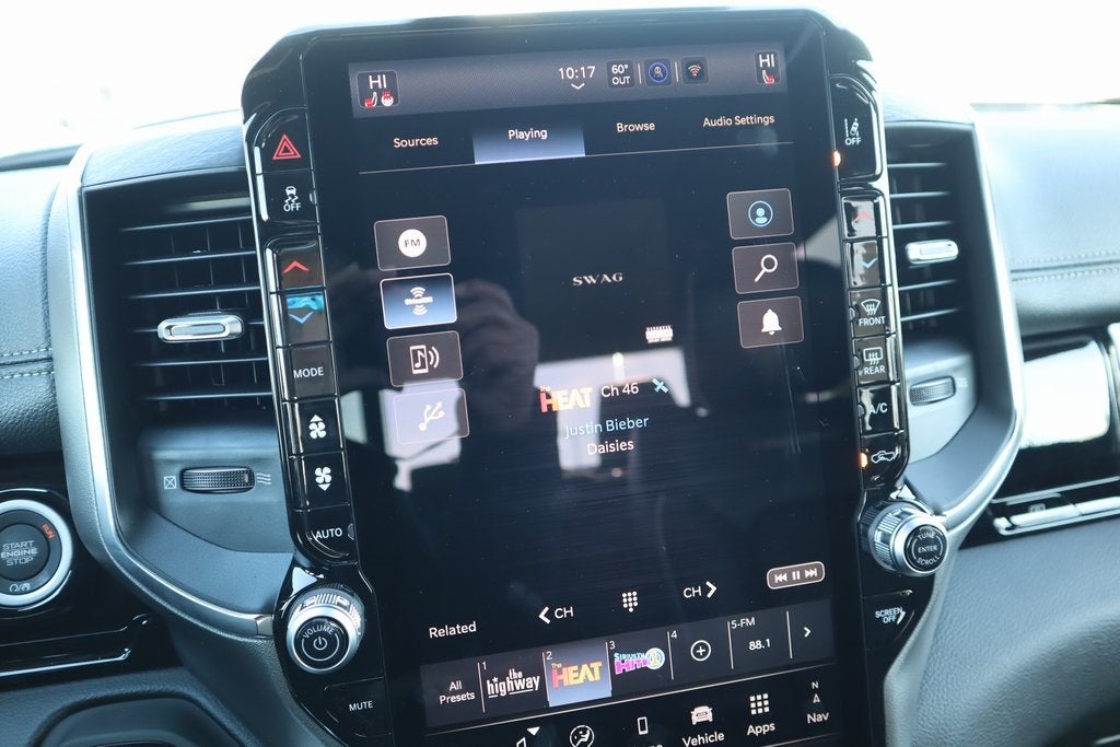 2026 Ram 1500 Laramie Level 2 Equipment Group (14.4 Touchscreen Display, 4G LTE Wi-Fi Hot Spot, Cluster 12 TFT Color Display, Connectivity - US/Canada, Front Passenger Interactive Display, GPS Navigation, Integrated Center Stack Radio, Power Tailgate, Rain Sensitive Windshield Wipers, SiriusXM Radio Service, and USB Host Flip), Night Edition (Accent Color Door Handles, Accent Color Premium Power Mirrors, Accent Color Tailgate Handle, Anti-Spin Differential Rear Axle, Auto Power-Folding Mirrors, Auto-Dimming Exterior Driver Mirror, Black Exterior Truck Badging, Black Headlamp Bezels, Black Interior Accents, Black Painted Exterior Mirrors Caps, Black Tail Lamp Bezels, Body Color Front Bumper, Convex Wide-Angle Exterior Mirror Insert, Exterior Mirrors Approach Lamps, Exterior Mirrors Courtesy Lamps, Grille Surround 3 Black Texture 2 Black, Pirelli Brand Tires, Proximity Approach/Departure Lamps, RAM Grille Badge - Black, Sport Performance Hood, and Wheels: 22 x 9 Forged Aluminum), Quick Order Package 21H Laramie, 10 Speakers, 3.55 Rear Axle Ratio, 4-Wheel Disc Brakes, ABS brakes, Active Noise Control System, Air Conditioning, Alloy wheels, AM/FM radio: SiriusXM with 360L, Apple CarPlay/Android Auto, Audio memory, Auto High-beam Headlights, Auto-dimming door mirrors, Auto-dimming Rear-View mirror, Automatic temperature control, Brake assist, Bumpers: chrome, Chrome Exterior Mirrors, Compass, Delay-off headlights, Dome Dual LED Reading Lamp, Driver door bin, Driver vanity mirror, Dual front impact airbags, Dual front side impact airbags, Dual-Pane Panoramic Sunroof, Electronic Stability Control, Front anti-roll bar, Front Bucket Seats, Front Center Armrest w/Storage, Front dual zone A/C, Front fog lights, Front reading lights, Front wheel independent suspension, Fully automatic headlights, Garage door transmitter, Heated door mirrors, Heated front seats, Heated rear seats, Heated steering wheel, Illuminated entry, Leather steering wheel, Leather Trimmed Bucket Seats, LED Dome/Reading Lamp, Low tire pressure warning, Memory seat, Navigation System, Occupant sensing airbag, Off-Road Information Pages, Outside temperature display, Overhead airbag, Overhead console, Panic alarm, ParkView Rear Back-Up Camera, Passenger door bin, Passenger vanity mirror, Power door mirrors, Power driver seat, Power passenger seat, Power steering, Power windows, Radio data system, RAM Grille Badge - Chrome, Rear anti-roll bar, Rear reading lights, Rear seat center armrest, Rear step bumper, Remote keyless entry, Security system, Speed control, Split folding rear seat, Steering wheel mounted audio controls, Tachometer, Telescoping steering wheel, Tilt steering wheel, Traction control, Trailer Brake Control, Trip computer, Turn signal indicator mirrors, Variably intermittent wipers, Ventilated front seats, Voltmeter, and Wheels: 20 x 9 Premium Paint/Polish. Price includes:$1000 - 2026 Southwest BC SFS Retail Bonus Cash . Exp. 02/02/2026 $2000 - 2026 National Select Inventory Bonus Cash. Exp. 02/02/2026 $3500 - 2026 National Retail Consumer Cash . Exp. 02/02/2026
