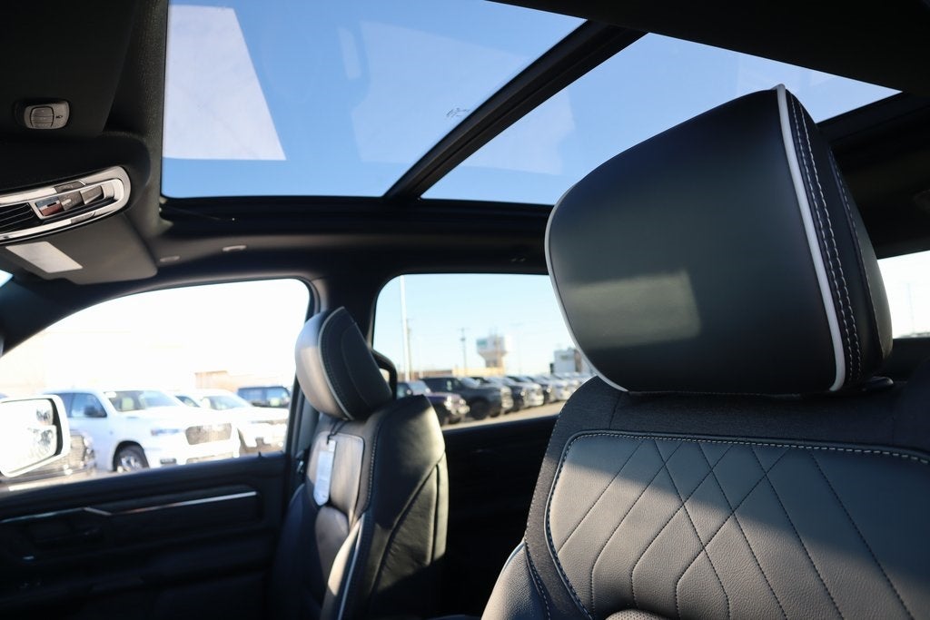 THIS VEHICLE COMES EQUIPPED WITH THE FOLLOWING OPTIONS AND FEATURES: Bed Utility Group (Exterior 115V AC Outlet and MOPAR 4 Adjustable Cargo Tie-Down Hooks), Limited Level An Equipment Group (12-Way/1-Way Trailer Connector, 14.4 Touchscreen Display, 240 Amp Alternator, 4G LTE Wi-Fi Hot Spot, Apple CarPlay, Connected Travel and Traffic Services, Connectivity - US/Canada, Disassociated Touchscreen Display, Drowsy Driver Detection, Evasive Steer Assist, Global Telematics Box Module, Google Android Auto, GPS Antenna Input, GPS Navigation, Hands-Free Active Driving Assist System, HD Radio, Heads-Up Display, Integrated Center Stack Radio, Integrated Voice Command with Bluetooth®, Intersection Collision Assist System, LED CHMSL Lamp, Radio: Uconnect 5 Nav with 14.4 Display, RamBox Cargo Management System, SiriusXM Radio Service, SiriusXM with 360L, Smartphone as a Key Capable, Surround View Camera System, Traffic Sign Recognition, Tri-Fold Tonneau Cover, and USB Host Flip), Night Edition (Accent Color Door Handles, Accent Color Premium Power Mirrors, Accent Color Tailgate Handle, Auto Power-Folding Mirrors, Auto-Dimming Exterior Driver Mirror, Black Day Light Opening Moldings, Black Exterior Truck Badging, Black Grille Surround Texture 7 Black, Black Headlamp Bezels, Black Painted Exterior Mirrors Caps, Black Tail Lamp Bezels, Body Color Front Bumper, Body Color Rear Bumper with Step Pads, Convex Wide-Angle Exterior Mirror Insert, Dual Exhaust with Black Tips, Exterior Mirrors Courtesy Lamps, Exterior Mirrors with Heating Element, Exterior Mirrors with Memory, Exterior Mirrors with Supplemental Signals, Pirelli Brand Tires, RAM Grille Badge - Black, Sport Performance Hood, and Wheels: 22 x 9 Premium Black Aluminum), Quick Order Package 22M Limited, 19 Speakers, 3.92 Rear Axle Ratio, 4-Wheel Disc Brakes, ABS brakes, Active Noise Control System, Adjustable pedals, Air Conditioning, Alloy wheels, AM/FM radio, Apple CarPlay/Android Auto, Audio memory, Auto High-beam Headlights, Auto-dimming door mirrors, Auto-dimming Rear-View mirror, Auto-leveling suspension, Automatic temperature control, Bodyside moldings, Brake assist, Bumpers: chrome, Chrome Exterior Mirrors, Compass, Delay-off headlights, Dome Dual LED Reading Lamp, Driver door bin, Driver vanity mirror, Dual front impact airbags, Dual front side impact airbags, Dual-Pane Panoramic Sunroof, Electronic Stability Control, Exterior Parking Camera Rear, Front anti-roll bar, Front Bucket Seats, Front Center Armrest w/Storage, Front dual zone A/C, Front fog lights, Front reading lights, Front wheel independent suspension, Fully automatic headlights, Garage door transmitter, Genuine wood console insert, Genuine wood dashboard insert, Genuine wood door panel insert, Heated door mirrors, Heated front seats, Heated rear seats, Heated steering wheel, Illuminated entry, Leather steering wheel, LED Dome/Reading Lamp, Low tire pressure warning, Memory seat, Navigation System, Occupant sensing airbag, Outside temperature display, Overhead airbag, Overhead console, Panic alarm, Passenger door bin, Passenger vanity mirror, Pedal memory, Power door mirrors, Power driver seat, Power passenger seat, Power steering, Power windows, Premium Quilted Leather Bucket Seats, Radio data system, Radio: Uconnect 5 Navigation with 12.0 Display, Rain sensing wipers, Rear anti-roll bar, Rear reading lights, Rear seat center armrest, Rear step bumper, Rear window defroster, Remote keyless entry, Security system, Speed control, Split folding rear seat, Steering wheel mounted audio controls, Tachometer, Telescoping steering wheel, Tilt steering wheel, Traction control, Trailer Brake Control, Trip computer, Turn signal indicator mirrors, Variably intermittent wipers, Ventilated front seats, Ventilated rear seats, Voltmeter, and Whee Price includes: $3500 - 2026 National Retail Consumer Cash . Exp