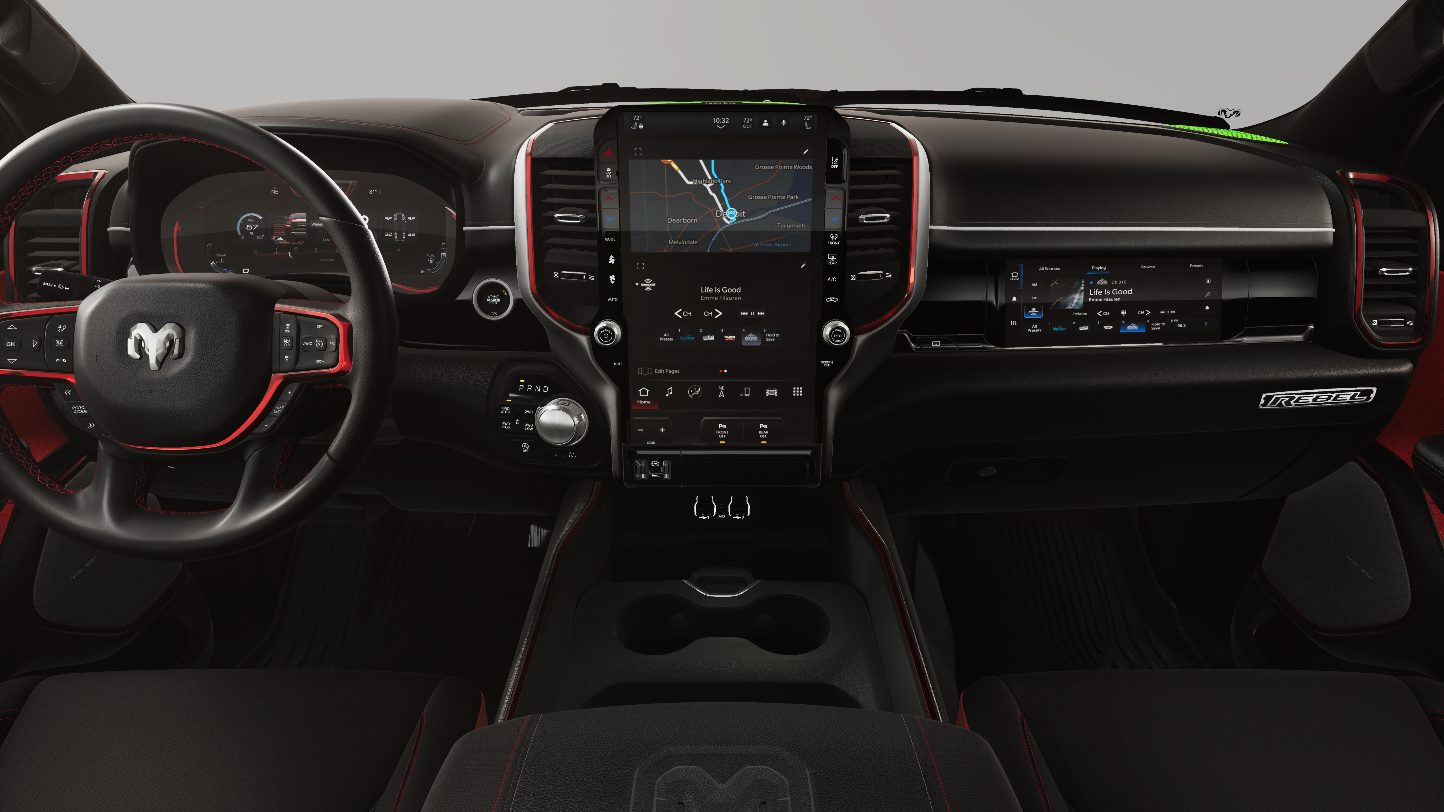 2026 Ram 1500 Bed Utility Group (Exterior 115V AC Outlet, MOPAR 4 Adjustable Cargo Tie-Down Hooks, and MOPAR Spray in Bedliner), Quick Order Package 21W Rebel, Rebel Level 2 Equipment Group (115V Auxiliary Rear Power Outlet, 14.4 Touchscreen Display, 2-Door Passive Entry, Front Door Locks, 4G LTE Wi-Fi Hot Spot, Accent Color Door Handles, Accent Color Premium Power Mirrors, Accent Color Tailgate Handle, Apple CarPlay, Auto Power-Folding Mirrors, Auto-Dimming Exterior Driver Mirror, Black Painted Exterior Mirrors Caps, Connected Travel and Traffic Services, Connectivity - US/Canada, Convex Wide-Angle Exterior Mirror Insert, Disassociated Touchscreen Display, Driver Seat Memory, Dual Wireless Charging Pad, Exterior Mirrors Approach Lamps, Exterior Mirrors Courtesy Lamps, Exterior Mirrors with Heating Element, Exterior Mirrors with Memory, Exterior Mirrors with Supplemental Signals, Front Passenger Interactive Display, Global Telematics Box Module, Google Android Auto, GPS Antenna Input, GPS Navigation, Harman/Kardon 19 Speaker Premium Sound, HD Radio, Heated Second Row Seats, Integrated Center Stack Radio, Integrated Voice Command with Bluetooth®, Media Hub with 2 Charge Only USBs, Off-Road Information Pages, Power 2-Way Passenger Lumbar Adjust, Power Adjust 8-Way Front Passenger Seat, Power Adjustable Pedals with Memory, Power Tailgate, Proximity Approach/Departure Lamps, Radio: Uconnect 5 Nav with 14.4 Display, Radio/Driver Seat/Mirrors/Pedals Memory, Rain Sensitive Windshield Wipers, Rear Window Defroster, Security Alarm, SiriusXM Radio Service, SiriusXM with 360L, Smartphone as a Key Capable, and USB Host Flip), Technology Group (12-Way/1-Way Trailer Connector, Heads-Up Display, and LED CHMSL Lamp), 10 Speakers, 3.92 Rear Axle Ratio, 4 Way Front Headrests, 4-Wheel Disc Brakes, ABS brakes, Active Noise Control System, Air Conditioning, Alloy wheels, AM/FM radio: SiriusXM with 360L, Apple CarPlay/Android Auto, Auto High-beam Headlights, Auto-dimming Rear-View mirror, Automatic temperature control, Black Exterior Mirrors, Brake assist, Bucket Seats, Cloth/Vinyl Bucket Seats, Compass, Delay-off headlights, Dome Dual LED Reading Lamp, Driver door bin, Driver vanity mirror, Dual front impact airbags, Dual front side impact airbags, Dual-Pane Panoramic Sunroof, Electronic Stability Control, Front anti-roll bar, Front Bucket Seats, Front Center Armrest w/Storage, Front dual zone A/C, Front fog lights, Front License Plate Bracket, Front reading lights, Front Seat Back Map Pockets, Front wheel independent suspension, Full Length Upgraded Floor Console, Fully automatic headlights, Garage door transmitter, Heated door mirrors, Heated Front Seats, Heated front seats, Heated Steering Wheel, Heated steering wheel, Illuminated entry, Leather steering wheel, Low tire pressure warning, Manual Folding Exterior Mirrors, Navigation System, Occupant sensing airbag, Outside temperature display, Overhead airbag, Overhead console, Panic alarm, ParkView Rear Back-Up Camera, Passenger door bin, Passenger vanity mirror, Power 2-Way Driver Lumbar Adjust, Power Adjust 8-Way Driver Seat, Power door mirrors, Power driver seat, Power steering, Power windows, Radio data system, Radio: Uconnect 5 Navigation with 12.0 Display, Rear 60/40 Folding Seat, Rear anti-roll bar, Rear seat center armrest, Rear step bumper, Remote keyless entry, Speed control, Split folding rear seat, Steering wheel mounted audio controls, Tachometer, Telescoping steering wheel, Tilt steering wheel, Traction control, Trailer Brake Control, Trip computer, Variably intermittent wipers, Voltmeter, and Wheels: 18 x 8.0 Painted Mid-Gloss Black. Price includes:$3500 - 2026 National Retail Consumer Cash . Exp. 02/02/2026