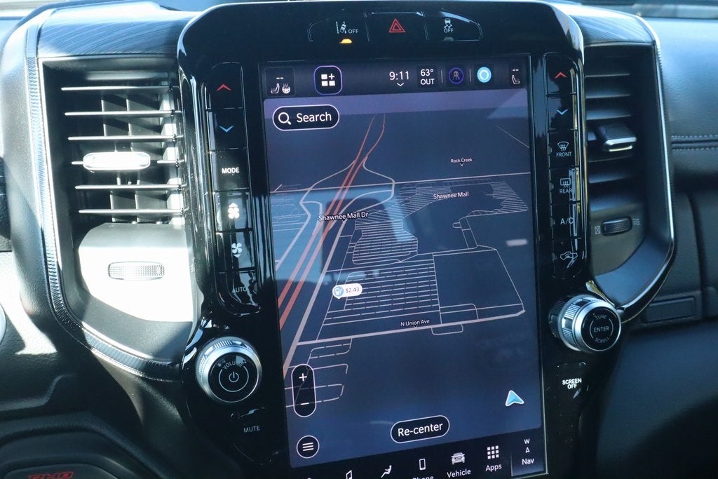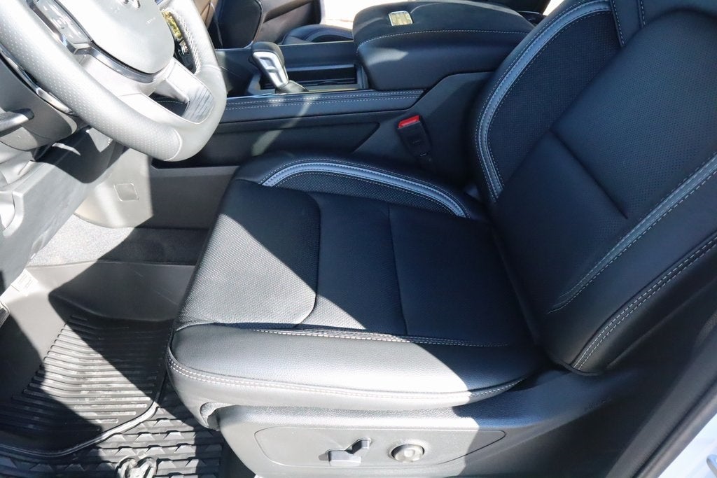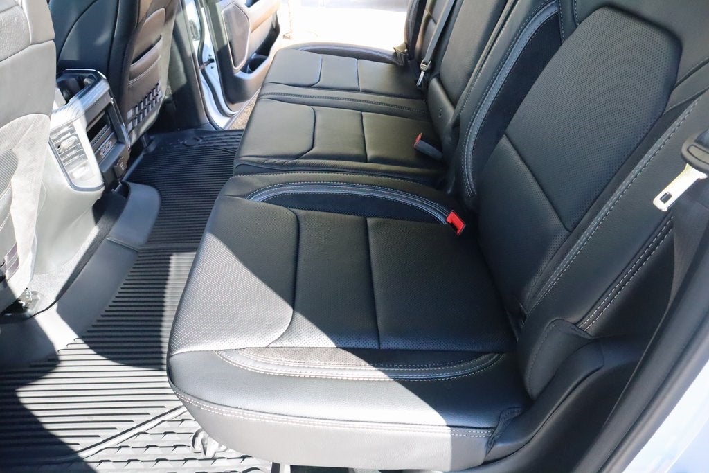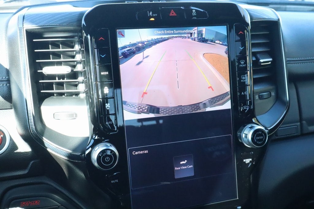 2026 Ram 1500 Bed Utility Group (Exterior 115V AC Outlet, MOPAR 4 Adjustable Cargo Tie-Down Hooks, and MOPAR Deployable Bed Step), Quick Order Package 22Y RHO, 10 Speakers, 3.92 Rear Axle Ratio, 4-Wheel Disc Brakes, 4G LTE Wi-Fi Hot Spot, ABS brakes, Adaptive suspension, Adjustable pedals, Air Conditioning, Alloy wheels, AM/FM radio, Apple CarPlay/Android Auto, Auto High-beam Headlights, Auto Power-Folding Mirrors, Auto-dimming door mirrors, Auto-Dimming Exterior Driver Mirror, Auto-dimming Rear-View mirror, Automatic temperature control, Brake assist, Compass, Connectivity - US/Canada, Delay-off headlights, Disassociated Touchscreen Display, Driver door bin, Driver vanity mirror, Dual front impact airbags, Dual front side impact airbags, Electronic Stability Control, Exterior Mirrors Courtesy Lamps, Exterior Parking Camera Rear, Flareside Box, Front anti-roll bar, Front Bucket Seats, Front Center Armrest w/Storage, Front dual zone A/C, Front fog lights, Front reading lights, Front wheel independent suspension, Fully automatic headlights, Garage door transmitter, GPS Navigation, HD Radio, Heated door mirrors, Heated front seats, Heated steering wheel, Illuminated entry, Integrated Center Stack Radio, Leather Shift Knob, Leather steering wheel, Leather Trimmed Bucket Seats, Low tire pressure warning, Navigation System, Occupant sensing airbag, Outside temperature display, Overhead airbag, Overhead console, Panic alarm, Passenger door bin, Passenger vanity mirror, Power door mirrors, Power driver seat, Power passenger seat, Power steering, Power windows, Radio data system, Rear reading lights, Rear seat center armrest, Rear step bumper, Rear window defroster, Remote keyless entry, Security system, SiriusXM Radio Service, Speed control, Split folding rear seat, Sport steering wheel, Steering wheel mounted audio controls, Tachometer, Telescoping steering wheel, Tilt steering wheel, Traction control, Trip computer, Turn signal indicator mirrors, USB Host Flip, Variably intermittent wipers, Voltmeter, and Wheels: 18 x 9 Black Paint/Polish Aluminum.