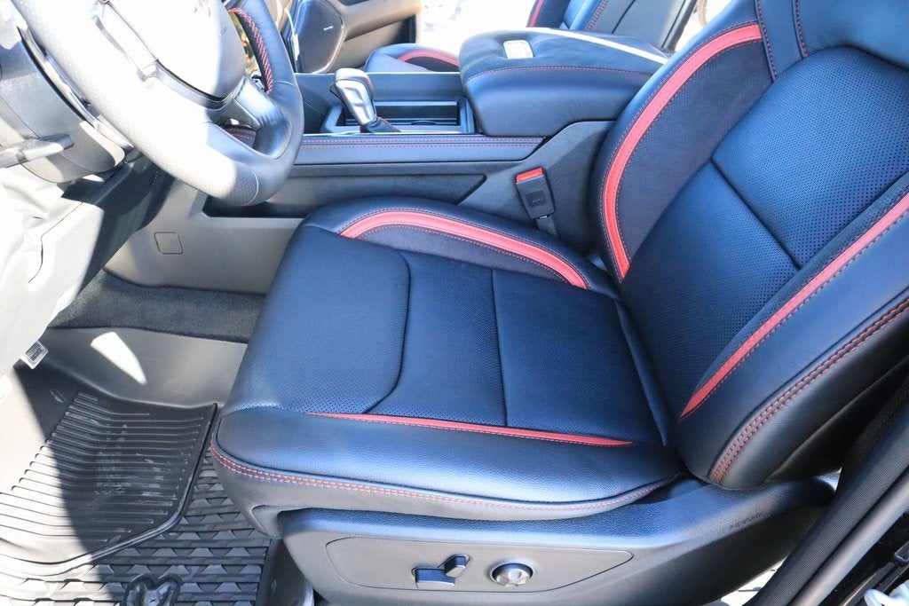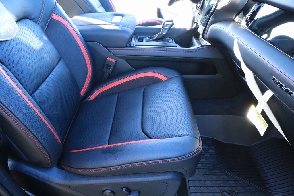 2026 Ram 1500 Bed Utility Group (Exterior 115V AC Outlet, MOPAR 4 Adjustable Cargo Tie-Down Hooks, and MOPAR Deployable Bed Step), Quick Order Package 22Y RHO, RHO Level 1 Equipment Group (12-Way/1-Way Trailer Connector, 14.4 Touchscreen Display, 240 Amp Alternator, 4G LTE Wi-Fi Hot Spot, Connectivity - US/Canada, Disassociated Touchscreen Display, Driver Power Seat Back Massage, Driver Seat Memory, Driver/Passenger Wrapped Assist Handles, Drowsy Driver Detection, Dual Wireless Charging Pad, Evasive Steer Assist, Front Passenger Interactive Display, Front Passenger Power Seat Back Massage, Full Length Premium Upgraded Floor Console, GPS Navigation, Hands-Free Active Driving Assist System, HD Radio, Heads-Up Display, Heated Second Row Seats, Integrated Center Stack Radio, Intersection Collision Assist System, Leather/Carbon Flat-Bottom Steering Wheel, LED CHMSL Lamp, Luxury Front Door Trim Panel, Power Tailgate, Radio/Driver Seat/Mirrors/Pedals Memory, Rain Sensitive Windshield Wipers, Real Carbon Fiber Interior Accents, Rear 60/40 Folding Split Recline Seat, SiriusXM Radio Service, Surround View Camera System, Traffic Sign Recognition, USB Host Flip, Ventilated Front Seats, and Ventilated Rear Seats), Trailer Tow Group (Trailer Reverse Steering Control and Trailer Tire Pressure Monitoring System), 10 Speakers, 3.92 Rear Axle Ratio, 4-Wheel Disc Brakes, ABS brakes, Adaptive suspension, Adjustable pedals, Air Conditioning, Alloy wheels, AM/FM radio, Apple CarPlay/Android Auto, Auto High-beam Headlights, Auto Power-Folding Mirrors, Auto-dimming door mirrors, Auto-Dimming Exterior Driver Mirror, Auto-dimming Rear-View mirror, Automatic temperature control, Brake assist, Compass, Delay-off headlights, Dome Dual LED Reading Lamp, Driver door bin, Driver vanity mirror, Dual front impact airbags, Dual front side impact airbags, Dual-Pane Panoramic Sunroof, Electronic Stability Control, Exterior Mirrors Courtesy Lamps, Exterior Parking Camera Rear, Flareside Box, Front anti-roll bar, Front Bucket Seats, Front Center Armrest w/Storage, Front dual zone A/C, Front fog lights, Front reading lights, Front wheel independent suspension, Fully automatic headlights, Garage door transmitter, Heated door mirrors, Heated front seats, Heated steering wheel, Illuminated entry, Leather Shift Knob, Leather steering wheel, Leather Trimmed Bucket Seats, Low tire pressure warning, MOPAR RHO Exterior Graphics, Navigation System, Occupant sensing airbag, Outside temperature display, Overhead airbag, Overhead console, Panic alarm, Passenger door bin, Passenger vanity mirror, Power door mirrors, Power driver seat, Power passenger seat, Power steering, Power windows, Radio data system, Rear reading lights, Rear seat center armrest, Rear step bumper, Rear window defroster, Red Interior Accents, Remote keyless entry, Security system, Speed control, Split folding rear seat, Sport steering wheel, Steering wheel mounted audio controls, Tachometer, Telescoping steering wheel, Tilt steering wheel, Traction control, Trip computer, Turn signal indicator mirrors, Variably intermittent wipers, Voltmeter, and Wheels: 18 x 9 Black Paint/Polish Aluminum.