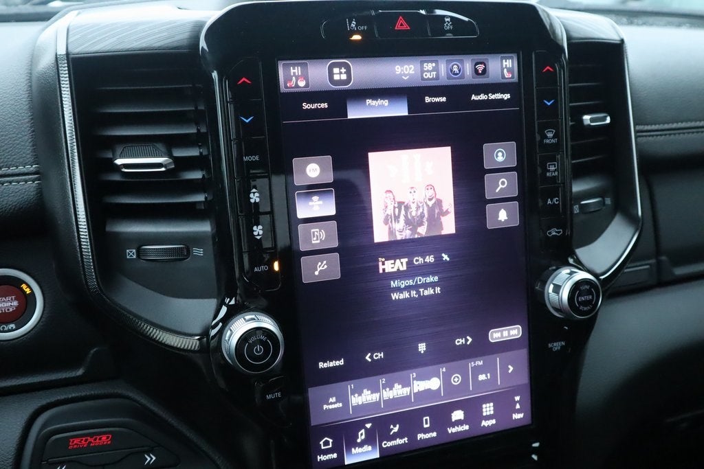 2026 Ram 1500 Quick Order Package 22Y RHO, 10 Speakers, 3.92 Rear Axle Ratio, 4-Wheel Disc Brakes, 4G LTE Wi-Fi Hot Spot, ABS brakes, Adaptive suspension, Adjustable pedals, Air Conditioning, Alloy wheels, AM/FM radio, Apple CarPlay/Android Auto, Auto High-beam Headlights, Auto Power-Folding Mirrors, Auto-dimming door mirrors, Auto-Dimming Exterior Driver Mirror, Auto-dimming Rear-View mirror, Automatic temperature control, Brake assist, Compass, Connectivity - US/Canada, Delay-off headlights, Disassociated Touchscreen Display, Driver door bin, Driver vanity mirror, Dual front impact airbags, Dual front side impact airbags, Electronic Stability Control, Exterior Mirrors Courtesy Lamps, Exterior Parking Camera Rear, Flareside Box, Front anti-roll bar, Front Bucket Seats, Front Center Armrest w/Storage, Front dual zone A/C, Front fog lights, Front reading lights, Front wheel independent suspension, Fully automatic headlights, Garage door transmitter, GPS Navigation, HD Radio, Heated door mirrors, Heated front seats, Heated steering wheel, Illuminated entry, Integrated Center Stack Radio, Leather Shift Knob, Leather steering wheel, Leather Trimmed Bucket Seats, Low tire pressure warning, Navigation System, Occupant sensing airbag, Outside temperature display, Overhead airbag, Overhead console, Panic alarm, Passenger door bin, Passenger vanity mirror, Power door mirrors, Power driver seat, Power passenger seat, Power steering, Power windows, Radio data system, Rear reading lights, Rear seat center armrest, Rear step bumper, Rear window defroster, Remote keyless entry, Security system, SiriusXM Radio Service, Speed control, Split folding rear seat, Sport steering wheel, Steering wheel mounted audio controls, Tachometer, Telescoping steering wheel, Tilt steering wheel, Traction control, Trip computer, Turn signal indicator mirrors, USB Host Flip, Variably intermittent wipers, Voltmeter, and Wheels: 18 x 9 Black Paint/Polish Aluminum. Price includes:$2000 - 2026 National Select Inventory Bonus Cash. Exp. 02/02/2026