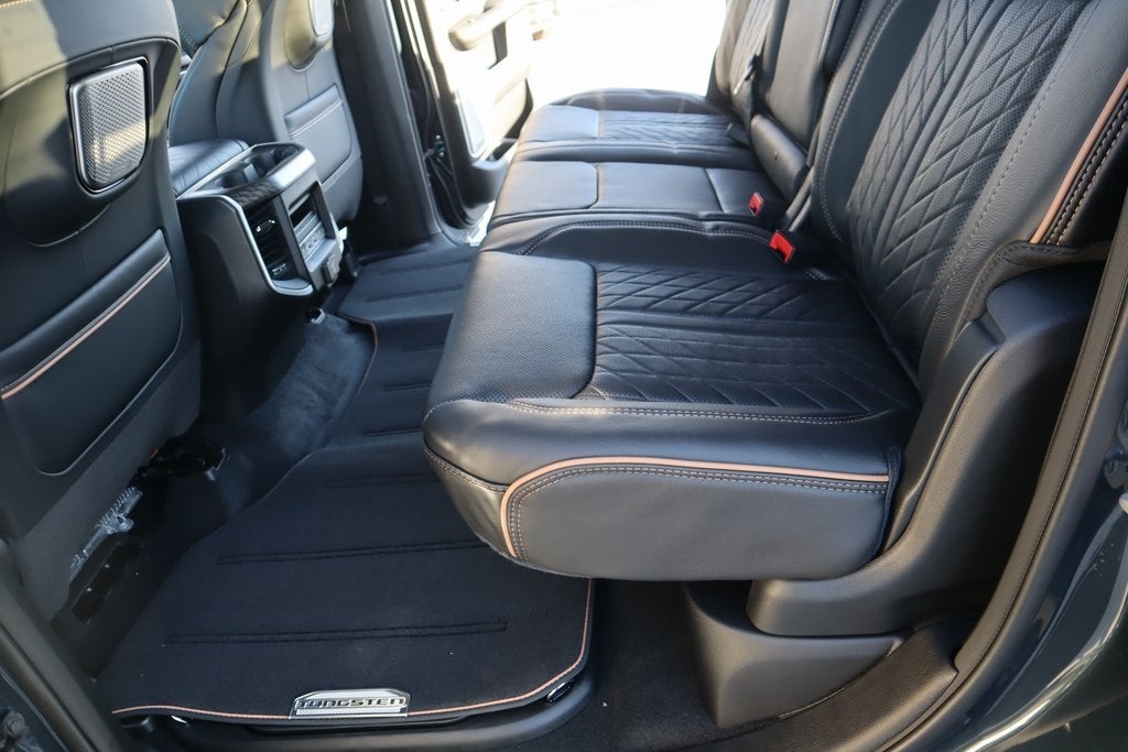 THIS VEHICLE COMES EQUIPPED WITH THE FOLLOWING OPTIONS AND FEATURES: Bed Utility Group (Exterior 115V AC Outlet, MOPAR 4 Adjustable Cargo Tie-Down Hooks, and Truck Bed Cargo Divider), Quick Order Package 22V Tungsten, Trailer Tow Group (Trailer Brake Control, Trailer Light Check, Trailer Reverse Steering Control, and Trailer Tire Pressure Monitoring System), 12-Way/1-Way Trailer Connector, 3.92 Rear Axle Ratio, 4-Wheel Disc Brakes, ABS brakes, Adjustable pedals, Air Conditioning, Alloy wheels, AM/FM radio, Apple CarPlay/Android Auto, Audio memory, Auto High-beam Headlights, Auto Power-Folding Mirrors, Auto-dimming door mirrors, Auto-Dimming Exterior Driver Mirror, Auto-dimming Rear-View mirror, Auto-leveling suspension, Automatic temperature control, Bodyside moldings, Brake assist, Bumpers: body-color, Chrome Exterior Mirrors, Compass, Delay-off headlights, Driver door bin, Driver vanity mirror, Dual front impact airbags, Dual front side impact airbags, Electronic Stability Control, Exterior Mirrors Courtesy Lamps, Exterior Mirrors with Heating Element, Exterior Mirrors with Memory, Exterior Mirrors with Supplemental Signals, Exterior Parking Camera Rear, Front anti-roll bar, Front Bucket Seats, Front Center Armrest w/Storage, Front dual zone A/C, Front fog lights, Front reading lights, Front wh