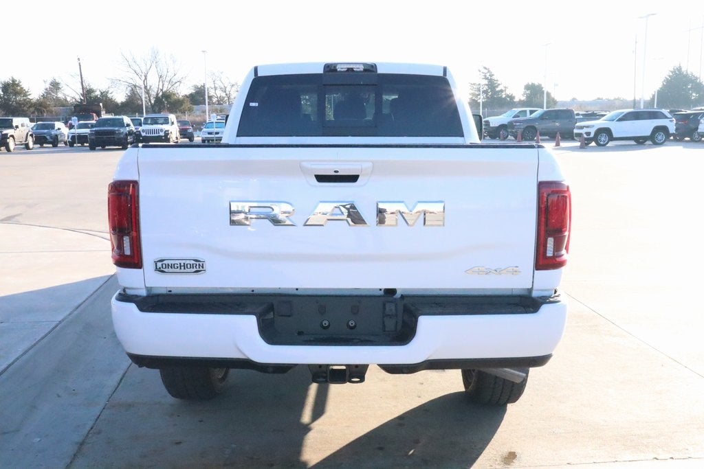 2026 Ram 2500 Cold Weather Group (Engine Block Heater and MOPAR Winter Front Grille Cover), Longhorn Level 1 Equipment Group (Active Lane Management System, Adaptive Steering System, Anti-Spin Differential Rear Axle, Center Stop Lamp with Cargo View Camera, Digital Rearview Mirror, Drowsy Driver Detection, LED Bed Lighting, MOPAR Spray in Bedliner, Power Deployable Running Boards, Surround View Camera System, Traffic Sign Recognition, Trailer Reverse Guidance, and Trailer Tire Pressure Monitoring System), Quick Order Package 24K Longhorn (I/P Aluminum Litho Bezels with Real Wood #1, Longhorn Badge, Longhorn Instrument Cluster Theme 3, Luxury Front and Rear Floor Mats, Premium Filigree Leather Seats, and Warm Chrome Key Fob), 17 Speakers, 3.42 Axle Ratio, 4-Wheel Disc Brakes, 5th Wheel/Gooseneck Towing Prep Group, ABS brakes, Adjustable pedals, Air Conditioning, Alloy wheels, AM/FM radio: SiriusXM with 360L, Apple CarPlay/Android Auto, Audio memory, Auto High-beam Headlights, Auto-dimming door mirrors, Auto-dimming Rear-View mirror, Automatic temperature control, Black Wheel Center Hub, Bodyside moldings, Brake assist, Bumpers: body-color, Clearance Lamps, Compass, Delay-off headlights, Driver door bin, Driver vanity mirror, Dual front impact airbags, Dual front side impact airbags, Electronic Stability Control, Front anti-roll bar, Front Bucket Seats, Front Center Armrest w/Storage, Front dual zone A/C, Front fog lights, Front reading lights, Fully automatic headlights, Garage door transmitter, Genuine wood console insert, Genuine wood dashboard insert, Genuine wood door panel insert, harman/kardon® Speakers, Heated door mirrors, Heated front seats, Heated rear seats, Heated steering wheel, Illuminated entry, Leather steering wheel, Low tire pressure warning, Memory seat, Navigation System, Occupant sensing airbag, Outside temperature display, Overhead airbag, Overhead console, Panic alarm, ParkView Rear Back-Up Camera, Passenger door bin, Passenger vanity mirror, Pedal memory, Pickup Box, Power door mirrors, Power driver seat, Power passenger seat, Power steering, Power Sunroof, Power windows, Radio data system, Radio: Uconnect 5 Nav with 14.4 Display, Rain sensing wipers, Rear anti-roll bar, Rear reading lights, Rear seat center armrest, Rear step bumper, Rear window defroster, Remote keyless entry, Security system, Speed control, Split folding rear seat, Steering wheel mounted audio controls, Tachometer, Tilt steering wheel, Traction control, Trip computer, Turn signal indicator mirrors, Ultra Premium Leather Seats, Variably intermittent wipers, Vendor Painted Cargo Box, Vendor Painted Cargo Box Tracking, Ventilated front seats, Voltmeter, and Wheels: 20 x 8 Diamond Cut Aluminum. Price includes:$1000 - 2026 National Bonus Cash . Exp. 02/02/2026