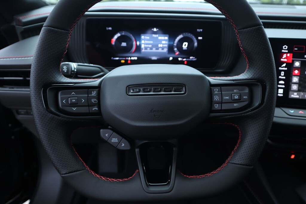 2026 Dodge Charger Blacktop Package (Dark Exterior Badging, Dual Rear Exhaust with Black Tips, and Sport Suspension), Quick Order Package 21L R/T, AWD, Black Cloth, 12.3" Touchscreen Display, 18" x 8.5" Aluminum Wheels, 2-Way Manual Adjust Front Head Restraints, 4-Way Manual Adjust Front Passenger Seat, 4-Wheel Disc Brakes, 4G LTE Wi-Fi Hot Spot, 6 Speakers, ABS brakes, Air Conditioning, Alloy wheels, AM/FM radio: SiriusXM w/360L, Apple CarPlay/Android Auto, Automatic temperature control, Black Seats, Brake assist, Bumpers: body-color, Cloth Sport Seats, Compass, Connectivity - US/Canada, Delay-off headlights, Disassociated Touchscreen Display, Driver door bin, Driver vanity mirror, Dual front impact airbags, Dual front side impact airbags, Electronic Stability Control, Emergency communication system: Dodge Connect, Four wheel independent suspension, Front anti-roll bar, Front Bucket Seats, Front Center Armrest, Front dual zone A/C, Front reading lights, Fully automatic headlights, Heated door mirrors, Heated Exterior Mirrors, Illuminated entry, Integrated Center Stack Radio, Knee airbag, Leather Shift Knob, Low Back Bucket Seats, Low tire pressure warning, Occupant sensing airbag, Outside temperature display, Overhead airbag, Overhead console, Panic alarm, ParkView Rear Back-Up Camera, Passenger door bin, Passenger vanity mirror, Power Adjust Mirrors, Power door mirrors, Power steering, Power windows, Radio data system, Radio: Uconnect 5 with 12.3" Display, Rear anti-roll bar, Rear reading lights, Rear seat center armrest, Rear window defroster, Remote keyless entry, Security system, Speed control, Split folding rear seat, Sport steering wheel, Steering wheel mounted audio controls, Tachometer, Telescoping steering wheel, Tilt steering wheel, Traction control, Trip computer, Variably intermittent wipers, Wheels: 20" x 9" Black Aluminum, Wireless Apple CarPlay, and Wireless Google Android Auto.