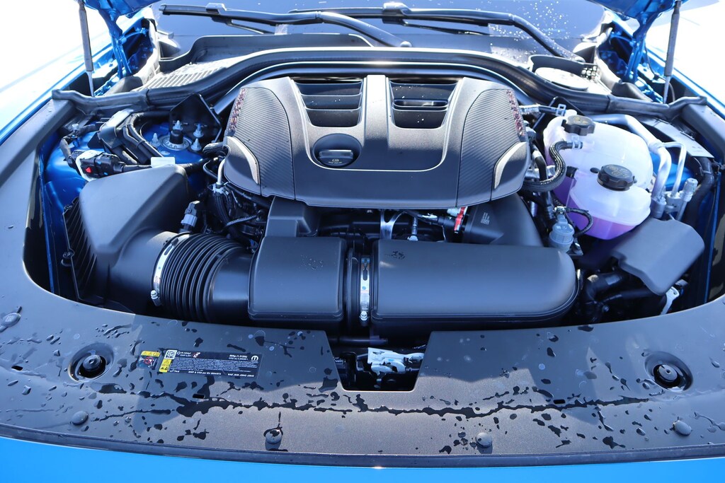 THIS VEHICLE COMES EQUIPPED WITH THE FOLLOWING OPTIONS AND FEATURES: Blacktop Package (Dark Exterior Badging, Dual Rear Exhaust with Black Tips, and Wheels: 20" x 10" Dark Finish Aluminum), Quick Order Package 22P Scat Pack, Two Tone Paint Group, Wheel and Tire Package, AWD, Black Artificial Leather, 10 Speakers, 2-Way Manual Adjust Front Head Restraints, 2-Way Power Driver Lumbar Adjust, 4-Wheel Disc Brakes, 4G LTE Wi-Fi Hot Spot, 8-Way Power Driver Seat Adjust, ABS brakes, Active Noise Control System, Air Conditioning, Alloy wheels, AM/FM radio: SiriusXM w/360L, Apple CarPlay/Android Auto, Auto-dimming Rear-View mirror, Automatic temperature control, Black Seats, Brake assist, Bumpers: body-color, Compass, Connectivity - US/Canada, Delay-off headlights, Disassociated Touchscreen Display, Driver door bin, Driver vanity mirror, Dual front impact airbags, Dual front side impact airbags, Electronic Stability Control, Emergency communication system: Dodge Connect, Four wheel independent suspension, Front anti-roll bar, Front Bucket Seats, Front Center Armrest, Front dual zone A/C, Front reading lights, Fully automatic headlights, Garage door transmitter, Heated Front Seats, Heated front seats, Heated steering wheel, Illuminated entry, Integrated Center Stack Radio, Knee airbag, Leather Shift Knob, Leatherette/Cloth Performance Seats, Low Back Bucket Seats, Low tire pressure warning, Occupant sensing airbag, Outside temperature display, Overhead airbag, Overhead console, Panic alarm, ParkView Rear Back-Up Camera, Passenger door bin, Passenger vanity mirror, Power driver seat, Power steering, Power windows, Radio data system, Radio: Uconnect 5 with 12.3" Display, Rear anti-roll bar, Rear reading lights, Rear seat center armrest, Rear window defroster, Remot