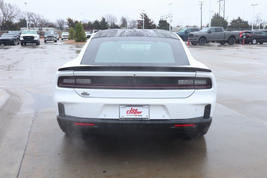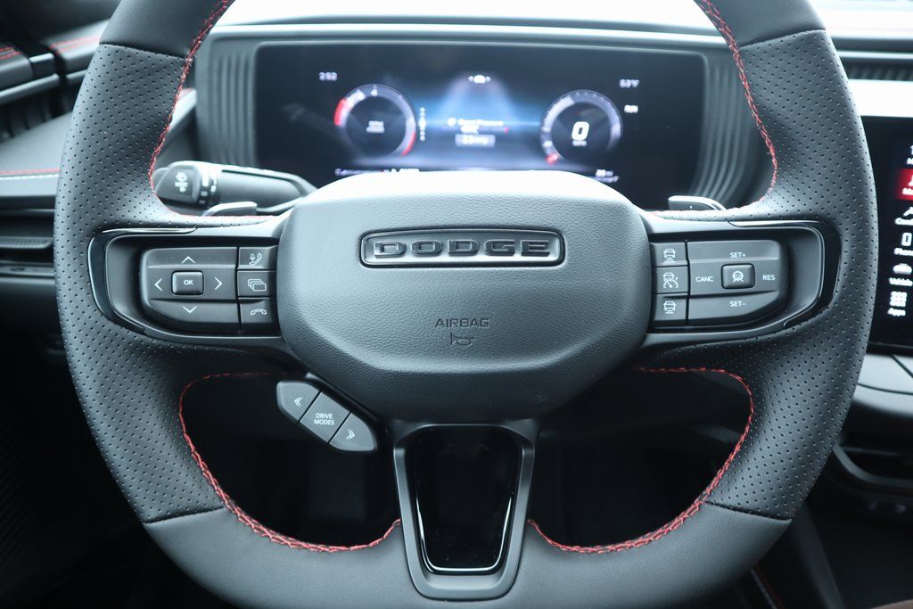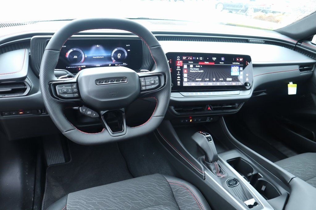 2026 Dodge Charger Blacktop Package (Dark Exterior Badging, Dual Rear Exhaust with Black Tips, and Wheels: 20" x 10" Dark Finish Aluminum), Quick Order Package 22P Scat Pack, Two Tone Paint Group, Wheel and Tire Package, AWD, Black Artificial Leather, 10 Speakers, 2-Way Manual Adjust Front Head Restraints, 2-Way Power Driver Lumbar Adjust, 4-Wheel Disc Brakes, 4G LTE Wi-Fi Hot Spot, 8-Way Power Driver Seat Adjust, ABS brakes, Active Noise Control System, Air Conditioning, Alloy wheels, AM/FM radio: SiriusXM w/360L, Apple CarPlay/Android Auto, Auto-dimming Rear-View mirror, Automatic temperature control, Black Seats, Brake assist, Bumpers: body-color, Compass, Connectivity - US/Canada, Delay-off headlights, Disassociated Touchscreen Display, Driver door bin, Driver vanity mirror, Dual front impact airbags, Dual front side impact airbags, Electronic Stability Control, Emergency communication system: Dodge Connect, Four wheel independent suspension, Front anti-roll bar, Front Bucket Seats, Front Center Armrest, Front dual zone A/C, Front reading lights, Fully automatic headlights, Garage door transmitter, Heated door mirrors, Heated Exterior Mirrors, Heated Front Seats, Heated front seats, Heated steering wheel, Illuminated entry, Integrated Center Stack Radio, Knee airbag, Leather Shift Knob, Leatherette/Cloth Performance Seats, Low Back Bucket Seats, Low tire pressure warning, Occupant sensing airbag, Outside temperature display, Overhead airbag, Overhead console, Panic alarm, ParkView Rear Back-Up Camera, Passenger door bin, Passenger vanity mirror, Power Adjust Mirrors, Power door mirrors, Power driver seat, Power steering, Power windows, Radio data system, Radio: Uconnect 5 with 12.3" Display, Rear anti-roll bar, Rear reading lights, Rear seat center armrest, Rear window defroster, Remote keyless entry, Security system, Speed control, Split folding rear seat, Spoiler, Sport steering wheel, Steering wheel mounted audio controls, Tachometer, Telescoping steering wheel, Tilt steering wheel, Traction control, Trip computer, Variably intermittent wipers, Wheels: 20" x 10" Aluminum, Wheels: 20" x 11" Black Aluminum, Wireless Apple CarPlay, and Wireless Google Android Auto.