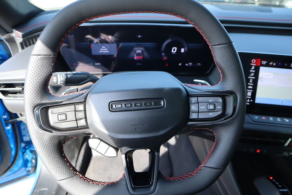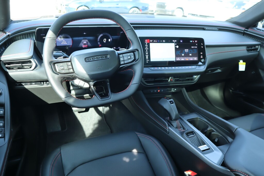 2026 Dodge Charger Blacktop Package (Dark Exterior Badging, Dual Rear Exhaust with Black Tips, and Sport Suspension), Quick Order Package 21A R/T Plus (16" Color Driver Display, 20" x 9" Aluminum Wheels, 4G LTE Wi-Fi Hot Spot, 800 Amp Maintenance Free Battery, 9 Speaker Alpine Audio with Subwoofer, Active Noise Control System, Alexa Built-in, Attitude Adjustment Lighting, Auto-Dimming Rear-View Mirror, Automatic High-Beam Headlamp Control, Black Color Multi-Function Mirrors, Bright Pedals, Connected Travel and Traffic Services, Connectivity - US/Canada, Disassociated Touchscreen Display, Enhanced Security Alarm, Exterior Mirrors Logo Lamps, Exterior Mirrors with Memory, Front Cubby Bin with Light, Glove Box Lamp, GPS Navigation, HD Radio, Heads-Up Display, Heated Exterior Mirrors, Illuminated Door Pull Handles, Integrated Center Stack Radio, Integrated Voice Command with Bluetooth, Leatherette Seats, LED Footwell Lighting, LED Map Pockets, Map-in-Cluster Display, ParkSense Front and Rear Park Assist with Stop, Performance Pages, Performance Shift Indicator, Power Adjust Mirrors, Power Hatch, Power Tilt/Telescope Steering Column, Power Windows Global Down w/Key Fob, Premium LED Low-High Reflective Headlamps, Radio, Driver Seat, Mirrors and Steering Column Memory, Radio: Uconnect 5 Navigation with 12.3" Display, Rain Sensitive Windshield Wipers, Rear Door Puddle Lamps, Rear Hatch Cargo Cover, Side Distance Warning, Steering Wheel Mount Paddle Shifters, Surround View Camera System, Traffic Sign Information, Universal Garage Door Opener, Windshield Wiper De-Icer, Wireless Apple CarPlay, Wireless Charging Pad, and Wireless Google Android Auto), AWD, Black Artificial Leather, 12.3" Touchscreen Display, 18" x 8.5" Aluminum Wheels, 2-Way Manual Adjust Front Head Restraints, 4-Way Manual Adjust Front Passenger Seat, 4-Wheel Disc Brakes, 6 Speakers, ABS brakes, Air Conditioning, Alloy wheels, AM/FM radio: SiriusXM w/360L, Apple CarPlay/Android Auto, Automatic temperature control, Black Seats, Brake assist, Bumpers: body-color, Cloth Sport Seats, Compass, Delay-off headlights, Driver door bin, Driver vanity mirror, Dual front impact airbags, Dual front side impact airbags, Electronic Stability Control, Emergency communication system: Dodge Connect, Four wheel independent suspension, Front anti-roll bar, Front Bucket Seats, Front Center Armrest, Front dual zone A/C, Front reading lights, Full Glass Roof, Fully automatic headlights, Heated door mirrors, Illuminated entry, Knee airbag, Leather Shift Knob, Low Back Bucket Seats, Low tire pressure warning, Occupant sensing airbag, Outside temperature display, Overhead airbag, Overhead console, Panic alarm, ParkView Rear Back-Up Camera, Passenger door bin, Passenger vanity mirror, Power door mirrors, Power steering, Power windows, Radio data system, Radio: Uconnect 5 with 12.3" Display, Rear anti-roll bar, Rear reading lights, Rear seat center armrest, Rear window defroster, Remote keyless entry, Security system, Speed control, Split folding rear seat, Sport steering wheel, Steering wheel mounted audio controls, Tachometer, Telescoping steering wheel, Tilt steering wheel, Traction control, Trip computer, Variably intermittent wipers, and Wheels: 20" x 9" Black Aluminum.