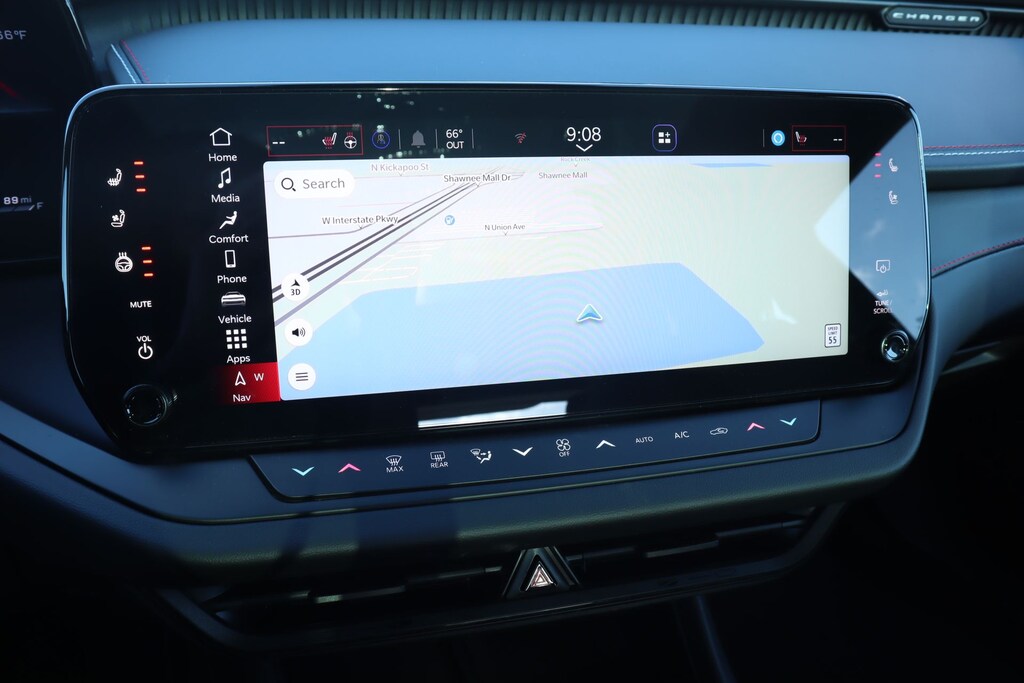 2026 Dodge Charger Blacktop Package (Dark Exterior Badging, Dual Rear Exhaust with Black Tips, and Sport Suspension), Quick Order Package 21A R/T Plus (16" Color Driver Display, 20" x 9" Aluminum Wheels, 4G LTE Wi-Fi Hot Spot, 800 Amp Maintenance Free Battery, 9 Speaker Alpine Audio with Subwoofer, Active Noise Control System, Alexa Built-in, Attitude Adjustment Lighting, Auto-Dimming Rear-View Mirror, Automatic High-Beam Headlamp Control, Black Color Multi-Function Mirrors, Bright Pedals, Connected Travel and Traffic Services, Connectivity - US/Canada, Disassociated Touchscreen Display, Enhanced Security Alarm, Exterior Mirrors Logo Lamps, Exterior Mirrors with Memory, Front Cubby Bin with Light, Glove Box Lamp, GPS Navigation, HD Radio, Heads-Up Display, Heated Exterior Mirrors, Illuminated Door Pull Handles, Integrated Center Stack Radio, Integrated Voice Command with Bluetooth, Leatherette Seats, LED Footwell Lighting, LED Map Pockets, Map-in-Cluster Display, ParkSense Front and Rear Park Assist with Stop, Performance Pages, Performance Shift Indicator, Power Adjust Mirrors, Power Hatch, Power Tilt/Telescope Steering Column, Power Windows Global Down w/Key Fob, Premium LED Low-High Reflective Headlamps, Radio, Driver Seat, Mirrors and Steering Column Memory, Radio: Uconnect 5 Navigation with 12.3" Display, Rain Sensitive Windshield Wipers, Rear Hatch Cargo Cover, Side Distance Warning, Steering Wheel Mount Paddle Shifters, Surround View Camera System, Traffic Sign Information, Universal Garage Door Opener, Windshield Wiper De-Icer, Wireless Apple CarPlay, Wireless Charging Pad, and Wireless Google Android Auto), AWD, Black Artificial Leather, 12.3" Touchscreen Display, 18" x 8.5" Aluminum Wheels, 2-Way Manual Adjust Front Head Restraints, 4-Way Manual Adjust Front Passenger Seat, 4-Wheel Disc Brakes, 6 Speakers, ABS brakes, Air Conditioning, Alloy wheels, AM/FM radio: SiriusXM w/360L, Apple CarPlay/Android Auto, Automatic temperature control, Black Seats, Brake assist, Bumpers: body-color, Cloth Sport Seats, Compass, Delay-off headlights, Driver door bin, Driver vanity mirror, Dual front impact airbags, Dual front side impact airbags, Electronic Stability Control, Emergency communication system: Dodge Connect, Four wheel independent suspension, Front anti-roll bar, Front Bucket Seats, Front Center Armrest, Front dual zone A/C, Front reading lights, Full Glass Roof, Fully automatic headlights, Heated door mirrors, Illuminated entry, Knee airbag, Leather Shift Knob, Low Back Bucket Seats, Low tire pressure warning, Occupant sensing airbag, Outside temperature display, Overhead airbag, Overhead console, Panic alarm, ParkView Rear Back-Up Camera, Passenger door bin, Passenger vanity mirror, Power door mirrors, Power steering, Power windows, Radio data system, Radio: Uconnect 5 with 12.3" Display, Rear anti-roll bar, Rear reading lights, Rear seat center armrest, Rear window defroster, Remote keyless entry, Security system, Speed control, Split folding rear seat, Sport steering wheel, Steering wheel mounted audio controls, Tachometer, Telescoping steering wheel, Tilt steering wheel, Traction control, Trip computer, Variably intermittent wipers, and Wheels: 20" x 9" Black Aluminum.