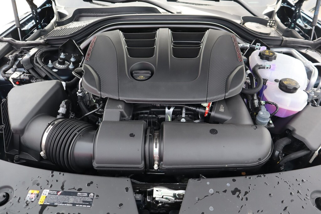 THIS VEHICLE COMES EQUIPPED WITH THE FOLLOWING OPTIONS AND FEATURES: Blacktop Package (Dark Exterior Badging, Dual Rear Exhaust with Black Tips, and Wheels: 20" x 10" Dark Finish Aluminum), Quick Order Package 22P Scat Pack, Two Tone Paint Group, AWD, Black Artificial Leather, 10 Speakers, 4-Wheel Disc Brakes, ABS brakes, Active Noise Control System, Air Conditioning, AM/FM radio: SiriusXM w/360L, Apple CarPlay/Android Auto, Auto-dimming Rear-View mirror, Automatic temperature control, Brake assist, Bumpers: body-color, Compass, Delay-off headlights, Driver door bin, Driver vanity mirror, Dual front impact airbags, Dual front side impact airbags, Electronic Stability Control, Emergency communication system: Dodge Connect, Four wheel independent suspension, Front anti-roll bar, Front dual zone A/C, Front reading lights, Fully automatic headlights, Garage door transmitter, Heated door mirrors, Heated steering wheel, Illuminated entry, Knee airbag, Leather Shift Knob, Leatherette/Cloth Performance Seats, Low tire pressure warning, Occupant sensing airbag, Outside temperature display, Overhead airbag, Overhead console, Panic alarm, ParkView Rear Back-Up Camera, Passenger vanity mirror, Power door mirrors, Power driver seat, Power steering, Power windows, Radio data system, Radio: Uconnect 5 with 12.3" Display, Rear anti-roll bar, Rear reading lights, Rear seat center armrest, Rear window defroster, Remote keyless entry, Security system, Speed control, Spoiler, Sport steering wheel, Steering wheel mounted audio controls, Traction control, Variably intermittent wipers, Alloy wheels, Black Seats, Front Bucket Seats, Front Center Armrest, Heated front seats, Passenger door bin, Split folding rear seat, Tachometer, Telescoping steering wheel, Tilt steering wheel, Trip computer, and Wheels: 20" x 10" Aluminum.