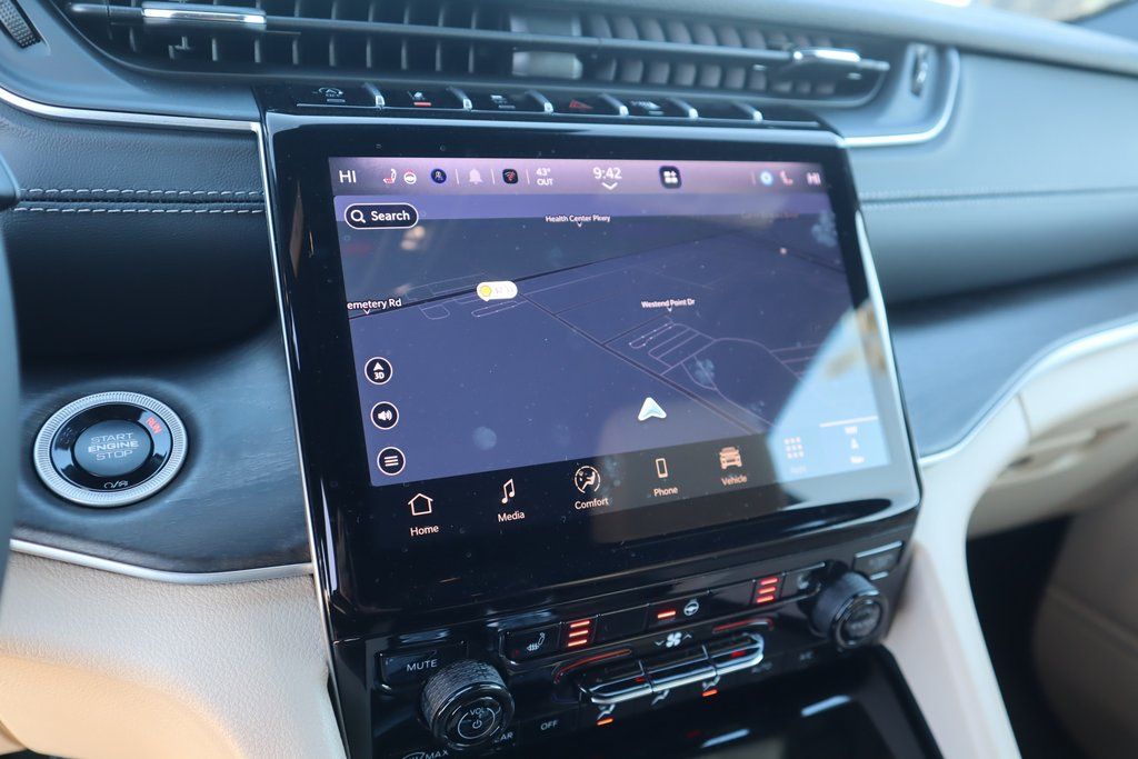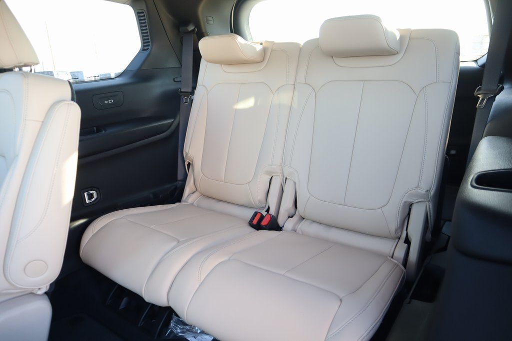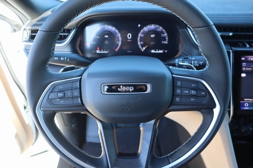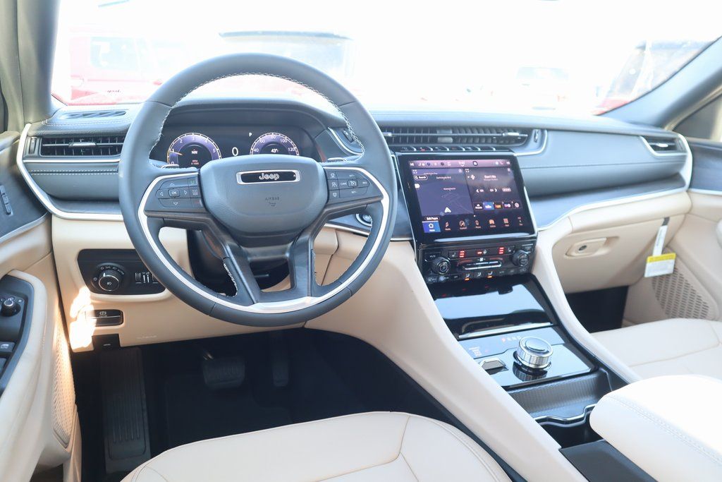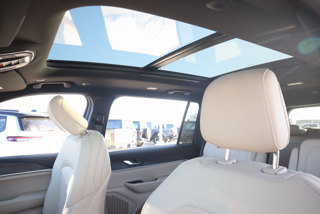 THIS VEHICLE COMES EQUIPPED WITH THE FOLLOWING OPTIONS AND FEATURES: Black Appearance Package (Gloss Black Exterior Accents and Wheels: 20" x 8.5" Gloss Black Painted Aluminum), MOPAR Finishing Package (MOPAR Front Splash Guards, MOPAR Paint Protection Film, and MOPAR Rear Splash Guards with Jeep Logo), Quick Order Package 23E, 3.45 Rear Axle Ratio, 3rd row seats: split-bench, 4-Wheel Disc Brakes, 6 Speakers, ABS brakes, Active Noise Control System, Air Conditioning, Alloy wheels, AM/FM radio: SiriusXM with 360L, Anti-whiplash front head restraints, Audio memory, Auto High-beam Headlights, Automatic temperature control, Brake assist, Bumpers: body-color, Capri Leatherette Seats, Compass, Delay-off headlights, Driver door bin, Driver vanity mirror, Dual front impact airbags, Dual front side impact airbags, Dual-Pane Panoramic Sunroof, Electronic Stability Control, Emergency communication system, Four wheel independent suspension, Front anti-roll bar, Front Bucket Seats, Front Center Armrest w/Storage, Front dual zone A/C, Front fog lights, Front reading lights, Fully automatic headlights, Garage door transmitter, Heated door mirrors, Heated front seats, Heated rear seats, Heated steering wheel, Illuminated entry, Interior Rear Facing Camera, Knee airbag, Low tire pressure warning, Manual Fold Seatbacks, Memory seat, Model Year Tracking, Navigation System, Normal Duty Suspension, Occupant sensing airbag, Outside temperature display, Overhead airbag, Overhead console, Panic alarm, ParkView Rear Back-Up Camera, Passenger door bin, Passenger vanity mirror, Power door mirrors, Power Price includes: $1000 - 2025 Southwest BC SFS Bonus Cash . Exp. 03/02/2026 $2500 - 2025 National Retail Bonus Cash . Exp. 03/0