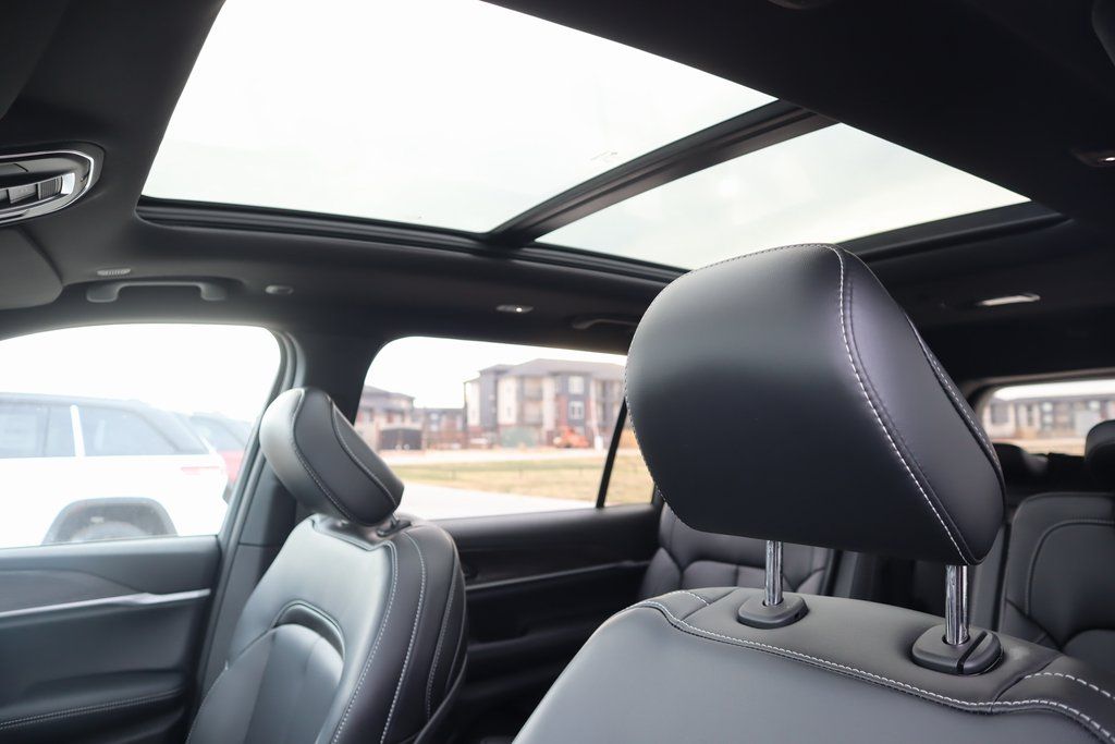 THIS VEHICLE COMES EQUIPPED WITH THE FOLLOWING OPTIONS AND FEATURES: Blackout Model (Black Painted Roof, Delete Limited Badge, Dual-Pane Panoramic Sunroof, Gloss Black Exterior Accents, Interior Rear Facing Camera, and Wheels: 20" x 8.5" Black Painted Aluminum), Quick Order Package 22E, 3.45 Rear Axle Ratio, 3rd row seats: split-bench, 4-Wheel Disc Brakes, 6 Speakers, ABS brakes, Active Noise Control System, Air Conditioning, Alloy wheels, AM/FM radio: SiriusXM with 360L, Anti-whiplash front head restraints, Audio memory, Auto High-beam Headlights, Automatic temperature control, Brake assist, Bumpers: body-color, Capri Leatherette Seats, Compass, Delay-off headlights, Driver door bin, Driver vanity mirror, Dual front impact airbags, Dual front side impact airbags, Electronic Stability Control, Emergency communication system, Four wheel independent suspension, Front anti-roll bar, Front Bucket Seats, Front Center Armrest w/Storage, Front dual zone A/C, Front fog lights, Front reading lights, Fully automatic headlights, Garage door transmitter, Heated door mirrors, Heated front seats, Heated rear seats, Heated steering wheel, Illuminated entry, Knee airbag, Low tire pressure warning, Manual Fold Seatbacks, Memory seat, Model Year Tracking, Navigation System, Normal Duty Suspension, Occupant sensing airbag, Outside temperature display, Overhead airbag, Overhead console, Panic alarm, ParkView Rear Back-Up Camera, Passenger door bin, Passenger vanity mirror, Power door mirrors, Power driver seat, Power Liftgate, Power pa Price includes: $1000 - 2025 Southwest BC SFS Bonus Cash . Exp. 04/30/2026 $2000 - 2025 National Bonus Cash . Exp. 04/30/2026 $2500 - 2025 National Retail Bonus Cash . Exp. 04/3