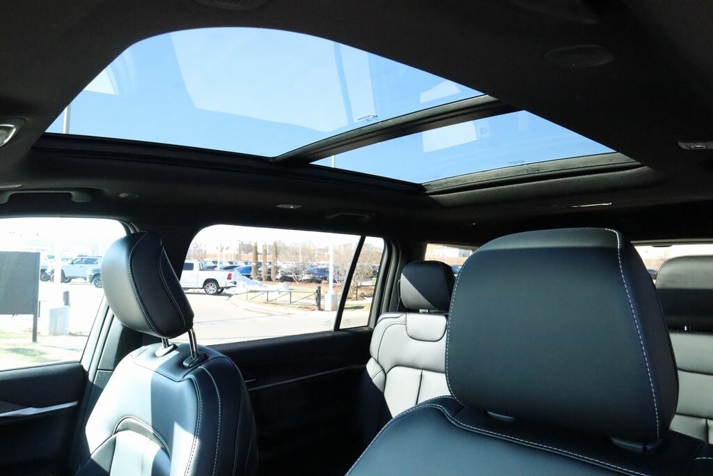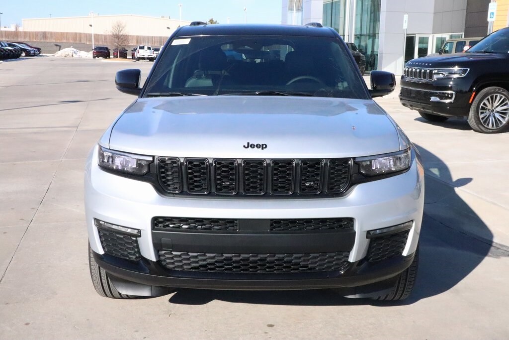 2025 Jeep Grand Cherokee L Blackout Model (Black Painted Roof, Delete Limited Badge, Dual-Pane Panoramic Sunroof, Gloss Black Exterior Accents, Interior Rear Facing Camera, and Wheels: 20" x 8.5" Black Painted Aluminum), Quick Order Package 22E, 3.45 Rear Axle Ratio, 3rd row seats: split-bench, 4-Wheel Disc Brakes, 6 Speakers, ABS brakes, Active Noise Control System, Air Conditioning, Alloy wheels, AM/FM radio: SiriusXM with 360L, Anti-whiplash front head restraints, Audio memory, Auto High-beam Headlights, Automatic temperature control, Brake assist, Bumpers: body-color, Capri Leatherette Seats, Compass, Delay-off headlights, Driver door bin, Driver vanity mirror, Dual front impact airbags, Dual front side impact airbags, Electronic Stability Control, Emergency communication system, Four wheel independent suspension, Front anti-roll bar, Front Bucket Seats, Front Center Armrest w/Storage, Front dual zone A/C, Front fog lights, Front reading lights, Fully automatic headlights, Garage door transmitter, Heated door mirrors, Heated front seats, Heated rear seats, Heated steering wheel, Illuminated entry, Knee airbag, Low tire pressure warning, Manual Fold Seatbacks, Memory seat, Model Year Tracking, Navigation System, Normal Duty Suspension, Occupant sensing airbag, Outside temperature display, Overhead airbag, Overhead console, Panic alarm, ParkView Rear Back-Up Camera, Passenger door bin, Passenger vanity mirror, Power door mirrors, Power driver seat, Power Liftgate, Power passenger seat, Power steering, Power windows, Radio data system, Radio: Uconnect 5 Nav with 10.1" Display, Rear air conditioning, Rear anti-roll bar, Rear reading lights, Rear window defroster, Rear window wiper, Reclining 3rd row seat, Remote keyless entry, Security system, Speed control, Speed-Sensitive Wipers, Split folding rear seat, Spoiler, Steering wheel mounted audio controls, Tachometer, Telescoping steering wheel, Tilt steering wheel, Traction control, Trip computer, Turn signal indicator mirrors, Variably intermittent wipers, Voltmeter, and Wheels: 18" x 8.0" Polished/Painted Aluminum. Price includes:$1000 - 2025 Southwest BC SFS Bonus Cash . Exp. 03/02/2026 $2500 - 2025 National Retail Bonus Cash . Exp. 03/02/2026