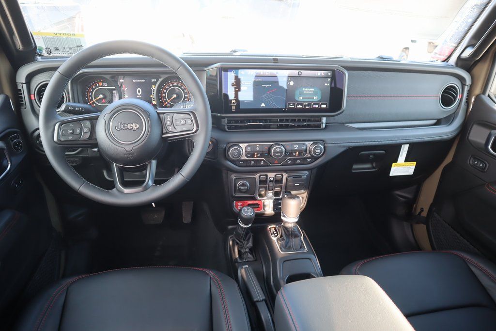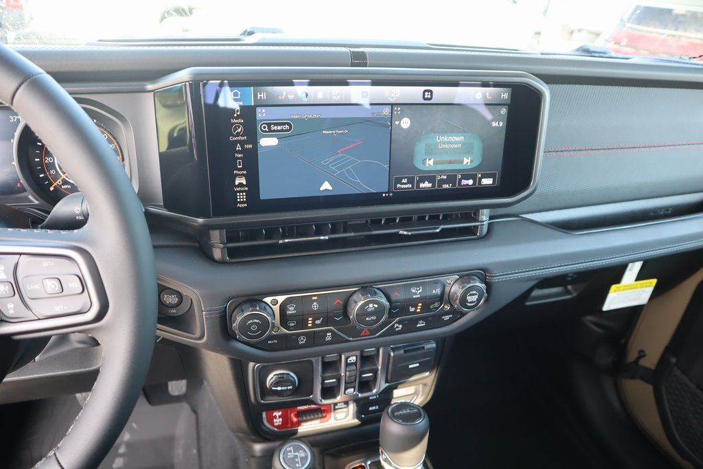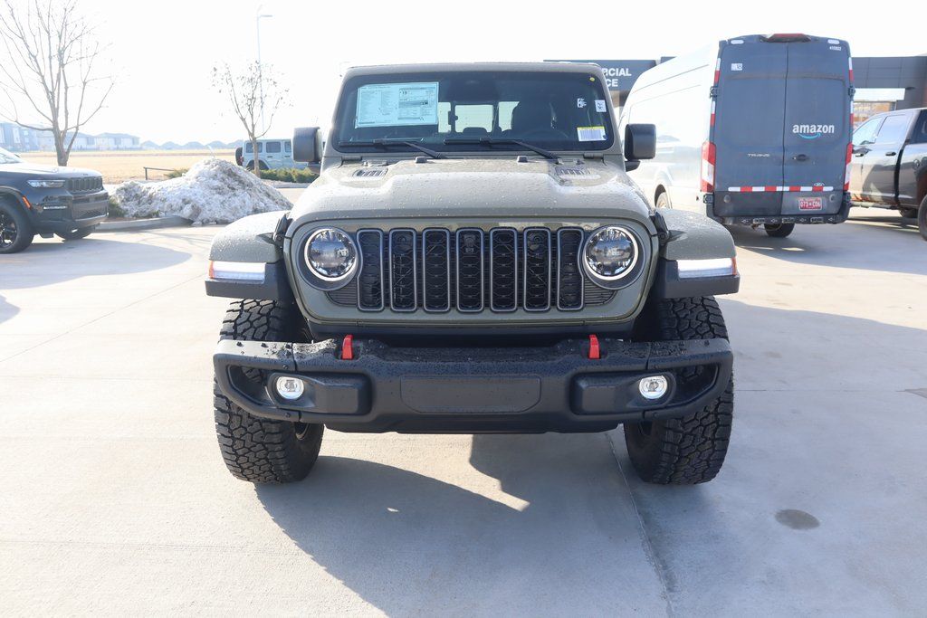 THIS VEHICLE COMES EQUIPPED WITH THE FOLLOWING OPTIONS AND FEATURES: Quick Order Package 24Y Rubicon X (Alpine Premium Audio System, Auto High Beam Headlamp Control, Auto-Dimming Rear-View Mirror, Blind Spot and Cross Path Detection, Bluetooth Wireless Speaker, Body Color 3-Piece Hard Top, Body Color Rubicon Highline Flare, Freedom Panel Storage Bag, Full Length Floor Console Premium Armrest, Heated Front Seats, Heated Steering Wheel, Integrated Off-Road Camera, Integrated Voice Command with Bluetooth, Leather Wrapped Park Brake Handle, Leather Wrapped Shift Knob, MOPAR Hardtop Headliner, ParkSense Rear Park Assist System, Power 4-Way Driver Lumbar Adjust, Power 4-Way Passenger Lumbar Adjust, Power Adjust 8-Way Driver Seat, Power Adjust 8-Way Front Passenger Seat, Power Adjust Nappa Leather Seats, Premium Door Trim Panel, Radio: Uconnect 5 Navigation with 12.3" Display, Rear Armrest with Cupholder Seat, Rear Sliding Window, Rear Window Defroster, Rubicon Hood Top Decal, Steel Front Bumper, Universal Garage Door Opener, and USB Host Flip), Steel Power Dome Hood Package (Power Dome Dual Vented Hood), 110 Mph Vehicle Max Speed Calibration, 12.3" Touchscreen Display, 4G LTE Wi-Fi Hot Spot, Alexa Built-in, Apple CarPlay, Apple CarPlay/Android Auto, Heated door mirrors, Power door mirrors, 4-Wheel Disc Brakes, 4.10 Rear Axle Ratio, 8 Speakers, ABS brakes, Air Conditioning, Alloy wheels, AM/FM radio: SiriusXM with 360L, Automatic temperature control, Brake assist, Cloth Low-Back Bucket Seats, Compass, Connectivity - US/Canada, Delay-off headlights, Driver door bin, Driver vanity mirror, Dual front impact airbags, Dual front side impact airbags, Electronic Stability Control, Emergency communication system: Jeep Connect, Front anti-roll bar, Front Bucket Seats, Front Center Armrest w/Storage, Front dual zone A/C, Front fog lights, Front reading lights, Fully automatic headlights, Google Android Auto, Illuminated entry, Integrated roll-over protection, Low tire pressure warning, MOPAR All-Weather Slush Mats, Occupant sensing airbag, Outside temperature display, Overhead airbag, Panic alarm, Passenger door bin, Passenger vanity mirror, Performance Suspension, Power steering, Power windows, Radio data system, Radio: Uconnect 5 with 12.3" Display, Rear anti-roll bar, Rear reading lights, Remote keyless entry, Security system, Speed control, Split folding rear seat, Steering wheel mounted audio controls, Tachometer, Telescoping steering wheel, Tilt steering wheel, Traction control, Trip computer, Variably intermittent wipers, Voltmeter, Wheels: 17" x 7.5" Machined with Black Pockets, and Wheels: 17" x 7.5" Machined/Painted Black.