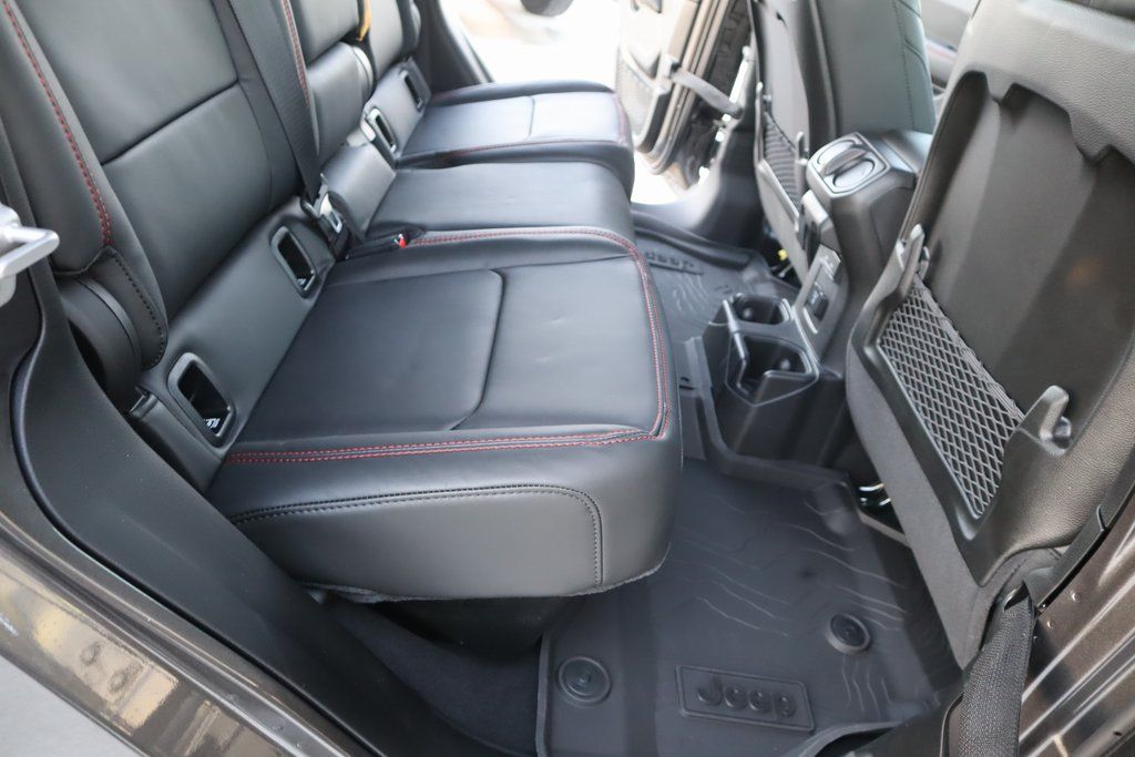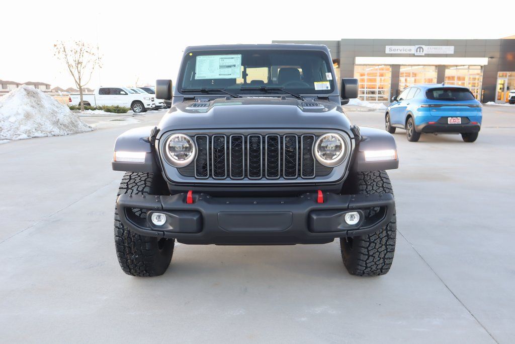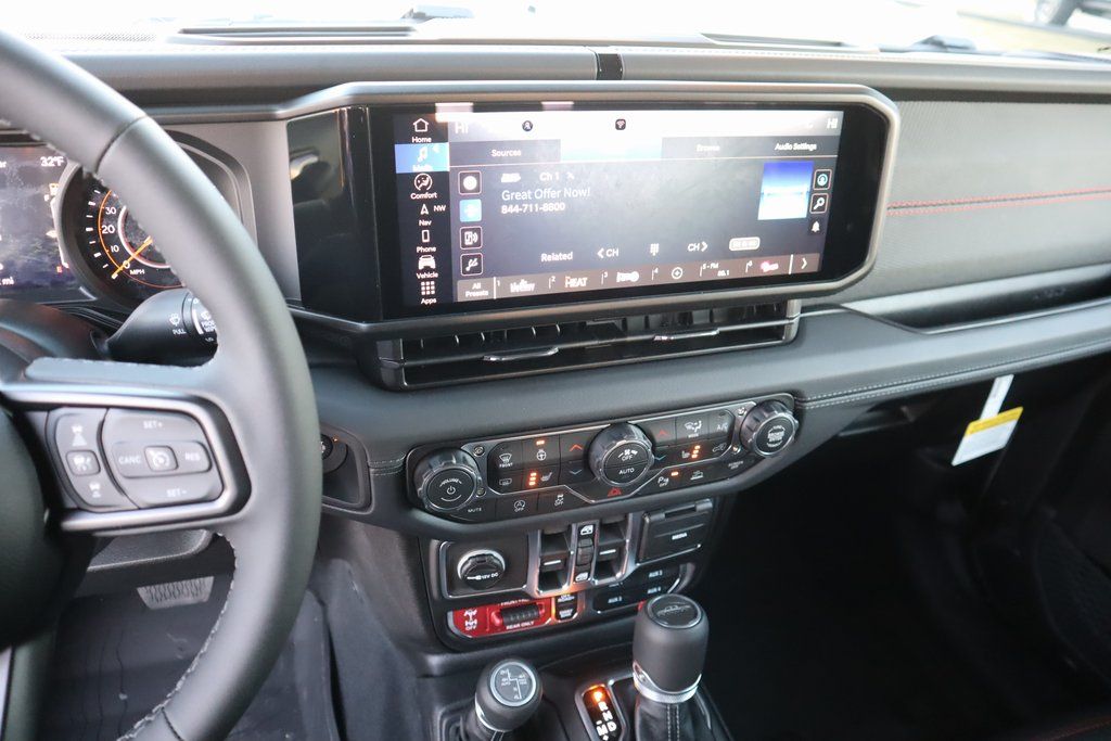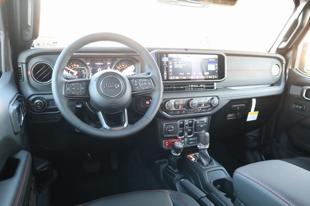 THIS VEHICLE COMES EQUIPPED WITH THE FOLLOWING OPTIONS AND FEATURES: Quick Order Package 24Y Rubicon X (Alpine Premium Audio System, Auto High Beam Headlamp Control, Auto-Dimming Rear-View Mirror, Blind Spot and Cross Path Detection, Bluetooth Wireless Speaker, Body Color 3-Piece Hard Top, Body Color Rubicon Highline Flare, Freedom Panel Storage Bag, Full Length Floor Console Premium Armrest, Heated Front Seats, Heated Steering Wheel, Integrated Off-Road Camera, Integrated Voice Command with Bluetooth, Leather Wrapped Park Brake Handle, Leather Wrapped Shift Knob, MOPAR Hardtop Headliner, ParkSense Rear Park Assist System, Power 4-Way Driver Lumbar Adjust, Power 4-Way Passenger Lumbar Adjust, Power Adjust 8-Way Driver Seat, Power Adjust 8-Way Front Passenger Seat, Power Adjust Nappa Leather Seats, Premium Door Trim Panel, Radio: Uconnect 5 Navigation with 12.3" Display, Rear Armrest with Cupholder Seat, Rear Sliding Window, Rear Window Defroster, Rubicon Hood Top Decal, Steel Front Bumper, Universal Garage Door Opener, and USB Host Flip), Steel Power Dome Hood Package (Power Dome Dual Vented Hood), 110 Mph Vehicle Max Speed Calibration, 12.3" Touchscreen Display, 4G LTE Wi-Fi Hot Spot, Alexa Built-in, Apple CarPlay, Apple CarPlay/Android Auto, Compass, Connectivity - US/Canada, Driver door bin, Driver vanity mirror, Front reading lights, Google Android Auto, Heated door mirrors, Power door mirrors, 4-Wheel Disc Brakes, 4.10 Rear Axle Ratio, 8 Speakers, ABS brakes, Air Conditioning, Alloy wheels, AM/FM radio: SiriusXM with 360L, Automatic temperature control, Brake assist, Cloth Low-Back Bucket Seats, Delay-off headlights, Dual front impact airbags, Dual front side impact airbags, Electronic Stability Control, Emergency communication system: Jeep Connect, Front anti-roll bar, Front Bucket Seats, Front Center Armrest w/Storage, Front dual zone A/C, Front fog lights, Fully automatic headlights, Illuminated entry, Integrated roll-over protection, Low tire pressure warning, MOPAR All-Weather Slush Mats, Occupant sensing airbag, Outside temperature display, Overhead airbag, Panic alarm, Passenger door bin, Passenger vanity mirror, Performance Suspension, Power steering, Power windows, Radio data system, Radio: Uconnect 5 with 12.3" Display, Rear anti-roll bar, Rear reading lights, Remote keyless entry, Security system, Speed control, Split folding rear seat, Steering wheel mounted audio controls, Tachometer, Telescoping steering wheel, Price includes: $1000 - 2026 National Retail Bonus Cash . Exp. 04/3