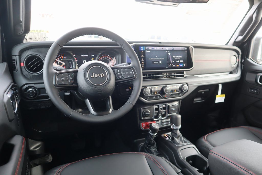 THIS VEHICLE COMES EQUIPPED WITH THE FOLLOWING OPTIONS AND FEATURES: Convenience Group (Heated Front Seats, Heated Steering Wheel, Remote Start System, and Universal Garage Door Opener), Quick Order Package 24R Rubicon, Steel Power Dome Hood Package (Power Dome Dual Vented Hood), 110 Mph Vehicle Max Speed Calibration, 12.3" Touchscreen Display, 4-Wheel Disc Brakes, 4.10 Rear Axle Ratio, 4G LTE Wi-Fi Hot Spot, 8 Speakers, ABS brakes, Air Conditioning, Alexa Built-in, Alloy wheels, AM/FM radio: SiriusXM with 360L, Apple CarPlay, Apple CarPlay/Android Auto, Automatic temperature control, Body Color 3-Piece Hard Top, Body Color Rubicon Highline Flare, Brake assist, Cloth Low-Back Bucket Seats, Compass, Connectivity - US/Canada, Delay-off headlights, Driver door bin, Driver vanity mirror, Dual front impact airbags, Dual front side impact airbags, Electronic Stability Control, Emergency communication system: Jeep Connect, Freedom Panel Storage Bag, Front anti-roll bar, Front Bucket Seats, Front Center Armrest w/Storage, Front dual zone A/C, Front fog lights, Front reading lights, Fully automatic headlights, Google Android Auto, Heated door mirrors, Illuminated entry, Integrated roll-over protection, Low tire pressure warning, MOPAR All-Weather Slush Mats, MOPAR Spray in Bedliner, Occupant sensing airbag, Outside temperature display, Overhead airbag, Panic alarm, Passenger door bin, Passenger vanity mirror, Performance Suspension, Power door mirrors, Power steering, Power windows, Radio data system, Radio: Uconnect 5 with 12.3" Display, Rear anti-roll bar, Rear reading lights, Rear Sliding Window, Rear Window Defroster, Remote keyless entry, Security system, Speed control, Split folding rear seat, Steering wheel mounted audio controls, Tachometer, Telescoping steering wheel, Tilt steering wheel, Traction control, Trip computer, USB Host Flip, Variably intermittent wipers, Voltmeter, and Wheels: 17" x 7.5" Machined/Painted Black. Price includes: $1000 - 2026 National Retail Bonus Cash . Exp. 04/30/2026