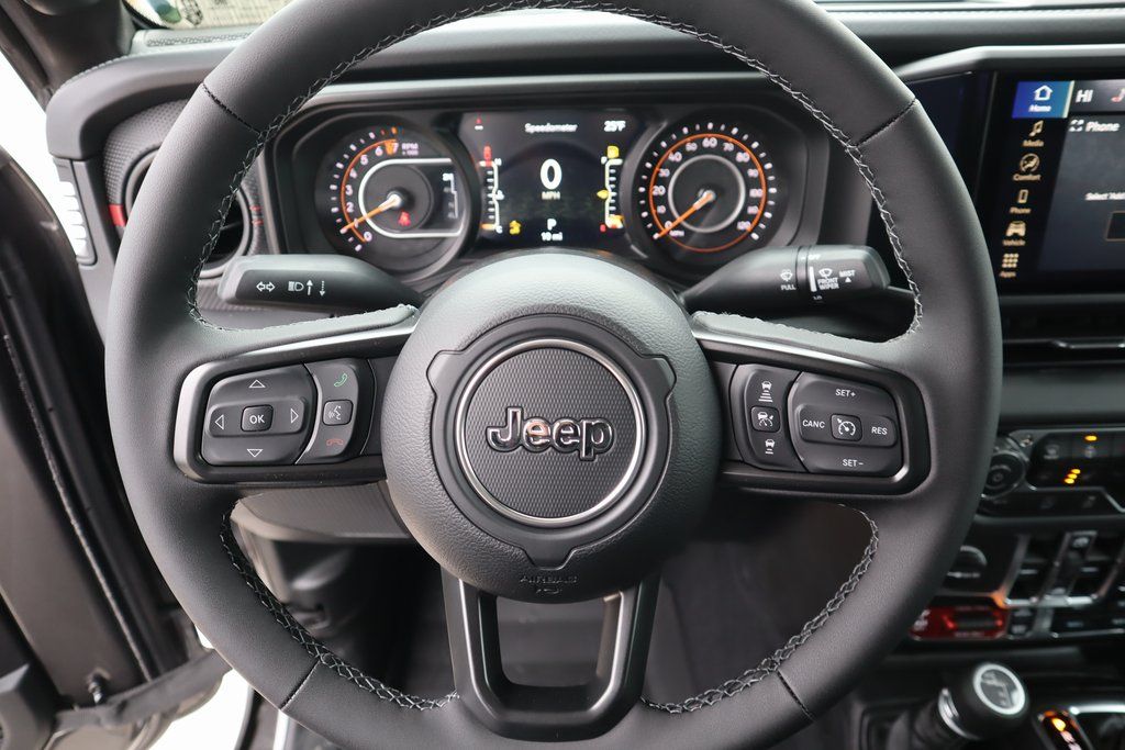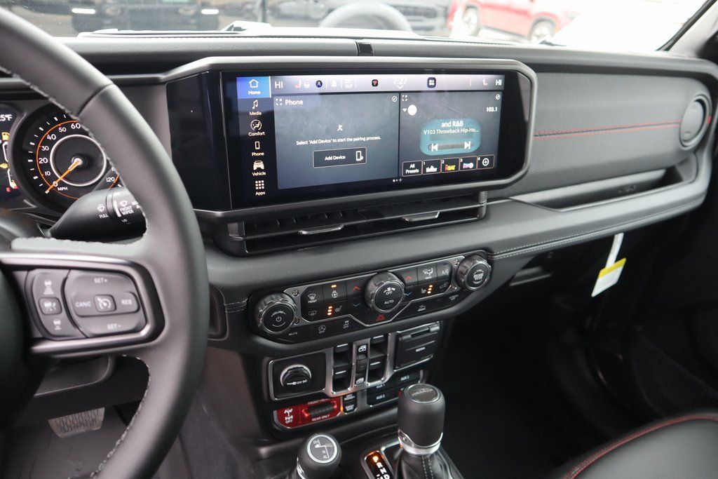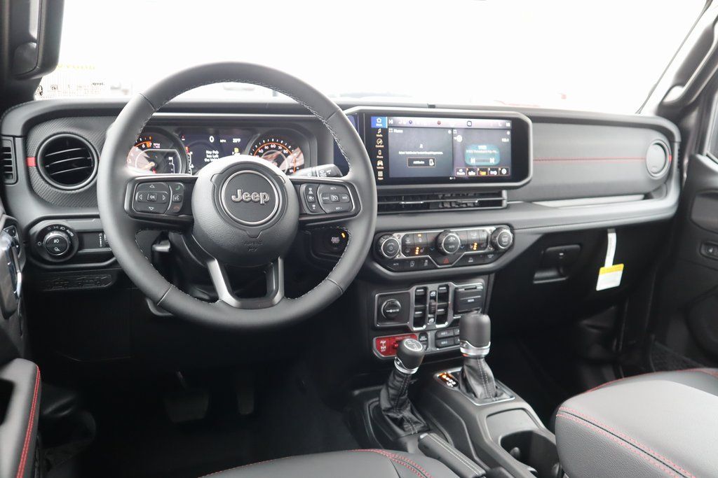 THIS VEHICLE COMES EQUIPPED WITH THE FOLLOWING OPTIONS AND FEATURES: Convenience Group (Heated Front Seats, Heated Steering Wheel, Remote Start System, and Universal Garage Door Opener), Quick Order Package 24R Rubicon, Steel Power Dome Hood Package (Power Dome Dual Vented Hood), 110 Mph Vehicle Max Speed Calibration, 12.3" Touchscreen Display, 4-Wheel Disc Brakes, 4.10 Rear Axle Ratio, 4G LTE Wi-Fi Hot Spot, 8 Speakers, ABS brakes, Air Conditioning, Alexa Built-in, Alloy wheels, AM/FM radio: SiriusXM with 360L, Apple CarPlay, Apple CarPlay/Android Auto, Automatic temperature control, Body Color 3-Piece Hard Top, Body Color Rubicon Highline Flare, Brake assist, Cloth Low-Back Bucket Seats, Compass, Connectivity - US/Canada, Delay-off headlights, Driver door bin, Driver vanity mirror, Dual front impact airbags, Dual front side impact airbags, Electronic Stability Control, Emergency communication system: Jeep Connect, Freedom Panel Storage Bag, Front anti-roll bar, Front Bucket Seats, Front Center Armrest w/Storage, Front dual zone A/C, Front fog lights, Front reading lights, Fully automatic headlights, Google Android Auto, Heated door mirrors, Illuminated entry, Integrated roll-over protection, Low tire pressure warning, MOPAR All-Weather Slush Mats, MOPAR Spray in Bedliner, Occupant sensing airbag, Outside temperature display, Overhead airbag, Panic alarm, Passenger door bin, Passenger vanity mirror, Performance Suspension, Power door mirrors, Power steering, Power windows, Radio data system, Radio: Uconnect 5 with 12.3" Display, Rear anti-roll bar, Rear reading lights, Rear Sliding Window, Rear Window Defroster, Remote keyless entry, Security system, Speed control, Split folding rear seat, Steering wheel mounted audio controls, Tachometer, Telescoping steering wheel, Tilt steering wheel, Traction control, Trip computer, USB Host Flip, Variably intermittent wiper Price includes: $1000 - 2026 National Retail Bonus Cash . Exp. 03/3