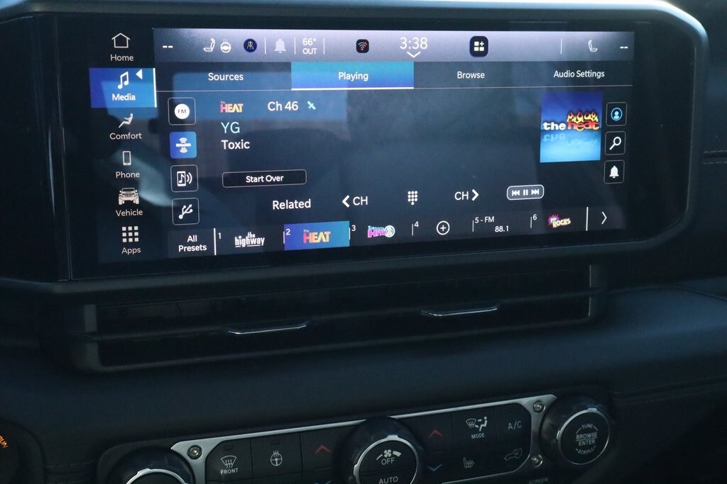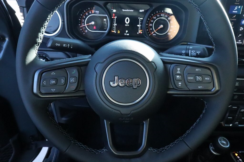 2026 Jeep Gladiator ABS brakes, Compass, Electronic Stability Control, Illuminated entry, Low tire pressure warning, ParkView Rear Back-Up Camera, Remote keyless entry, Traction control, 110 Mph Vehicle Max Speed Calibration, 12.3" Touchscreen Display, 3.73 Rear Axle Ratio, 4-Wheel Disc Brakes, 4G LTE Wi-Fi Hot Spot, 8 Speakers, Air Conditioning, Alexa Built-in, AM/FM radio: SiriusXM with 360L, Apple CarPlay, Apple CarPlay/Android Auto, Brake assist, Connectivity - US/Canada, Delay-off headlights, Driver door bin, Driver vanity mirror, Dual front impact airbags, Dual front side impact airbags, Front anti-roll bar, Front Bucket Seats, Front Center Armrest w/Storage, Front fog lights, Front reading lights, Google Android Auto, Integrated roll-over protection, Normal Duty Suspension, Occupant sensing airbag, Outside temperature display, Overhead airbag, Panic alarm, Passenger door bin, Passenger vanity mirror, Power steering, Power windows, Radio data system, Radio: Uconnect 5 with 12.3" Display, Rear anti-roll bar, Rear reading lights, Speed control, Split folding rear seat, Steering wheel mounted audio controls, Tachometer, Telescoping steering wheel, Tilt steering wheel, Trip computer, USB Host Flip, Variably intermittent wipers, Voltmeter, and Wheels: 17" x 7.5" Black Steel Styled.