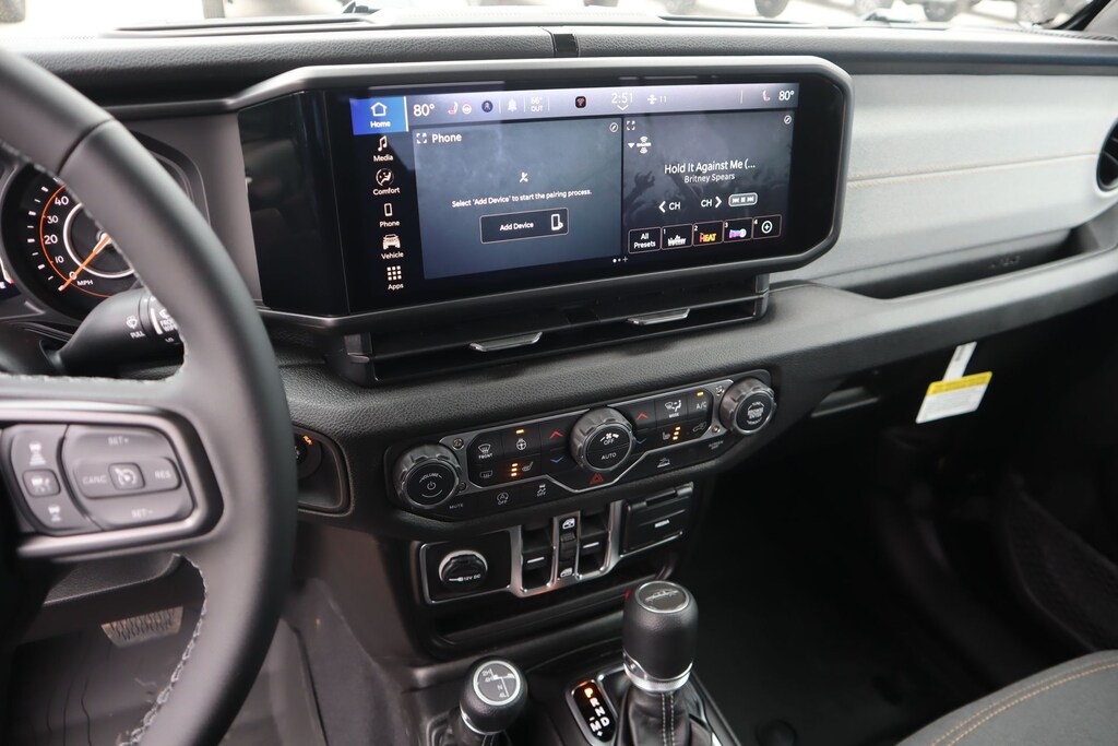 THIS VEHICLE COMES EQUIPPED WITH THE FOLLOWING OPTIONS AND FEATURES: Convenience Group (Air Conditioning with Auto Temp Control, Cluster 7.0" TFT Color Display, Corning Gorilla Glass, Daytime Running Lamp System, Emergency/Assistance Call, Front Door Locks 2-Door Passive Entry, Heated Front Seats, Heated Steering Wheel, Remote Start System, and Universal Garage Door Opener), LED Headlamp and Fog Lamp Group (Daytime Running Lamps LED Accents, Front LED Fog Lamps, and LED Premium Reflector Headlamps), Quick Order Package 24S Sport S (Advanced Brake Assist, Automatic Headlamps, Deep Tint Sunscreen Windows, Full Speed Forward Collision Warning Plus, Normal Duty Plus Suspension, Power Heated Mirrors, Premium Wrapped Steering Wheel, Security Alarm, Sun Visors with Illuminated Vanity Mirrors, and Wheels: 17" x 7.5" Gray), 110 Mph Vehicle Max Speed Calibration, 12.3" Touchscreen Display, 4G LTE Wi-Fi Hot Spot, 8 Speakers, Air Conditioning, Alexa Built-in, AM/FM radio: SiriusXM with 360L, Apple CarPlay, Apple CarPlay/Android Auto, Compass, Connectivity - US/Canada, Driver door bin, Driver vanity mirror, For Details, Visit DriveUconnect.com, Front reading lights, Google Android Auto, Illuminated entry, Integrated Center Stack Radio, MOPAR All-Weather Slush Mats, Outside temperature display, Passenger vanity mirror, Power steering, Power windows, Radio data system, Radio: Uconnect 5 with 12.3" Display, Rear reading lights, Rear Window Defroster, Remote keyless entry, SiriusXM Radio Service, SiriusXM with 360L, Steering wheel mounted audio controls, Tachometer, Telescoping steering wheel, Tilt steering wheel, Trip computer, USB Host Flip, 3.73 Rear Axle Ratio, 4-Wheel Disc Brakes, ABS brakes, Black 3-Piece Hard Top, Brake assist, Delay-off headlights, Dual front impact airbags, Dual front side impact airbags, Electronic Stability Control, Freedom Panel Storage Bag, Front anti-roll bar, Front Bucket Seats, Front Center Armrest w/Storage, Front fog lights, Integrated roll-over protection, Low tire pressure warning, Normal Duty Suspension, Occupant sensing airbag, Overhead airbag, Panic alarm, ParkView Rear Back-Up C Price includes: $1000 - 2026 National Retail Bonus Cash . Exp. 04/30/2026 $750 - 2026 Southwest BC Bonus Cash . Exp. 04/3