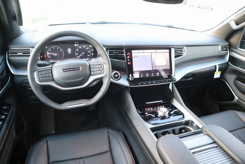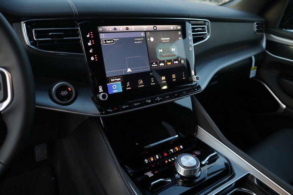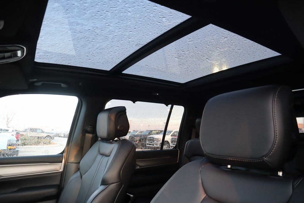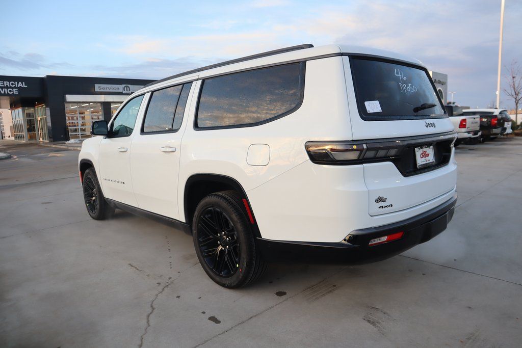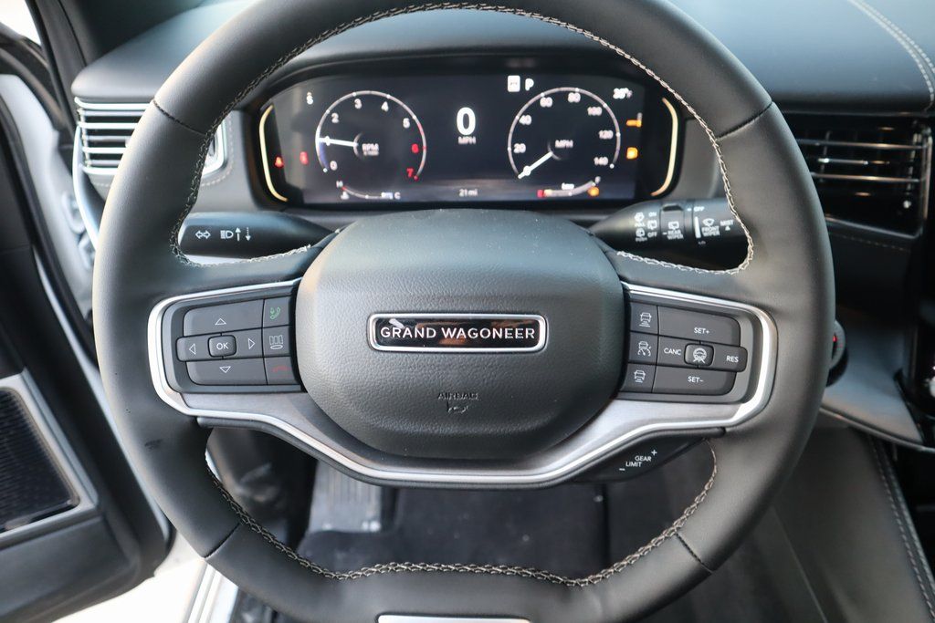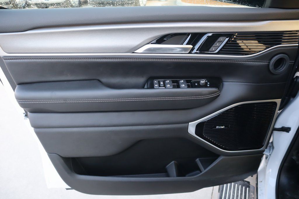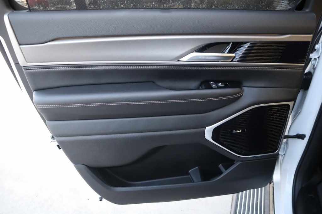 THIS VEHICLE COMES EQUIPPED WITH THE FOLLOWING OPTIONS AND FEATURES: Black Appearance Package (118 MPH Maximum Speed Calibration, Black Exterior Accents, Titanium Daylight Opening Upper, Titanium Upper Grille Applique, and Wheels: 22" x 9" Painted Gloss Black), Limited Reserve Package, Quick Order Package 29D Reserve (19 Speaker McIntosh Audio System, 2nd Row Manual Window Shades, 3 Panel Sunroof, Cluster 12" TFT Color Display, Instrument Panel, Interior Rear Facing Camera, Luxury Front and Rear Floor Mats, P and P Park and Unpark Assist with Stop System, Power Deployable Running Boards, Quadra-Lift Air Suspension, Reversible Carpet/Vinyl Cargo Mat, Semi Active Damping, Side Distance Warning, Smartphone as a Key Prep, and Surround View Camera System), Navigation System, 3.55 Rear Axle Ratio, 3rd row seats: bench, 4-Wheel Disc Brakes, 9 Speakers, ABS brakes, Air Conditioning, Alloy wheels, AM/FM radio: SiriusXM with 360L, Anti-whiplash front head restraints, Apple CarPlay/Android Auto, Audio memory, Auto Adjust in Reverse Exterior Mirrors, Auto High-beam Headlights, Auto-dimming door mirrors, Auto-Dimming Exterior Driver Mirror, Auto-dimming Rear-View mirror, Auto-leveling suspension, Automatic temperature control, Brake assist, Bumpers: body-color, Compass, Delay-off headlights, Driver door bin, Driver vanity mirror, Driver's Seat Mounted Armrest, Dual front impact airbags, Dual front side impact airbags, Electronic Stability Control, Emergency communication system: Jeep Connect, Exterior Mirrors Approach Lamps, Exterior Mirrors with Memory, Exterior Mirrors with Supplemental Signals, Exterior Parking Camera Rear, Four wheel independent suspension, Front anti-roll bar, Front Bucket Seats, Front Center Armrest w/Storage, Front dual zone A/C, Front fog lights, Front reading lights, Fully automatic headlights, Garage door transmitter, Heated door mirrors, Heated Exterior Mirrors, Heated front seats, Heated rear seats, Heated steering wheel, Illuminated entry, Knee airbag, Leather Trimmed Bucket Seats, Low tire pressure warning, Memory seat, Normal Duty Suspension, Occupant sensing airbag, Outside temperature display, Overhead airbag, Overhead console, Panic alarm, Passenger door bin, Passenger seat mounted armrest, Passenger vanity mirror, Power door mirrors, Power driver seat, Power Liftgate, Power passenger seat, Power steering, Power windows, Radio data system, Radio: Uconnect 5 Nav with 12" Display, Rain sensing wipers, Rear air conditioning, Rear anti-roll bar, Rear reading lights, Rear seat center armrest, Rear window defroster, Rear window wiper, Reclining 3rd row seat, Remote keyless entry, Security system, Speed control, Speed-sensing steering, Speed-Sensitive Wipers, Split folding rear seat, Steering wheel memory, Steering wheel mounted audio controls, Tachometer, Telescoping steering wheel, Tilt steering wheel, Traction control, Trip computer, Turn signal indicator mirrors, Variably intermittent wipers, Ventilated front seats, Voltmeter, and Wheels: 20" x 9.0" Machine Face Painted Aluminum.