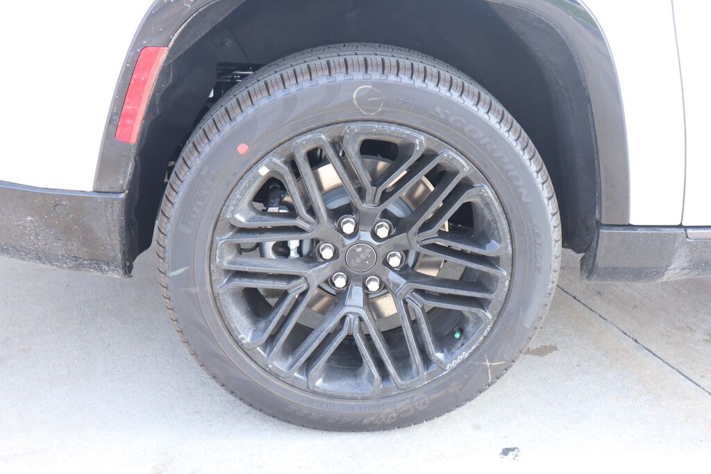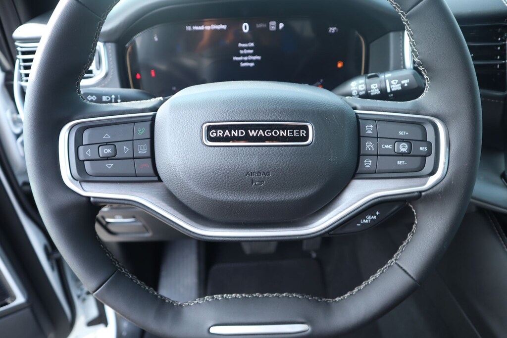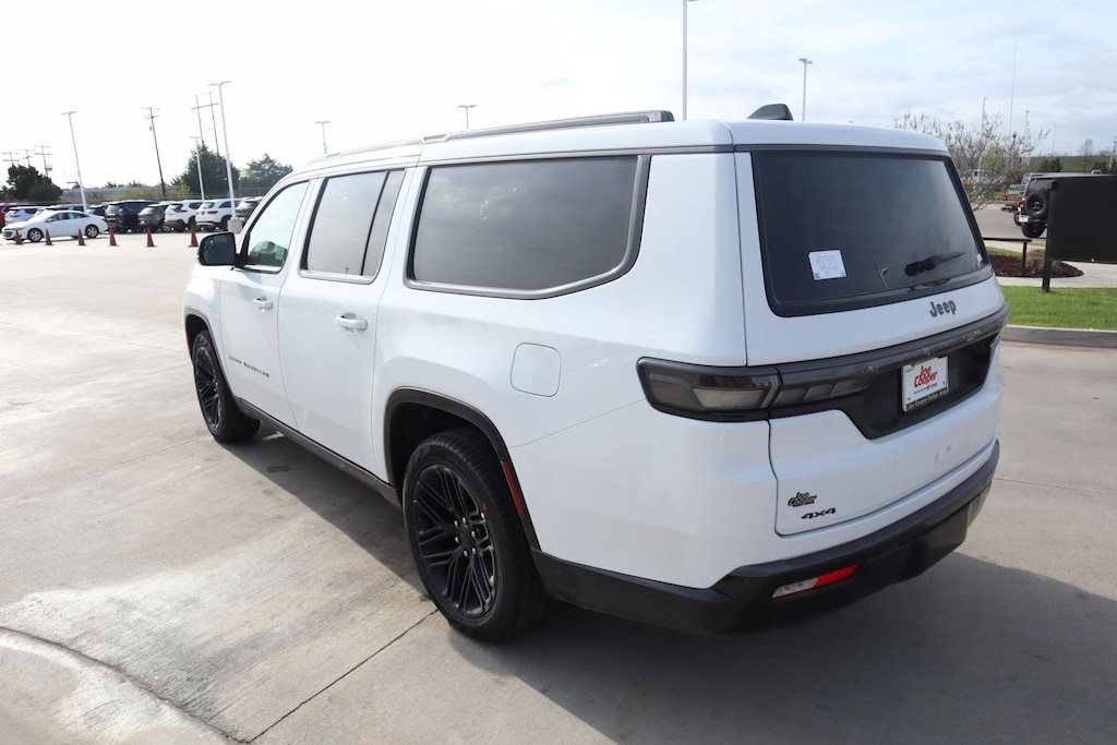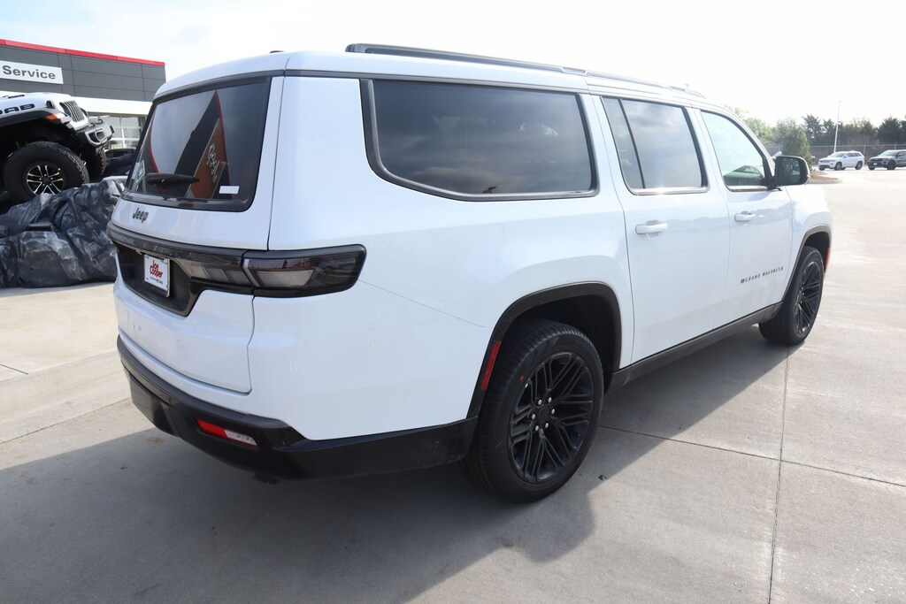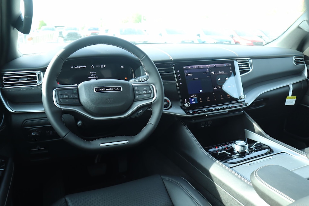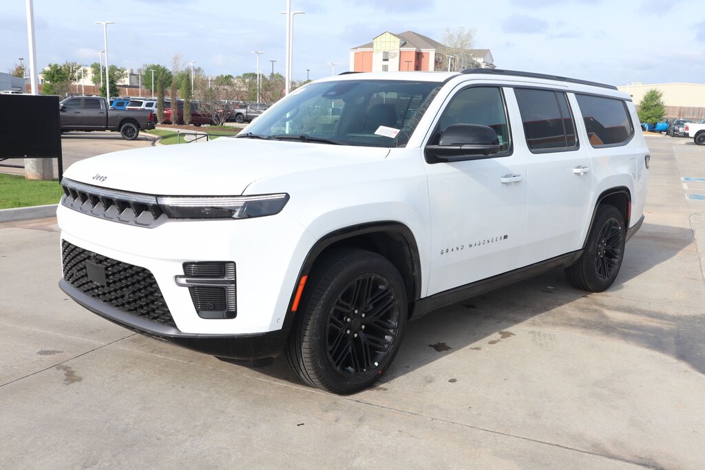 2026 Jeep Grand Wagoneer L Black Appearance Package (118 MPH Maximum Speed Calibration, Black Exterior Accents, Titanium Daylight Opening Upper, Titanium Upper Grille Applique, and Wheels: 22" x 9" Painted Gloss Black), Limited Reserve Package, Quick Order Package 29D Reserve (19 Speaker McIntosh Audio System, 2nd Row Manual Window Shades, 3 Panel Sunroof, Augmented HUD, Cluster 12" TFT Color Display, Instrument Panel, Interior Rear Facing Camera, Luxury Front and Rear Floor Mats, P and P Park and Unpark Assist with Stop System, Pirelli Brand Tires, Power Deployable Running Boards, Quadra-Lift Air Suspension, Reversible Carpet/Vinyl Cargo Mat, Semi Active Damping, Side Distance Warning, Smartphone as a Key Prep, and Surround View Camera System), 3.55 Rear Axle Ratio, 3rd row seats: bench, 4-Wheel Disc Brakes, 9 Speakers, ABS brakes, Air Conditioning, Alloy wheels, AM/FM radio: SiriusXM with 360L, Anti-whiplash front head restraints, Apple CarPlay/Android Auto, Audio memory, Auto Adjust in Reverse Exterior Mirrors, Auto High-beam Headlights, Auto-dimming door mirrors, Auto-Dimming Exterior Driver Mirror, Auto-dimming Rear-View mirror, Auto-leveling suspension, Automatic temperature control, Brake assist, Bumpers: body-color, Compass, Delay-off headlights, Driver door bin, Driver vanity mirror, Driver's Seat Mounted Armrest, Dual front impact airbags, Dual front side impact airbags, Electronic Stability Control, Emergency communication system: Jeep Connect, Exterior Mirrors Approach Lamps, Exterior Mirrors with Memory, Exterior Mirrors with Supplemental Signals, Exterior Parking Camera Rear, Four wheel independent suspension, Front anti-roll bar, Front Bucket Seats, Front Center Armrest w/Storage, Front dual zone A/C, Front fog lights, Front reading lights, Fully automatic headlights, Garage door transmitter, Heated door mirrors, Heated Exterior Mirrors, Heated front seats, Heated rear seats, Heated steering wheel, Illuminated entry, Knee airbag, Leather Trimmed Bucket Seats, Low tire pressure warning, Memory seat, Navigation System, Normal Duty Suspension, Occupant sensing airbag, Outside temperature display, Overhead airbag, Overhead console, Panic alarm, Passenger door bin, Passenger seat mounted armrest, Passenger vanity mirror, Power door mirrors, Power driver seat, Power Liftgate, Power passenger seat, Power steering, Power windows, Radio data system, Radio: Uconnect 5 Nav with 12" Display, Rain sensing wipers, Rear air conditioning, Rear anti-roll bar, Rear reading lights, Rear seat center armrest, Rear window defroster, Rear window wiper, Reclining 3rd row seat, Remote keyless entry, Security system, Speed control, Speed-sensing steering, Speed-Sensitive Wipers, Split folding rear seat, Steering wheel memory, Steering wheel mounted audio controls, Tachometer, Telescoping steering wheel, Tilt steering wheel, Traction control, Trip computer, Turn signal indicator mirrors, Variably intermittent wipers, Ventilated front seats, Voltmeter, and Wheels: 20" x 9.0" Machine Face Painted Aluminum.