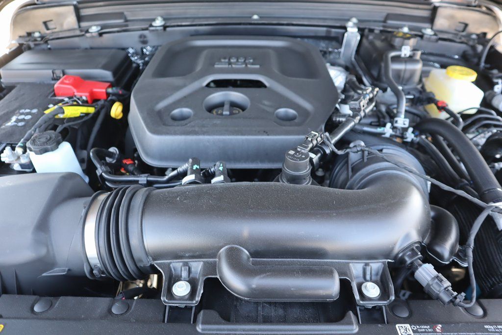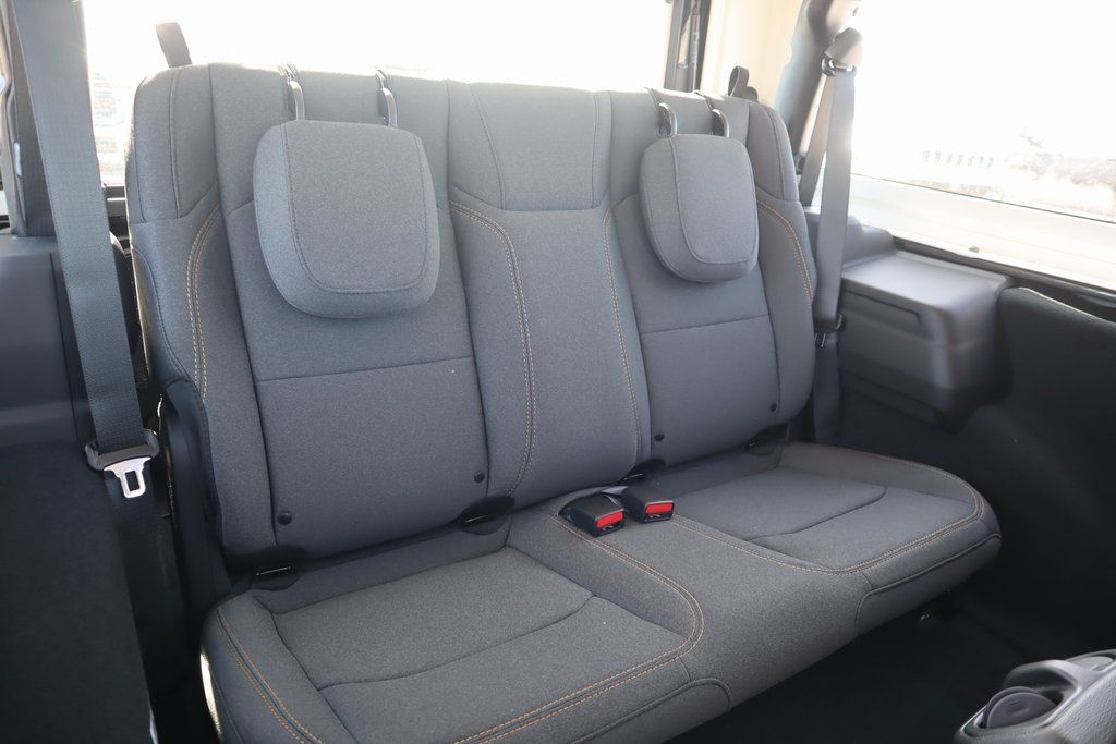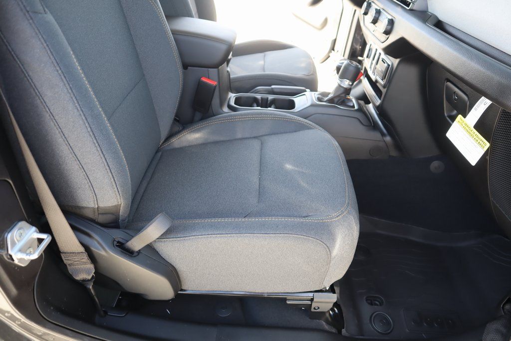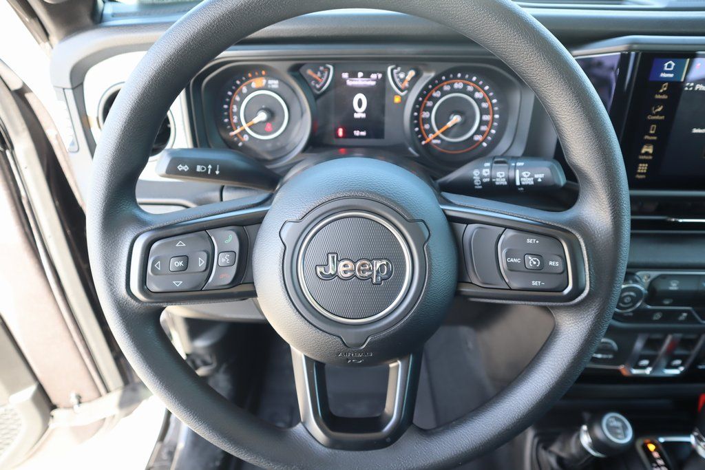 THIS VEHICLE COMES EQUIPPED WITH THE FOLLOWING OPTIONS AND FEATURES: Quick Order Package 22B Sport, 12.3" Touchscreen Display, 4-Wheel Disc Brakes, 4G LTE Wi-Fi Hot Spot, 8 Speakers, ABS brakes, Air Conditioning, AM/FM radio: SiriusXM with 360L, Apple CarPlay, Apple CarPlay/Android Auto, Aux Battery, Black 3-Piece Hard Top, Brake assist, Cloth Low-Back Bucket Seats, Compass, Connectivity - US/Canada, Delay-off headlights, Driver door bin, Driver vanity mirror, Dual front impact airbags, Dual front side impact airbags, Electronic Stability Control, For More Info, Call 800-643-2112, Freedom Panel Storage Bag, Front anti-roll bar, Front Bucket Seats, Front Center Armrest w/Storage, Front fog lights, Front reading lights, Google Android Auto, Illuminated entry, Integrated Center Stack Radio, Integrated roll-over protection, Low tire pressure warning, MOPAR All-Weather Floor Mats, Non-Lock Fuel Cap Without Discriminator, Normal Duty Suspension, Occupant sensing airbag, Outside temperature display, Overhead airbag, Panic alarm, ParkView Rear Back-Up Camera, Passenger door bin, Passenger vanity mirror, Power steering, Power windows, Radio data system, Radio: Uconnect 5 with 12.3" Display, Rear anti-roll bar, Rear reading lights, Rear Window Defroster, Rear Window Wiper/Washer, Remote keyless entry, SiriusXM Radio Service, SiriusXM with 360L, Speed control, Steering wheel mounted audio controls, Stop-Start Dual Battery System, Tachometer, Telescoping steering wheel, Tilt steering wheel, Traction control, Trip computer, Variably intermittent wipers, Wheels: 17" x 7.5" Black Steel Styled, and Wheels: 17" x 7.5" Gray.