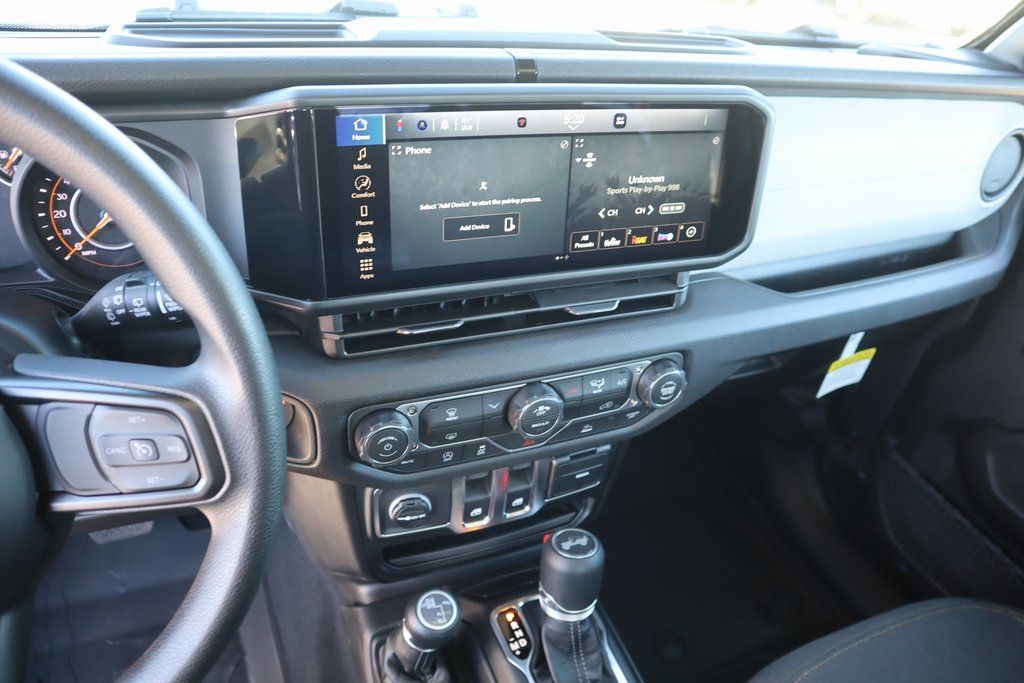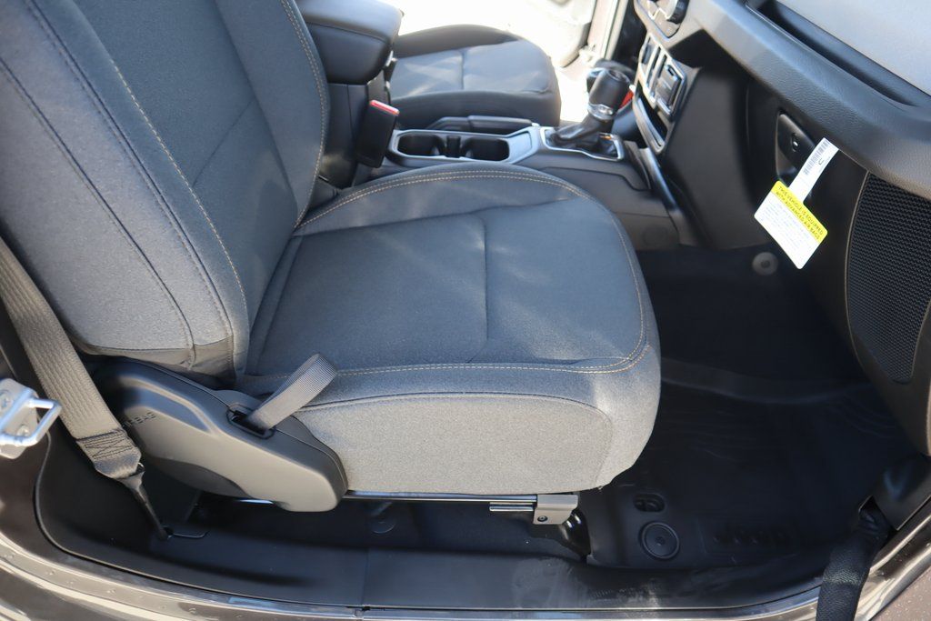 THIS VEHICLE COMES EQUIPPED WITH THE FOLLOWING OPTIONS AND FEATURES: Quick Order Package 22B Sport, 12.3" Touchscreen Display, 3.45 Overall Top Gear Ratio, 4-Wheel Disc Brakes, 4G LTE Wi-Fi Hot Spot, 8 Speakers, ABS brakes, Air Conditioning, AM/FM radio: SiriusXM with 360L, Apple CarPlay, Apple CarPlay/Android Auto, Aux Battery, Black 3-Piece Hard Top, Brake assist, Cloth Low-Back Bucket Seats, Compass, Connectivity - US/Canada, Delay-off headlights, Driver door bin, Driver vanity mirror, Dual front impact airbags, Dual front side impact airbags, Electronic Stability Control, For More Info, Call 800-643-2112, Freedom Panel Storage Bag, Front anti-roll bar, Front Bucket Seats, Front Center Armrest w/Storage, Front fog lights, Front reading lights, Google Android Auto, Illuminated entry, Integrated Center Stack Radio, Integrated roll-over protection, Low tire pressure warning, MOPAR All-Weather Floor Mats, Non-Lock Fuel Cap Without Discriminator, Normal Duty Suspension, Occupant sensing airbag, Outside temperature display, Overhead airbag, Panic alarm, ParkView Rear Back-Up Camera, Passenger door bin, Passenger vanity mirror, Power steering, Power windows, Radio data system, Radio: Uconnect 5 with 12.3" Display, Rear anti-roll bar, Rear reading lights, Rear Window Defroster, Rear Window Wiper/Washer, Remote keyless entry, SiriusXM Radio Service, SiriusXM with 360L, Speed control, Steering wheel mounted audio controls, Stop-Start Dual Battery System, Tachometer, Telescoping steering wheel, Tilt steering wheel, Traction control, Trip computer, Variably intermittent wipers, and Wheels: 17" x 7.5" Black Steel Styled.