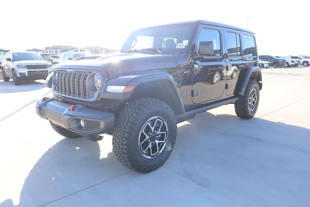 THIS VEHICLE COMES EQUIPPED WITH THE FOLLOWING OPTIONS AND FEATURES: Convenience Group (Heated Front Seats and Heated Steering Wheel), Quick Order Package 24R Rubicon, Steel Performance Hood Package (Performance Hood), 12.3" Touchscreen Display, 4-Wheel Disc Brakes, 4.10 Rear Axle Ratio, 4G LTE Wi-Fi Hot Spot, 8 Speakers, ABS brakes, Air Conditioning, Alloy wheels, AM/FM radio: SiriusXM with 360L, Apple CarPlay, Apple CarPlay/Android Auto, Automatic temperature control, Aux Battery, Auxiliary Switches, Body Color 3-Piece Hard Top, Body Color Rubicon Highline Flare, Brake assist, Class II Receiver Hitch, Cloth Low-Back Bucket Seats, Compass, Connectivity - US/Canada, Delay-off headlights, Driver door bin, Driver vanity mirror, Dual front impact airbags, Dual front side impact airbags, Electronic Stability Control, Emergency communication system: Jeep Connect, For More Info, Call 800-643-2112, Freedom Panel Storage Bag, Front anti-roll bar, Front Bucket Seats, Front Center Armrest w/Storage, Front dual zone A/C, Front fog lights, Front License Plate Bracket, Front reading lights, Fully automatic headlights, Google Android Auto, Heated door mirrors, Integrated roll-over protection, Low tire pressure warning, No Soft Top, Non-Lock Fuel Cap Without Discriminator, Occupant sensing airbag, Outside temperature display, Overhead airbag, Panic alarm, ParkView Rear Back-Up Camera, Passenger door bin, Passenger vanity mirror, Performance Suspension, Power door mirrors, Power steering, Power windows, Radio data system, Radio: Uconnect 5 with 12.3" Display, Rear anti-roll bar, Rear reading lights, Rear Window Defroster, Rear Window Wiper/Washer, Remote keyless entry, Security system, SiriusXM Radio Service, SiriusXM with 360L, Speed control, Split folding rear seat, Steering wheel mounted audio controls, Ta Price includes: $1000 - 2026 National Retail Bonus Cash . Exp. 03/3