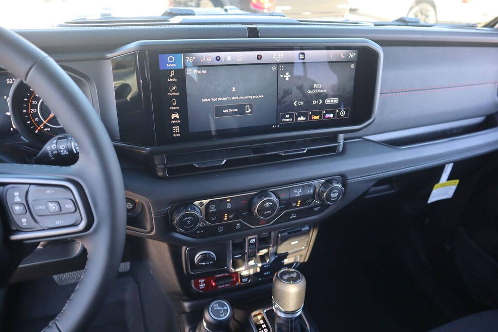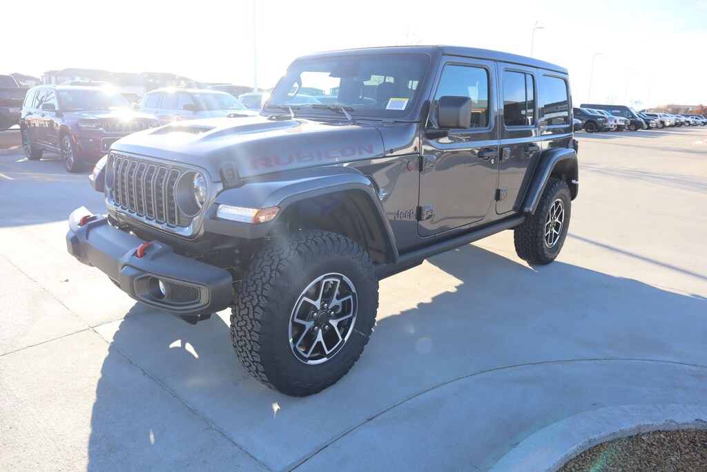 THIS VEHICLE COMES EQUIPPED WITH THE FOLLOWING OPTIONS AND FEATURES: Convenience Group (Heated Front Seats, Heated Steering Wheel, and Universal Garage Door Opener), Quick Order Package 24R Rubicon, Steel Performance Hood Package (Performance Hood), 12.3" Touchscreen Display, 4-Wheel Disc Brakes, 4.10 Rear Axle Ratio, 4G LTE Wi-Fi Hot Spot, 8 Speakers, ABS brakes, Air Conditioning, Alloy wheels, AM/FM radio: SiriusXM with 360L, Apple CarPlay, Apple CarPlay/Android Auto, Automatic temperature control, Aux Battery, Auxiliary Switches, Body Color Rubicon Highline Flare, Brake assist, Class II Receiver Hitch, Cloth Low-Back Bucket Seats, Compass, Connectivity - US/Canada, Delay-off headlights, Driver door bin, Driver vanity mirror, Dual front impact airbags, Dual front side impact airbags, Electronic Stability Control, Emergency communication system: Jeep Connect, For More Info, Call 800-643-2112, Front anti-roll bar, Front Bucket Seats, Front Center Armrest w/Storage, Front dual zone A/C, Front fog lights, Front License Plate Bracket, Front reading lights, Fully automatic headlights, Google Android Auto, Heated door mirrors, Illuminated entry, Integrated Center Stack Radio, Integrated roll-over protection, Low tire pressure warning, MOPAR All-Weather Floor Mats, Non-Lock Fuel Cap Without Discriminator, Occupant sensing airbag, Outside temperature display, Overhead airbag, Panic alarm, ParkView Rear Back-Up Camera, Passenger door bin, Passenger vanity mirror, Performance Suspension, Power door mirrors, Power steering, Power Top Quarter Window Storage Bag, Power windows, Radio data system, Radio: Uconnect 5 with 12.3" Display, Re Price includes: $1000 - 2026 National Retail Bonus Cash . Exp. 04/3