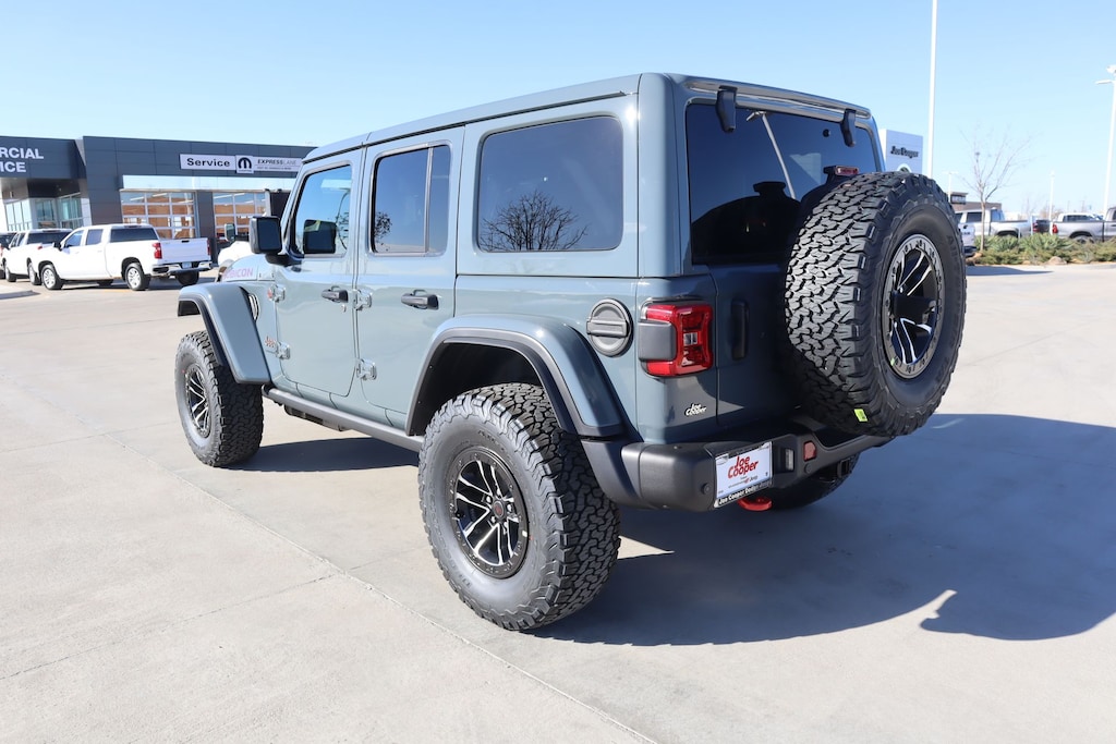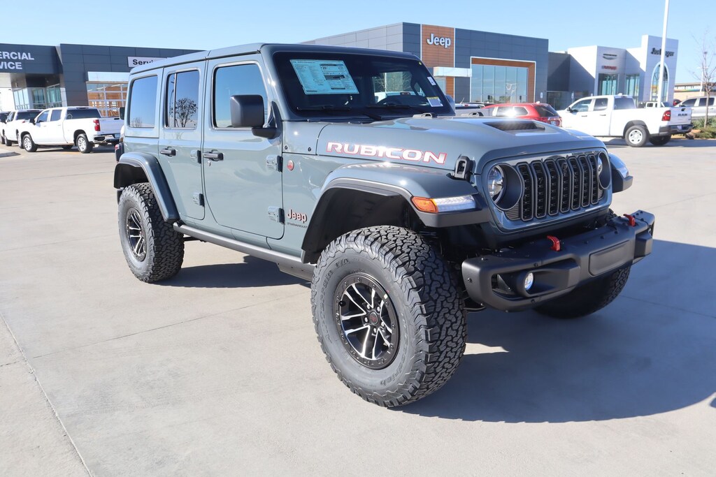 THIS VEHICLE COMES EQUIPPED WITH THE FOLLOWING OPTIONS AND FEATURES: Quick Order Package 24Y Rubicon X (12.3" Touchscreen Display, 4G LTE Wi-Fi Hot Spot, Acoustic Front Seat Area Carpet, Acoustic Laminated Front Door Glass, Alpine Premium Audio System, Apple CarPlay, Auto High Beam Headlamp Control, Auto-Dimming Rear-View Mirror, Blind Spot and Cross Path Detection, Body Color 3-Piece Hard Top, Body Color Rubicon Highline Flare, Connected Travel and Traffic Services, Connectivity - US/Canada, Freedom Panel Storage Bag, Google Android Auto, HD Radio, Heated Front Seats, Heated Steering Wheel, Integrated Off-Road Camera, Integrated Voice Command with Bluetooth, Leather Wrapped Park Brake Handle, Leather Wrapped Shift Knob, MOPAR Hardtop Headliner, Nappa Leather Seats, No Soft Top, ParkSense Rear Park Assist System, Power 4-Way Driver Lumbar Adjust, Power 4-Way Passenger Lumbar Adjust, Power Adjust 8-Way Driver Seat, Power Adjust 8-Way Front Passenger Seat, Premium Door Trim Panel, Radio: Uconnect 5 Navigation with 12.3" Display, Rear Window Defroster, Rear Window Wiper/Washer, SiriusXM with 360L, Steel Front Bumper, Steel Rear Bumper, and Universal Garage Door Opener), Steel Performance Hood Package (Performance Hood), Trailer Tow and Auxiliary Switch Group (Auxiliary Switches and Class II Receiver Hitch), Trailer Tow Prep Package, 35" Tire Suspension, 4-Wheel Disc Brakes, 8 Speakers, ABS brakes, Air Conditioning, Alloy wheels, AM/FM radio: SiriusXM with 360L, Apple CarPlay/Android Auto, Automatic temperature control, Aux Battery, Brake assist, Cloth Low-Back Bucket Seats, Compass, Delay-off headlights, Driver door bin, Driver vanity mirror, Dual front impact airbags, Dual front side impact airbags, Electronic Stability Control, Emergency communication system: Jeep Connect, For More Info, Call 800-643-2112, Front anti-roll bar, Front Bucket Seats, Front Center Armrest w/Storage, Front dual zone A/C, Front fog lights, Front reading lights, Fully automatic headlights, Heated door mirrors, Illuminated entry, Integrated Center Stack Radio, Integrated roll-over protection, Low tire pressure warning, MOPAR All-Weather Floor Mats, MOPAR Hinge-Gate Reinforcement, Non-Lock Fuel Cap Without Discriminator, Occupant sensing airbag, Outside temperature display, Overhead airbag, Panic alarm, ParkView Rear Back-Up Camera, Passenger door bin, Passenger vanity mirror, Performance Suspension, Power door mirrors, Power steering, Power windows, Radio data system, Rad