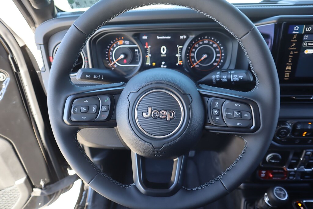 THIS VEHICLE COMES EQUIPPED WITH THE FOLLOWING OPTIONS AND FEATURES: Quick Order Package 24Y Rubicon X (12.3" Touchscreen Display, 4G LTE Wi-Fi Hot Spot, Acoustic Front Seat Area Carpet, Acoustic Laminated Front Door Glass, Alpine Premium Audio System, Apple CarPlay, Auto High Beam Headlamp Control, Auto-Dimming Rear-View Mirror, Blind Spot and Cross Path Detection, Body Color 3-Piece Hard Top, Body Color Rubicon Highline Flare, Connected Travel and Traffic Services, Connectivity - US/Canada, Freedom Panel Storage Bag, Google Android Auto, HD Radio, Heated Front Seats, Heated Steering Wheel, Integrated Off-Road Camera, Integrated Voice Command with Bluetooth, Leather Wrapped Park Brake Handle, Leather Wrapped Shift Knob, MOPAR Hardtop Headliner, Nappa Leather Seats, No Soft Top, ParkSense Rear Park Assist System, Power 4-Way Driver Lumbar Adjust, Power 4-Way Passenger Lumbar Adjust, Power Adjust 8-Way Driver Seat, Power Adjust 8-Way Front Passenger Seat, Premium Door Trim Panel, Radio: Uconnect 5 Navigation with 12.3" Display, Rear Window Defroster, Rear Window Wiper/Washer, SiriusXM with 360L, Steel Front Bumper, Steel Rear Bumper, and Universal Garage Do