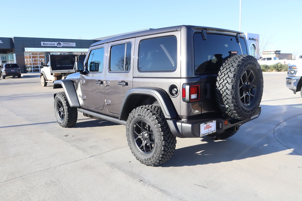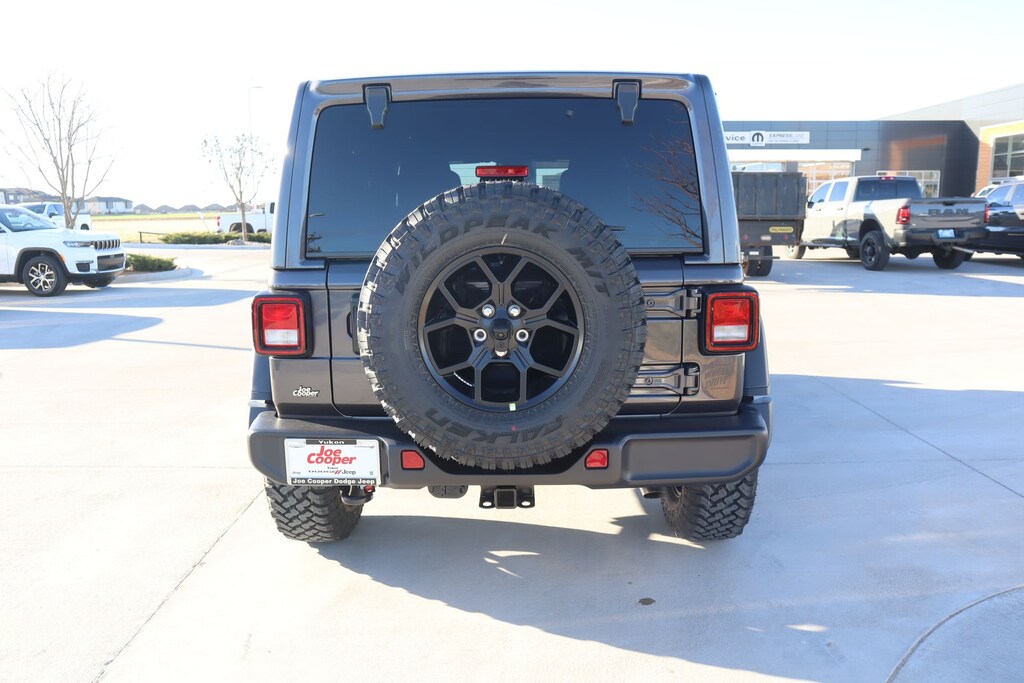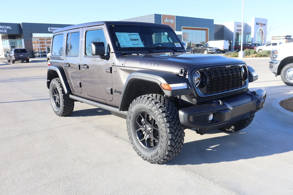 THIS VEHICLE COMES EQUIPPED WITH THE FOLLOWING OPTIONS AND FEATURES: Convenience Group (2-Door Passive Entry, Front Door Locks, Air Conditioning with Auto Temp Control, Air Filtering, Cluster 7.0" TFT Color Display, Emergency/Assistance Call, Heated Front Seats, Heated Steering Wheel, and Universal Garage Door Opener), Quick Order Package 24W Willys (4-Wheel Drive Swing Gate Decal, 4.10 Rear Axle Ratio, 7 and 4 Pin Wiring Harness, Advanced Brake Assist, Automatic Headlamps, Auxiliary Switches, Black Grille with Gloss Black Rings, Class II Receiver Hitch, Conventional Differential Front Axle, Corning Gorilla Glass, Dana M210 Wide HD Tube Front Axle, Dana M220 Wide Rear Axle, Daytime Running Lamps LED Accents, Deep Tint Sunscreen Windows, E-Locker Rear Axle, Enhanced Adaptive Cruise Control, Front LED Fog Lamps, Full Speed Forward Collision Warning Plus, Injection Molded Black Rear Bumper, LED Premium Reflector Headlamps, Mold in Color Bumper with Gloss Black, Molded in Color Rubicon Highline Flare, MOPAR All-Weather Floor Mats, Off-Road Plus Mode, Power Heated Mirrors, Premium Wrapped Steering Wheel, Security Alarm, Sun Visors with Illuminated Vanity Mirrors, Wheels: 17" x 7.5" Painted Black, Willy's Suspension, and Willys Hood Decal), Steel Power Dome Hood Package (Power Dome Dual Vented Hood), 8 Speakers, AM/FM radio: SiriusXM with 360L, Non-Lock Fuel Cap Without Discriminator, Radio data system, Radio: Uconnect 5 with 12.3" Display, SiriusXM with 360L, 12.3" Touchscreen Display, 4-Wheel Disc Brakes, 4G LTE Wi-Fi Hot Spot, ABS brakes, Air Conditioning, Apple CarPlay, Apple CarPlay/Android Auto, Aux Battery, Brake assist, Compass, Connectivity - US/Canada, Delay-off headlights, Driver door bin, Driver vanity mirror, Dual front impact airbags, Dual front side impact airbags, Electronic Stability Control, For More Info, Call 800-643-2112, Front anti-roll bar, Front Bucket Seats, Front Center Armrest w/Storage, Front fog lights, Front reading lights, Google Android Auto, Illuminated entry, Integrated Center Stack Radio, Integrated roll-over protection, Low tire pressure warning, Normal Duty Suspension, Occupant sensing airbag, Outside temperature display, Overhead airbag, Panic alarm, ParkView Rear Back-Up Camera, Passenger door bin, Passenger vanity mirror, Power steering, Power Top Quarter Wind Price includes: $1500 - 2026 Southwest BC Bonus Cash . Exp
