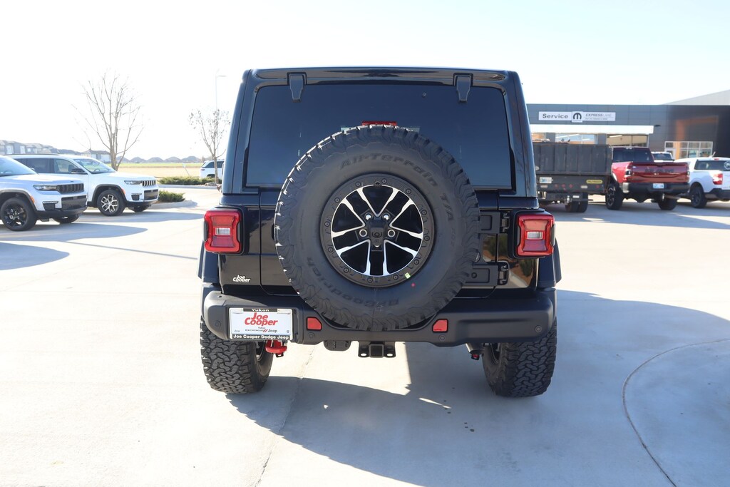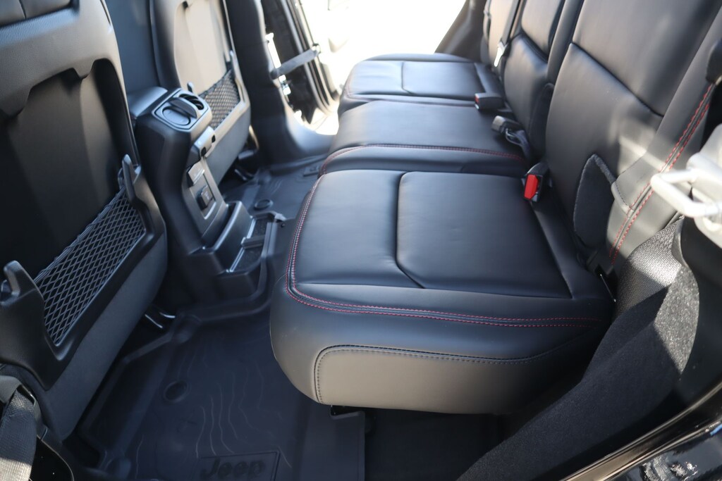 THIS VEHICLE COMES EQUIPPED WITH THE FOLLOWING OPTIONS AND FEATURES: Quick Order Package 24Y Rubicon X (12.3" Touchscreen Display, 4G LTE Wi-Fi Hot Spot, Acoustic Front Seat Area Carpet, Acoustic Laminated Front Door Glass, Alpine Premium Audio System, Apple CarPlay, Auto High Beam Headlamp Control, Auto-Dimming Rear-View Mirror, Blind Spot and Cross Path Detection, Body Color 3-Piece Hard Top, Body Color Rubicon Highline Flare, Connected Travel and Traffic Services, Connectivity - US/Canada, Freedom Panel Storage Bag, Google Android Auto, HD Radio, Heated Front Seats, Heated Steering Wheel, Integrated Off-Road Camera, Integrated Voice Command with Bluetooth, Leather Wrapped Park Brake Handle, Leather Wrapped Shift Knob, MOPAR Hardtop Headliner, Nappa Leather Seats, No Soft Top, ParkSense Rear Park Assist System, Power 4-Way Driver Lumbar Adjust, Power 4-Way Passenger Lumbar Adjust, Power Adjust 8-Way Driver Seat, Power Adjust 8-Way Front Passenger Seat, Premium Door Trim Panel, Radio: Uconnect 5 Navigation with 12.3" Display, Rear Window Defroster, Rear Window Wiper/Washer, SiriusXM with 360L, Steel Front Bumper, Steel Rear Bumper, and Universal Garage Door Opener), Steel Performance Hood Package (Performance Hood), Trailer Tow and Auxiliary Switch Group (Auxiliary Switches and Class II Receiver Hitch), Trailer Tow Prep Package, 35" Tire Suspension, Heated door mirrors, Non-Lock Fuel Cap Without Discriminator, Power door mirrors, 4-Wheel Disc Brakes, 8 Speakers, ABS brakes, Air Conditioning, Alloy wheels, AM/FM radio: SiriusXM with 360L, Apple CarPlay/Android Auto, Automatic temperature control, Aux Battery, Brake assist, Cloth Low-Back Bucket Seats, Compass, Delay-off headlights, Driver door bin, Driver vanity mirror, Dual front impact airbags, Dual front side impact airbags, Electronic Stability Control, Emergency communication system: Jeep Connect, For More Info, Call 800-643-2112, Front anti-roll bar, Front Bucket Seats, Front Center Armrest w/Storage, Front dual zone A/C, Front fog lights, Front reading lights, Fully automatic headlights, Illuminated entry, Integrated Center Stack Radio, Integrated roll-over protection, Low tire pressure warning, MOPAR All-Weather Floor Mats, MOPAR Hinge-Gate Reinforcement, Occupant sensing airbag, Outside temperature display, Overhead airbag, Panic alarm, ParkView Rear Back-Up Camera, Passenger door bin, Passenger vanity mirr