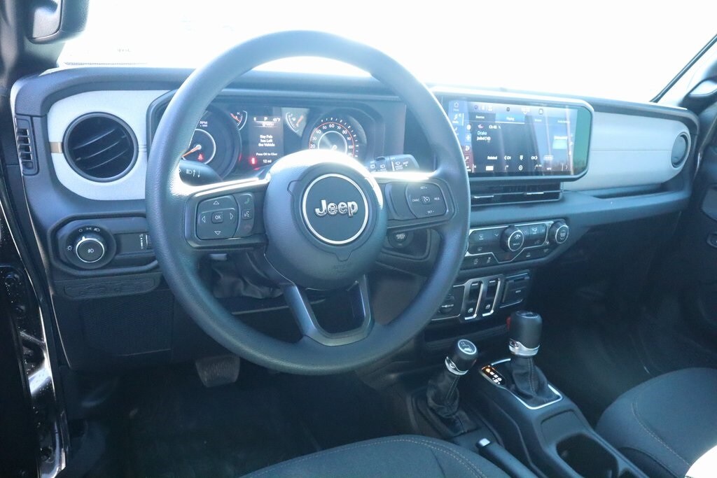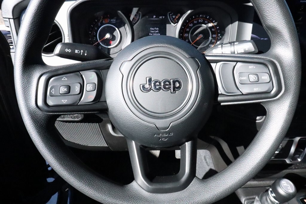 2026 Jeep Wrangler Quick Order Package 22B Sport, 12.3" Touchscreen Display, 3.45 Overall Top Gear Ratio, 4-Wheel Disc Brakes, 4G LTE Wi-Fi Hot Spot, 8 Speakers, ABS brakes, Air Conditioning, AM/FM radio: SiriusXM with 360L, Apple CarPlay, Apple CarPlay/Android Auto, Aux Battery, Black 3-Piece Hard Top, Brake assist, Cloth Low-Back Bucket Seats, Compass, Connectivity - US/Canada, Delay-off headlights, Driver door bin, Driver vanity mirror, Dual front impact airbags, Dual front side impact airbags, Electronic Stability Control, For More Info, Call 800-643-2112, Freedom Panel Storage Bag, Front anti-roll bar, Front Bucket Seats, Front Center Armrest w/Storage, Front fog lights, Front reading lights, Google Android Auto, Illuminated entry, Integrated Center Stack Radio, Integrated roll-over protection, Low tire pressure warning, MOPAR All-Weather Floor Mats, Non-Lock Fuel Cap Without Discriminator, Normal Duty Suspension, Occupant sensing airbag, Outside temperature display, Overhead airbag, Panic alarm, ParkView Rear Back-Up Camera, Passenger door bin, Passenger vanity mirror, Power steering, Power windows, Radio data system, Radio: Uconnect 5 with 12.3" Display, Rear anti-roll bar, Rear reading lights, Rear Window Defroster, Rear Window Wiper/Washer, Remote keyless entry, SiriusXM Radio Service, SiriusXM with 360L, Speed control, Steering wheel mounted audio controls, Stop-Start Dual Battery System, Tachometer, Telescoping steering wheel, Tilt steering wheel, Traction control, Trip computer, Variably intermittent wipers, and Wheels: 17" x 7.5" Black Steel Styled.