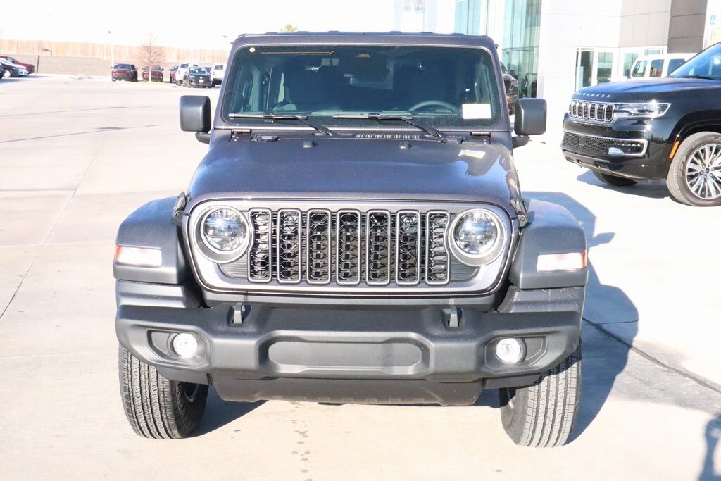 2026 Jeep Wrangler Convenience Group (2-Door Passive Entry, Front Door Locks, Air Conditioning with Auto Temp Control, Air Filtering, Cluster 7.0" TFT Color Display, Emergency/Assistance Call, Heated Front Seats, Heated Steering Wheel, and Universal Garage Door Opener), LED Headlamp and Fog Lamp Group (Front LED Fog Lamps and LED Premium Reflector Headlamps), Quick Order Package 22S Sport S (Advanced Brake Assist, Automatic Headlamps, Corning Gorilla Glass, Deep Tint Sunscreen Windows, Enhanced Adaptive Cruise Control, Full Speed Forward Collision Warning Plus, Power Heated Mirrors, Premium Wrapped Steering Wheel, Security Alarm, Sun Visors with Illuminated Vanity Mirrors, and Wheels: 17" x 7.5" Gray), 12.3" Touchscreen Display, 3.45 Overall Top Gear Ratio, 4-Wheel Disc Brakes, 4G LTE Wi-Fi Hot Spot, 8 Speakers, ABS brakes, Air Conditioning, AM/FM radio: SiriusXM with 360L, Apple CarPlay, Apple CarPlay/Android Auto, Aux Battery, Black 3-Piece Hard Top, Brake assist, Cloth Low-Back Bucket Seats, Compass, Connectivity - US/Canada, Delay-off headlights, Driver door bin, Driver vanity mirror, Dual front impact airbags, Dual front side impact airbags, Electronic Stability Control, For More Info, Call 800-643-2112, Freedom Panel Storage Bag, Front anti-roll bar, Front Bucket Seats, Front Center Armrest w/Storage, Front fog lights, Front reading lights, Google Android Auto, Illuminated entry, Integrated Center Stack Radio, Integrated roll-over protection, Low tire pressure warning, MOPAR All-Weather Floor Mats, Non-Lock Fuel Cap Without Discriminator, Normal Duty Suspension, Occupant sensing airbag, Outside temperature display, Overhead airbag, Panic alarm, ParkView Rear Back-Up Camera, Passenger door bin, Passenger vanity mirror, Power steering, Power windows, Radio data system, Radio: Uconnect 5 with 12.3" Display, Rear anti-roll bar, Rear reading lights, Rear Window Defroster, Rear Window Wiper/Washer, Remote keyless entry, SiriusXM Radio Service, SiriusXM with 360L, Speed control, Steering wheel mounted audio controls, Stop-Start Dual Battery System, Tachometer, Telescoping steering wheel, Tilt steering wheel, Traction control, Trip computer, Variably intermittent wipers, and Wheels: 17" x 7.5" Black Steel Styled.