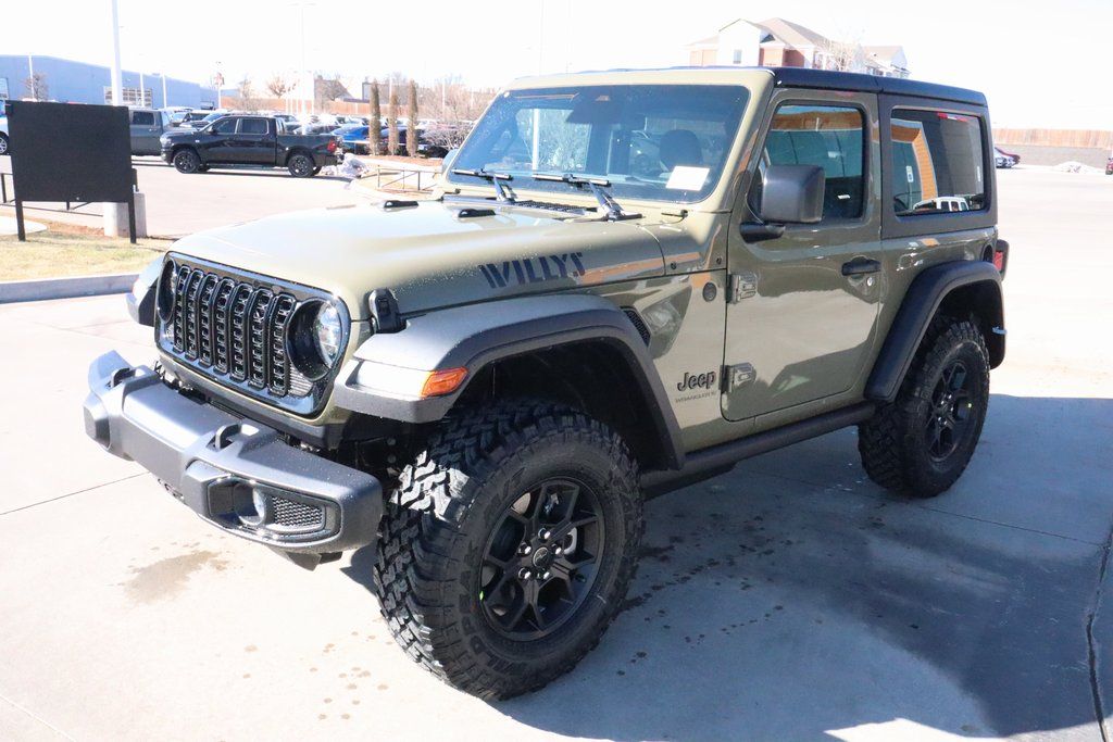 2026 Jeep Wrangler Convenience Group (2-Door Passive Entry, Front Door Locks, Air Conditioning with Auto Temp Control, Air Filtering, Cluster 7.0" TFT Color Display, Emergency/Assistance Call, Heated Front Seats, Heated Steering Wheel, and Universal Garage Door Opener), Quick Order Package 22W Willys (4-Wheel Drive Swing Gate Decal, 7 and 4 Pin Wiring Harness, Advanced Brake Assist, Automatic Headlamps, Auxiliary Switches, Black Grille with Gloss Black Rings, Class II Receiver Hitch, Conventional Differential Front Axle, Corning Gorilla Glass, Dana M210 Wide HD Tube Front Axle, Dana M220 Wide Rear Axle, Daytime Running Lamps LED Accents, Deep Tint Sunscreen Windows, E-Locker Rear Axle, Enhanced Adaptive Cruise Control, Front LED Fog Lamps, Full Speed Forward Collision Warning Plus, Injection Molded Black Rear Bumper, LED Premium Reflector Headlamps, Mold in Color Bumper with Gloss Black, Molded in Color Rubicon Highline Flare, MOPAR All-Weather Floor Mats, Off-Road Plus Mode, Power Heated Mirrors, Premium Wrapped Steering Wheel, Security Alarm, Sun Visors with Illuminated Vanity Mirrors, Wheels: 17" x 7.5" Painted Black, and Willys Hood Decal), Steel Power Dome Hood Package (Power Dome Dual Vented Hood), 12.3" Touchscreen Display, 4-Wheel Disc Brakes, 4G LTE Wi-Fi Hot Spot, 8 Speakers, ABS brakes, Air Conditioning, AM/FM radio: SiriusXM with 360L, Apple CarPlay, Apple CarPlay/Android Auto, Aux Battery, Black 3-Piece Hard Top, Brake assist, Cloth Low-Back Bucket Seats, Compass, Connectivity - US/Canada, Delay-off headlights, Driver door bin, Driver vanity mirror, Dual front impact airbags, Dual front side impact airbags, Electronic Stability Control, For More Info, Call 800-643-2112, Freedom Panel Storage Bag, Front anti-roll bar, Front Bucket Seats, Front Center Armrest w/Storage, Front fog lights, Front reading lights, Google Android Auto, Illuminated entry, Integrated Center Stack Radio, Integrated roll-over protection, Low tire pressure warning, Non-Lock Fuel Cap Without Discriminator, Normal Duty Suspension, Occupant sensing airbag, Outside temperature display, Overhead airbag, Panic alarm, ParkView Rear Back-Up Camera, Passenger door bin, Passenger vanity mirror, Power steering, Power windows, Radio data system, Radio: Uconnect 5 with 12.3" Display, Rear anti-roll bar, Rear reading lights, Rear Window Defroster, Rear Window Wiper/Washer, Remote keyless entry, SiriusXM Radio Service, SiriusXM with 360L, Speed control, Steering wheel mounted audio controls, Stop-Start Dual Battery System, Tachometer, Telescoping steering wheel, Tilt steering wheel, Traction control, Trip computer, Variably intermittent wipers, and Wheels: 17" x 7.5" Black Steel Styled.
