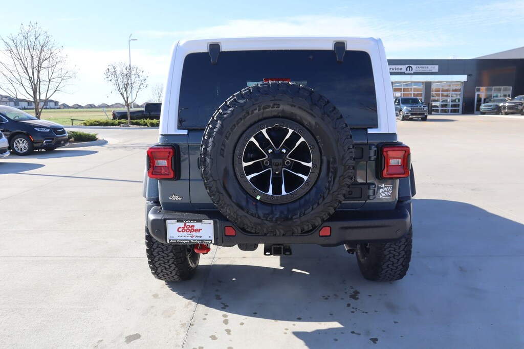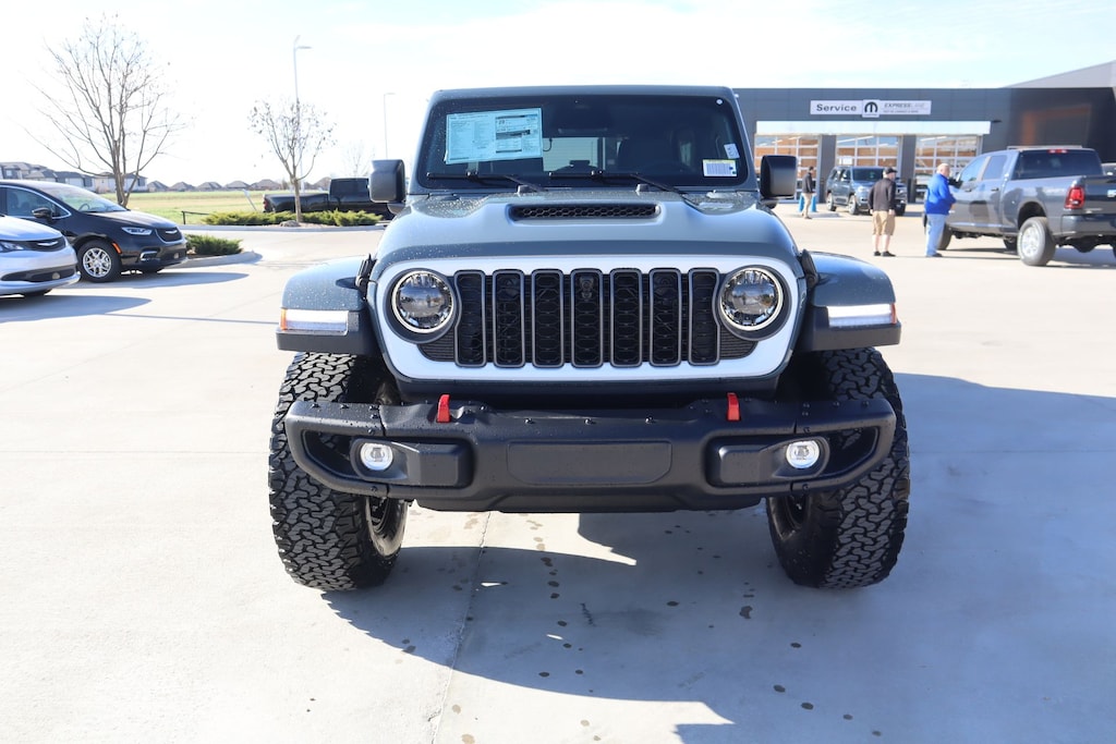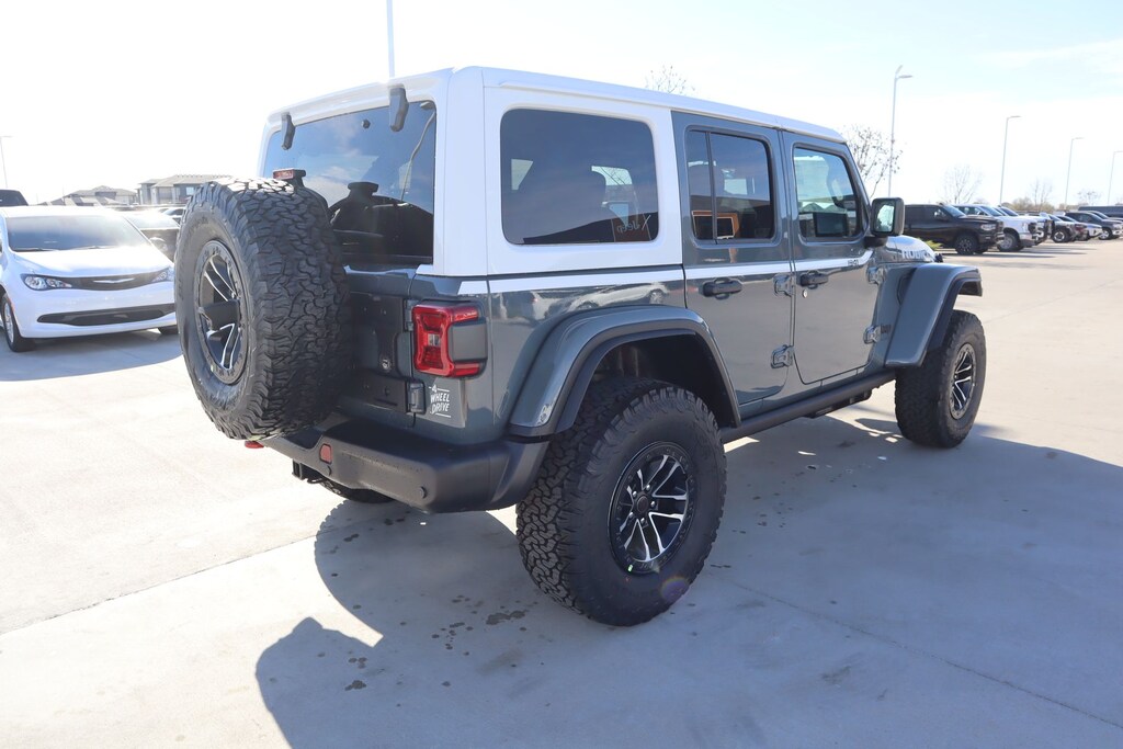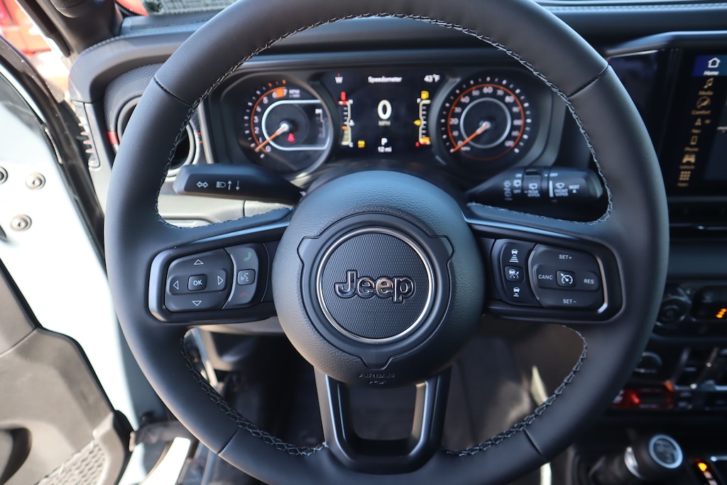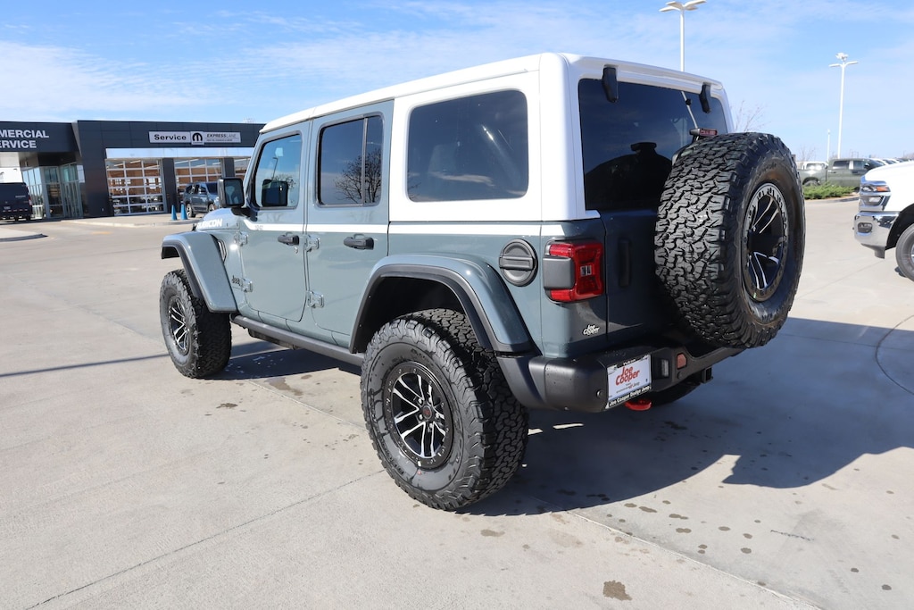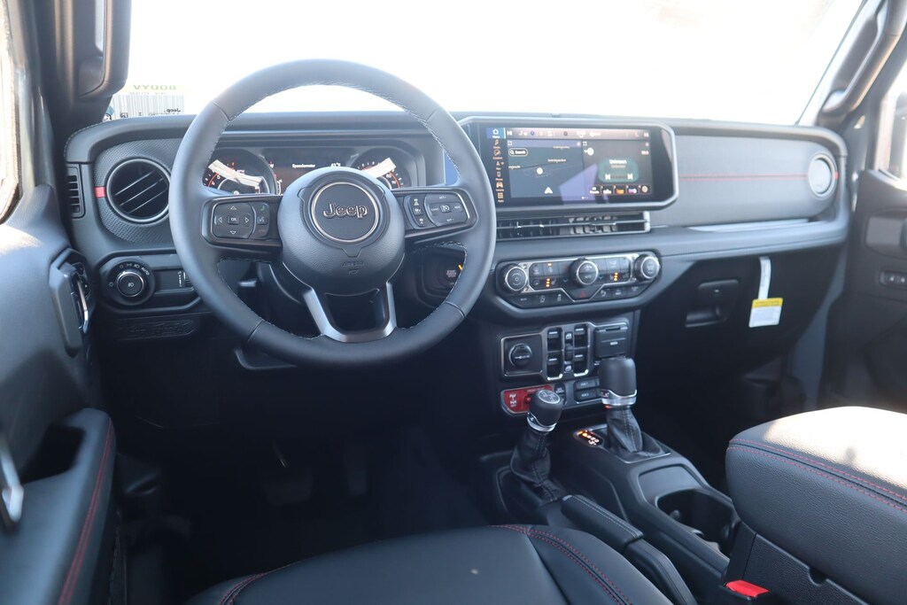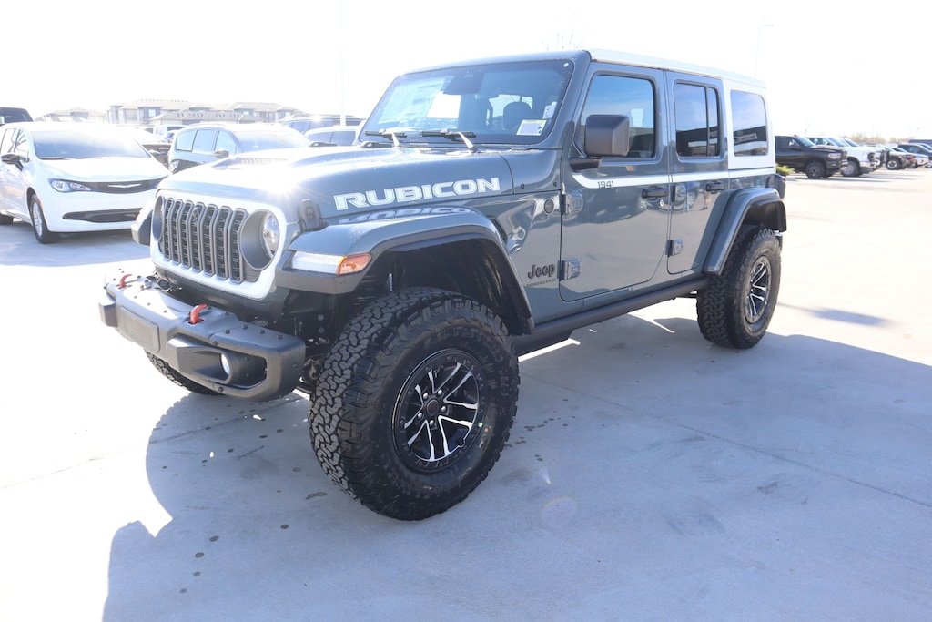 THIS VEHICLE COMES EQUIPPED WITH THE FOLLOWING OPTIONS AND FEATURES: Quick Order Package 24Y Rubicon X (12.3" Touchscreen Display, 4G LTE Wi-Fi Hot Spot, Acoustic Front Seat Area Carpet, Acoustic Laminated Front Door Glass, Alpine Premium Audio System, Apple CarPlay, Auto High Beam Headlamp Control, Auto-Dimming Rear-View Mirror, Blind Spot and Cross Path Detection, Body Color 3-Piece Hard Top, Body Color Rubicon Highline Flare, Connected Travel and Traffic Services, Connectivity - US/Canada, Freedom Panel Storage Bag, Google Android Auto, HD Radio, Heated Front Seats, Heated Steering Wheel, Integrated Off-Road Camera, Integrated Voice Command with Bluetooth, Leather Wrapped Park Brake Handle, Leather Wrapped Shift Knob, MOPAR Hardtop Headliner, Nappa Leather Seats, No Soft Top, ParkSense Rear Park Assist System, Power 4-Way Driver Lumbar Adjust, Power 4-Way Passenger Lumbar Adjust, Power Adjust 8-Way Driver Seat, Power Adjust 8-Way Front Passenger Seat, Premium Door Trim Panel, Radio: Uconnect 5 Navigation with 12.3" Display, Rear Window Defroster, Rear Window Wiper/Washer, SiriusXM with 360L, Steel Front Bumper, Steel Rear Bumper, and Universal Garage Door Opener), Steel Performance Hood Package (Performance Hood), Trailer Tow and Auxiliary Switch Group (Auxiliary Switches and Class II Receiver Hitch), Trailer Tow Prep Package, Whitecap Package (1941 Side Decals, Gray/Black Trail Rated Badge, Matte Black Jeep Badge, White 3-Piece Hard Top, and White Grille with Neutral Gray Metallic Rings), 35" Tire Suspension, 4-Wheel Disc Brakes, 8 Speakers, ABS brakes, Air Conditioning, Alloy wheels, AM/FM radio: SiriusXM with 360L, Apple CarPlay/Android Auto, Automatic temperature control, Aux Battery, Brake assist, Cloth Low-Back Bucket Seats, Compass, Delay-off headlights, Driver door bin, Driver vanity mirror, Dual front impact airbags, Dual front side impact airbags, Electronic Stability Control, Emergency communication system: Jeep Connect, For More Info, Call 800-643-2112, Front anti-roll bar, Front Bucket Seats, Front Center Armrest w/Storage, Front dual zone A/C, Front fog lights, Front reading lights, Fully automatic headlights, Heated door mirrors, Illuminated entry, Integrated Center Stack Radio, Integrated roll-over protection, Low tire pressure warning, MOPAR All-Weather Floor Mats, M Price includes: $1000 - 2026 National Retail Bonus Cash . Exp. 04/3