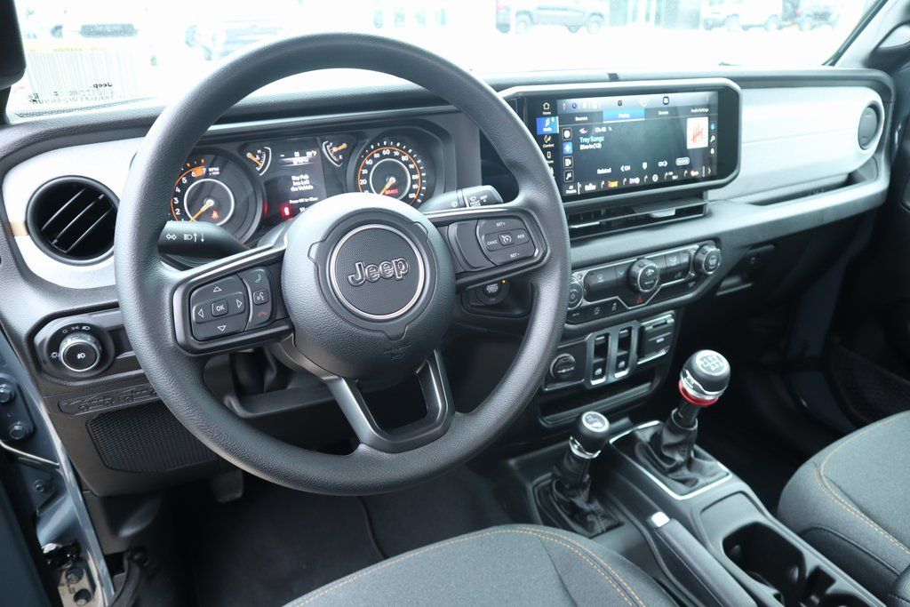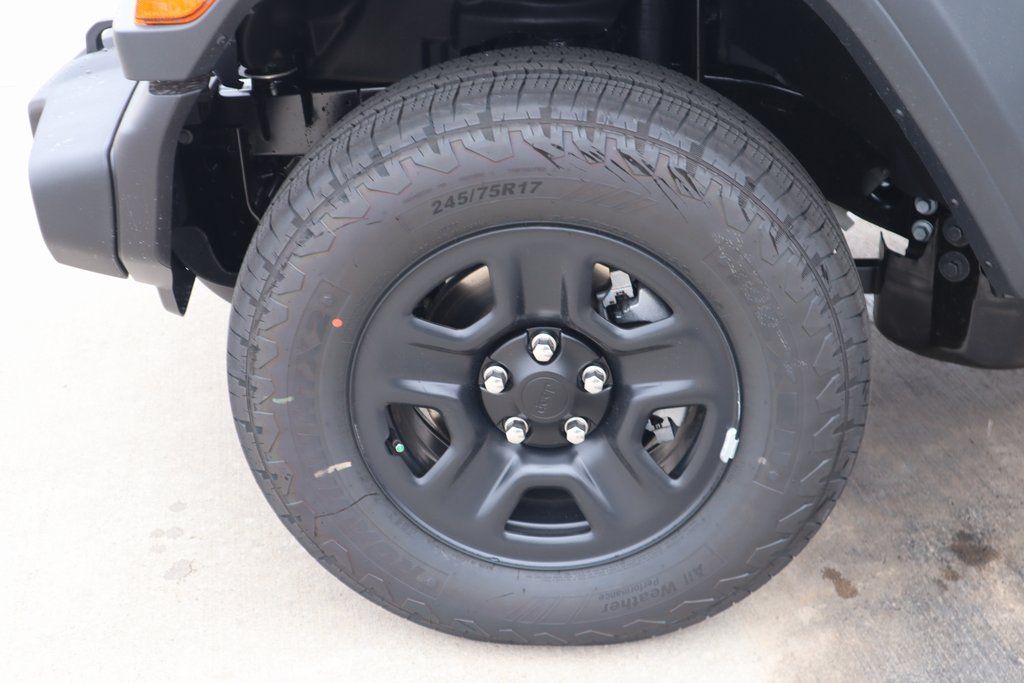 2026 Jeep Wrangler Quick Order Package 23B Sport, 12.3" Touchscreen Display, 3.45 Overall Top Gear Ratio, 4-Wheel Disc Brakes, 4G LTE Wi-Fi Hot Spot, 8 Speakers, ABS brakes, Air Conditioning, AM/FM radio: SiriusXM with 360L, Apple CarPlay, Apple CarPlay/Android Auto, Aux Battery, Brake assist, Cloth Low-Back Bucket Seats, Compass, Connectivity - US/Canada, Delay-off headlights, Driver door bin, Driver vanity mirror, Dual front impact airbags, Dual front side impact airbags, Electronic Stability Control, For More Info, Call 800-643-2112, Front anti-roll bar, Front Bucket Seats, Front Center Armrest w/Storage, Front fog lights, Front reading lights, Google Android Auto, Illuminated entry, Integrated Center Stack Radio, Integrated roll-over protection, Low tire pressure warning, Non-Lock Fuel Cap Without Discriminator, Normal Duty Suspension, Occupant sensing airbag, Outside temperature display, Overhead airbag, Panic alarm, ParkView Rear Back-Up Camera, Passenger door bin, Passenger vanity mirror, Power steering, Power windows, Radio data system, Radio: Uconnect 5 with 12.3" Display, Rear anti-roll bar, Rear reading lights, Remote keyless entry, SiriusXM Radio Service, SiriusXM with 360L, Speed control, Steering wheel mounted audio controls, Stop-Start Dual Battery System, Tachometer, Telescoping steering wheel, Tilt steering wheel, Traction control, Trip computer, Variably intermittent wipers, and Wheels: 17" x 7.5" Black Steel Styled.