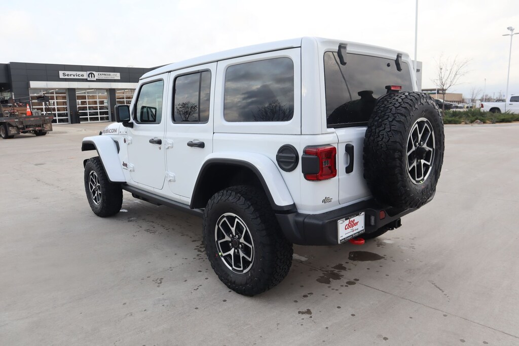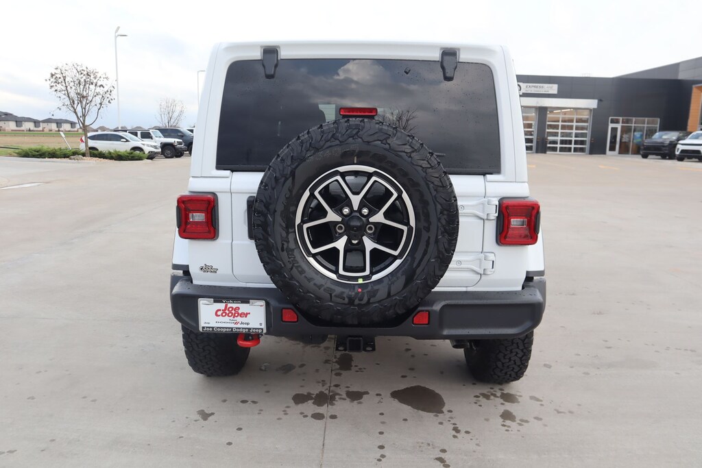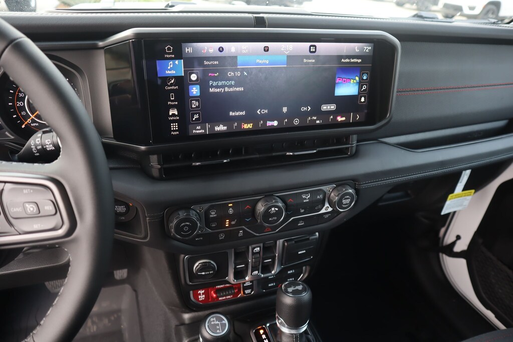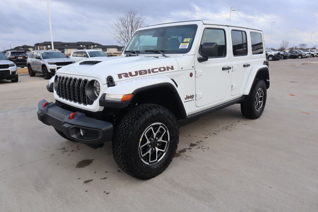 THIS VEHICLE COMES EQUIPPED WITH THE FOLLOWING OPTIONS AND FEATURES: Convenience Group (Heated Front Seats, Heated Steering Wheel, and Universal Garage Door Opener), Quick Order Package 24R Rubicon, Steel Performance Hood Package (Performance Hood), 12.3" Touchscreen Display, 4-Wheel Disc Brakes, 4G LTE Wi-Fi Hot Spot, 8 Speakers, ABS brakes, Air Conditioning, AM/FM radio: SiriusXM with 360L, Apple CarPlay, Apple CarPlay/Android Auto, Automatic temperature control, Auxiliary Switches, Body Color Rubicon Highline Flare, Brake assist, Cloth Low-Back Bucket Seats, Compass, Connectivity - US/Canada, Delay-off headlights, Driver door bin, Driver vanity mirror, Dual front impact airbags, Dual front side impact airbags, Electronic Stability Control, Emergency communication system: Jeep Connect, For More Info, Call 800-643-2112, Front anti-roll bar, Front Bucket Seats, Front Center Armrest w/Storage, Front dual zone A/C, Front fog lights, Front License Plate Bracket, Front reading lights, Fully automatic headlights, Google Android Auto, Heated door mirrors, Illuminated entry, Integrated Center Stack Radio, Integrated roll-over protection, Low tire pressure warning, MOPAR All-Weather Floor Mats, Non-Lock Fuel Cap Without Discriminator, Occupant sensing airbag, Outside temperature display, Overhead airbag, ParkView Rear Back-Up Camera, Passenger vanity mirror, Performance Suspension, Power door mirrors, Power steering, Power Top Quarter Window Storage Bag, Power windows, Radio data system, Radio: Uconnect 5 with 12.3" Display, Rear anti-roll bar, Rear reading lights, Rear Window Defroster, Rear Window Wiper/Washer, Remote keyless entry, Removable Rear Quarter Windows, SiriusXM Radio Service, SiriusXM with 360L, Sky One-Touch Power Top, Split folding rear seat, Steering wheel mounted audio controls, Tachometer, Telescoping steering wheel, Tilt steering wheel, Traction control, Trip comp Price includes: $1000 - 2026 National Retail Bonus Cash . Exp. 04/3