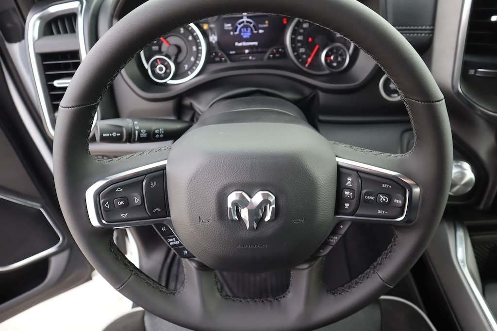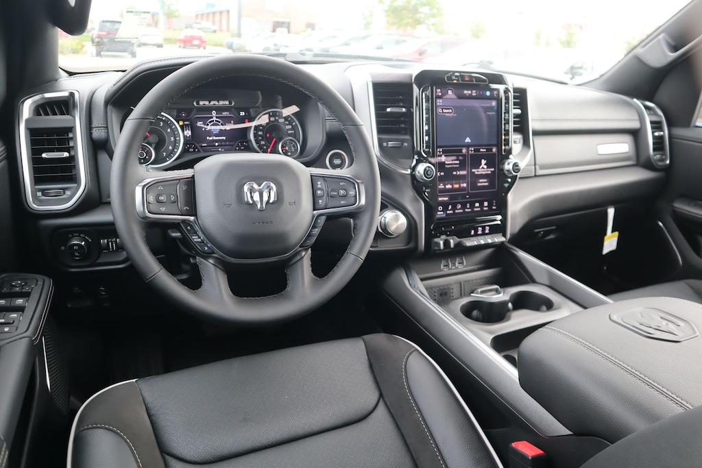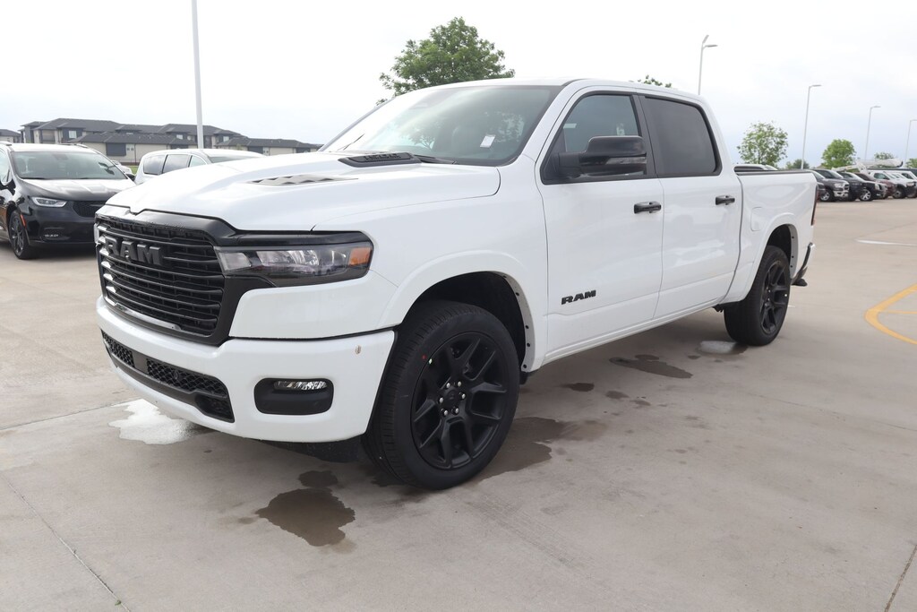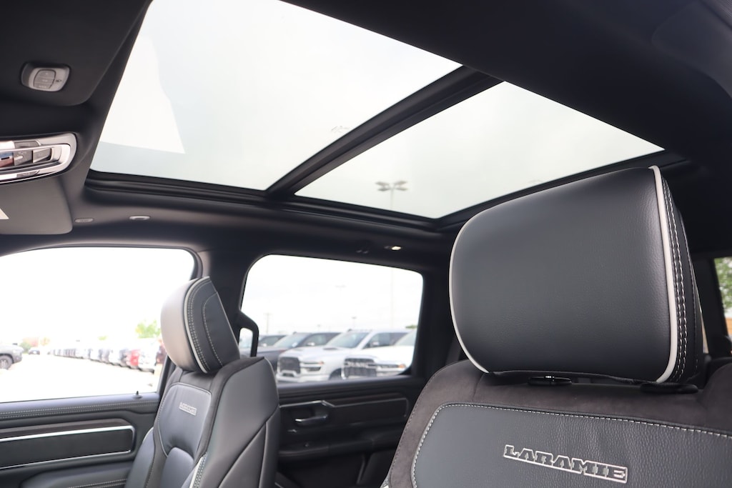 THIS VEHICLE COMES EQUIPPED WITH THE FOLLOWING OPTIONS AND FEATURES: Bed Utility Group (Exterior 115V AC Outlet, MOPAR 4 Adjustable Cargo Tie-Down Hooks, and MOPAR Spray in Bedliner), Laramie Level 1 Equipment Group (Rain Sensitive Windshield Wipers and Remote Tailgate Release), Night Edition (Accent Color Door Handles, Accent Color Premium Power Mirrors, Accent Color Tailgate Handle, Anti-Spin Differential Rear Axle, Auto Power-Folding Mirrors, Auto-Dimming Exterior Driver Mirror, Black Exterior Truck Badging, Black Headlamp Bezels, Black Interior Accents, Black Painted Exterior Mirrors Caps, Black Tail Lamp Bezels, Body Color Front Bumper, Body Color Rear Bumper with Step Pads, Convex Wide-Angle Exterior Mirror Insert, Dual Exhaust with Black Tips, Exterior Mirrors Approach Lamps, Exterior Mirrors Courtesy Lamps, Exterior Mirrors with Heating Element, Exterior Mirrors with Memory, Exterior Mirrors with Supplemental Signals, Grille Surround 3 Black Texture 2 Black, Pirelli Brand Tires, Proximity Approach/Departure Lamps, RAM Grille Badge - Black, Sport Performance Hood, and Wheels: 22" x 9" Forged Aluminum), Quick Order Package 21H Laramie, GPS Navigation, Navigation System, 10 Speakers, 3.55 Rear Axle Ratio, 4-Wheel Disc Brakes, 4G LTE Wi-Fi Hot Spot, ABS brakes, Active Noise Control System, Adjustable pedals, Air Conditioning, Alloy wheels, AM/FM radio: SiriusXM with 360L, Apple CarPlay/Android Auto, Audio memory, Auto High-beam Headlights, Auto-dimming door mirrors, Auto-dimming Rear-View mirror, Automatic temperature control, Brake assist, Bumpers: chrome, Chrome Exterior Mirrors, Compass, Connected Travel and Traffic Services, Connectivity - US/Canada, Delay-off headlights, Dome Dual LED Reading Lamp, Driver door bin, Driver vanity mirror, Dual front impact airbags, Dual front side impact airbags, Dual-Pane Panoramic Sunroof, Electronic Stability Control, Front anti-roll bar, Front Bucket Seats, Front Center Armrest w/Storage, Front dual zone A/C, Front fog lights, Front License Plate Bracket, Front reading lights, Front wheel independent suspension, Fully automatic headlights, Garage door transmitter, Heated door mirrors, Heated front seats, Heated rear seats, Heated steering wheel, Illuminated entry, Integrated Center Stack Radio, Integrated Voice Command with Bluetooth, Leather steering wheel, Leather Trimmed Bucket Seats, LED Dome/Reading Lamp, Low tire pressure warning, Memory seat, MOPAR Front and Rear Rubber Floor Mats, Occupant sensing airbag, Off-Road Information Pages, Outside temperature display, Overhead airb Price includes: $3500 - 2026 National Retail Bonus Cash . Exp. 04/30/2026 $750 - 2026 Southwest BC Retail Bonus Cash . Exp