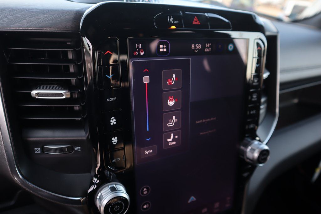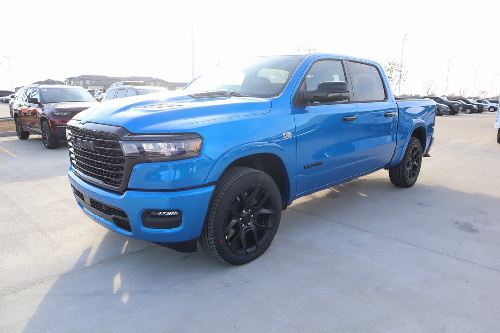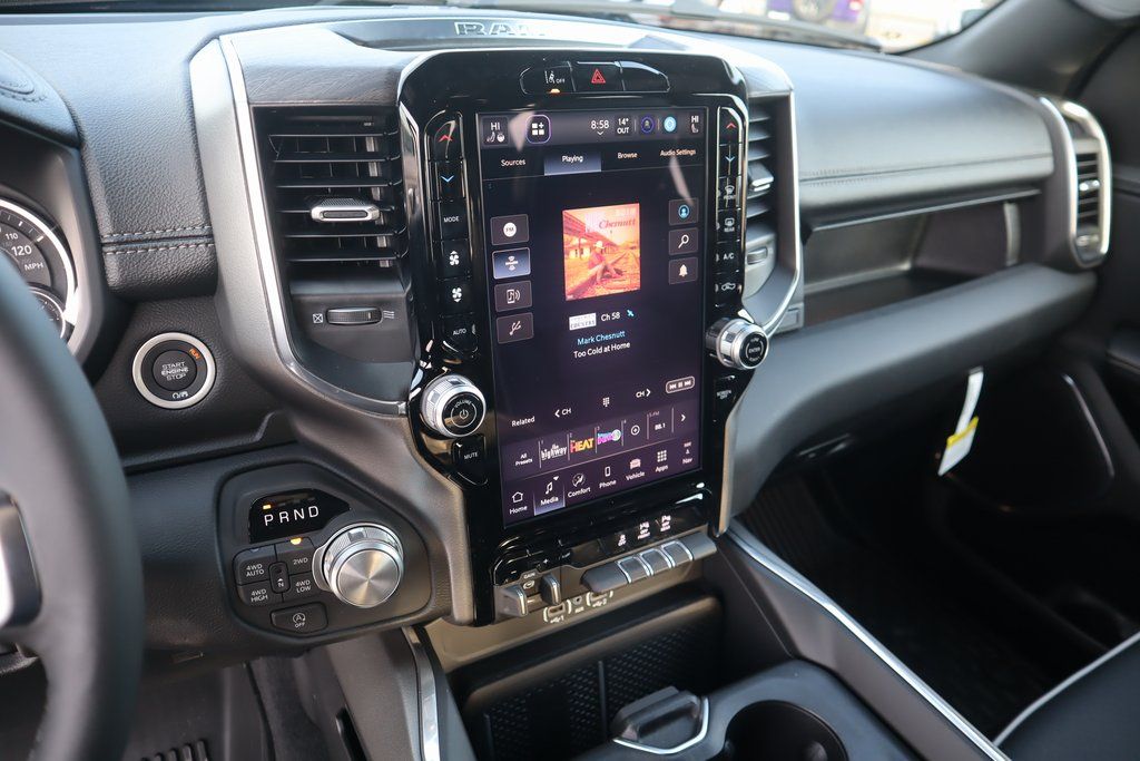 THIS VEHICLE COMES EQUIPPED WITH THE FOLLOWING OPTIONS AND FEATURES: Bed Utility Group (Exterior 115V AC Outlet, MOPAR 4 Adjustable Cargo Tie-Down Hooks, and MOPAR Spray in Bedliner), Laramie Level 1 Equipment Group (Rain Sensitive Windshield Wipers and Remote Tailgate Release), Night Edition (Accent Color Door Handles, Accent Color Premium Power Mirrors, Accent Color Tailgate Handle, Anti-Spin Differential Rear Axle, Auto Power-Folding Mirrors, Auto-Dimming Exterior Driver Mirror, Black Exterior Truck Badging, Black Headlamp Bezels, Black Interior Accents, Black Painted Exterior Mirrors Caps, Black Tail Lamp Bezels, Body Color Front Bumper, Body Color Rear Bumper with Step Pads, Convex Wide-Angle Exterior Mirror Insert, Dual Exhaust with Black Tips, Exterior Mirrors Approach Lamps, Exterior Mirrors Courtesy Lamps, Exterior Mirrors with Heating Element, Exterior Mirrors with Memory, Exterior Mirrors with Supplemental Signals, Grille Surround 3 Black Texture 2 Black, Pirelli Brand Tires, Proximity Approach/Departure Lamps, RAM Grille Badge - Black, Sport Performance Hood, and Wheels: 22" x 9" Forged Aluminum), Quick Order Package 27H Laramie, Dome Dual LED Reading Lamp, Dual-Pane Panoramic Sunroof, GPS Navigation, LED Dome/Reading Lamp, Navigation System, 10 Speakers, 4-Wheel Disc Brakes, 4G LTE Wi-Fi Hot Spot, ABS brakes, Active Noise Control System, Adjustable pedals, Air Conditioning, Alloy wheels, AM/FM radio: SiriusXM with 360L, Apple CarPlay/Android Auto, Audio memory, Auto High-beam Headlights, Auto-dimming door mirrors, Auto-dimming Rear-View mirror, Automatic temperature control, Brake assist, Bumpers: chrome, Chrome Exterior Mirrors, Compass, Connected Travel and Traffic Services, Connectivity - US/Canada, Delay-off headlights, Driver door bin, Driver vanity mirror, Dual front impact airbags, Dual front side impact airbags, Electronic Stability Control, Front anti-roll bar, Front Bucket Seats, Front Center Armrest w/Storage, Front dual zone A/C, Front fog lights, Front License Plate Bracket, Front reading lights, Front wheel independent suspension, Fully automatic headlights, Garage door transmitter, Heated door mirrors, Heated front seats, Heated rear seats, Heated steering wheel, Illuminated entry, Integrated Center Stack Radio, Integrated Voice Command with Bluetooth, Leather steering wheel, Leather Trimmed Bucket Seats, Low tire pressure warning, Memory seat, MOPAR Front and Rear Rubber Price includes: $3500 - 2026 National Retail Bonus Cash . Exp. 04/30/2026 $750 - 2026 Southwest BC Retail Bonus Cash . Exp. 04/3