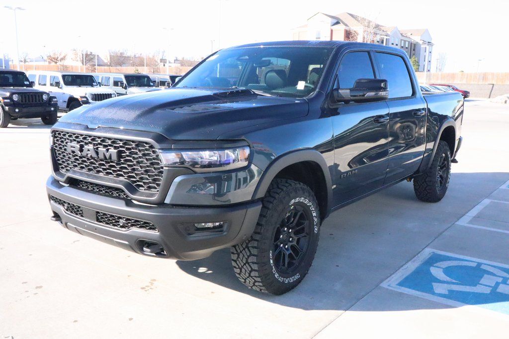 2026 Ram 1500 Bed Utility Group (Exterior 115V AC Outlet, MOPAR 4 Adjustable Cargo Tie-Down Hooks, and MOPAR Spray in Bedliner), Quick Order Package 21W Rebel, Rebel Level 2 Equipment Group (115V Auxiliary Rear Power Outlet, 14.4" Touchscreen Display, 2-Door Passive Entry, Front Door Locks, 4G LTE Wi-Fi Hot Spot, Accent Color Door Handles, Accent Color Premium Power Mirrors, Accent Color Tailgate Handle, Apple CarPlay, Auto Power-Folding Mirrors, Auto-Dimming Exterior Driver Mirror, Black Painted Exterior Mirrors Caps, Connected Travel and Traffic Services, Connectivity - US/Canada, Convex Wide-Angle Exterior Mirror Insert, Disassociated Touchscreen Display, Driver Seat Memory, Dual Wireless Charging Pad, Exterior Mirrors Approach Lamps, Exterior Mirrors Courtesy Lamps, Exterior Mirrors with Heating Element, Exterior Mirrors with Memory, Exterior Mirrors with Supplemental Signals, Front Passenger Interactive Display, Global Telematics Box Module, Google Android Auto, GPS Antenna Input, GPS Navigation, Harman/Kardon 19 Speaker Premium Sound, HD Radio, Heated Second Row Seats, Integrated Center Stack Radio, Integrated Voice Command with Bluetooth, Media Hub with 2 Charge Only USBs, Off-Road Information Pages, Power 2-Way Passenger Lumbar Adjust, Power Adjust 8-Way Front Passenger Seat, Power Adjustable Pedals with Memory, Power Tailgate, Proximity Approach/Departure Lamps, Radio: Uconnect 5 Nav with 14.4" Display, Radio/Driver Seat/Mirrors/Pedals Memory, Rain Sensitive Windshield Wipers, Rear Window Defroster, Security Alarm, SiriusXM Radio Service, SiriusXM with 360L, Smartphone as a Key Capable, and USB Host Flip), 10 Speakers, 3.92 Rear Axle Ratio, 4 Way Front Headrests, 4-Wheel Disc Brakes, ABS brakes, Active Noise Control System, Air Conditioning, Alloy wheels, AM/FM radio: SiriusXM with 360L, Apple CarPlay/Android Auto, Auto High-beam Headlights, Auto-dimming Rear-View mirror, Automatic temperature control, Black Exterior Mirrors, Brake assist, Bucket Seats, Cloth/Vinyl Bucket Seats, Compass, Delay-off headlights, Dome Dual LED Reading Lamp, Driver door bin, Driver vanity mirror, Dual front impact airbags, Dual front side impact airbags, Dual-Pane Panoramic Sunroof, Electronic Stability Control, Front anti-roll bar, Front Bucket Seats, Front Center Armrest w/Storage, Front dual zone A/C, Front fog lights, Front reading lights, Front Seat Back Map Pockets, Front wheel independent suspension, Full Length Upgraded Floor Console, Fully automatic headlights, Garage door transmitter, Heated door mirrors, Heated Front Seats, Heated front seats, Heated Steering Wheel, Heated steering wheel, Illuminated entry, Leather steering wheel, Low tire pressure warning, Manual Folding Exterior Mirrors, Navigation System, Occupant sensing airbag, Outside temperature display, Overhead airbag, Overhead console, Panic alarm, ParkView Rear Back-Up Camera, Passenger door bin, Passenger vanity mirror, Power 2-Way Driver Lumbar Adjust, Power Adjust 8-Way Driver Seat, Power door mirrors, Power driver seat, Power steering, Power windows, Radio data system, Radio: Uconnect 5 Navigation with 12.0" Display, Rear 60/40 Folding Seat, Rear anti-roll bar, Rear seat center armrest, Rear step bumper, Rear Wheelhouse Liners, Remote keyless entry, Speed control, Split folding rear seat, Steering wheel mounted audio controls, Tachometer, Telescoping steering wheel, Tilt steering wheel, Traction control, Trailer Brake Control, Trip computer, Variably intermittent wipers, Voltmeter, and Wheels: 18" x 8.0" Painted Mid-Gloss Black. Price includes:$3500 - 2026 National Retail Bonus Cash . Exp. 04/30/2026