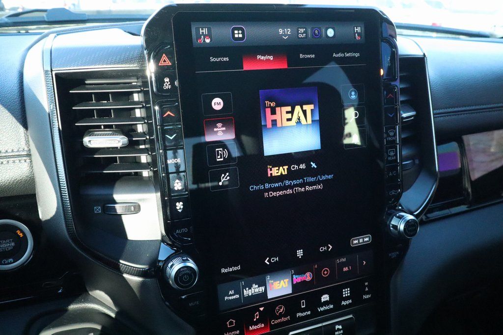 2026 Ram 1500 Bed Utility Group (Exterior 115V AC Outlet, MOPAR 4 Adjustable Cargo Tie-Down Hooks, and MOPAR Spray in Bedliner), Quick Order Package 21W Rebel, Rebel Level 2 Equipment Group (115V Auxiliary Rear Power Outlet, 14.4" Touchscreen Display, 2-Door Passive Entry, Front Door Locks, 4G LTE Wi-Fi Hot Spot, Accent Color Door Handles, Accent Color Premium Power Mirrors, Accent Color Tailgate Handle, Apple CarPlay, Auto Power-Folding Mirrors, Auto-Dimming Exterior Driver Mirror, Black Painted Exterior Mirrors Caps, Connected Travel and Traffic Services, Connectivity - US/Canada, Convex Wide-Angle Exterior Mirror Insert, Disassociated Touchscreen Display, Driver Seat Memory, Dual Wireless Charging Pad, Exterior Mirrors Approach Lamps, Exterior Mirrors Courtesy Lamps, Exterior Mirrors with Heating Element, Exterior Mirrors with Memory, Exterior Mirrors with Supplemental Signals, Front Passenger Interactive Display, Global Telematics Box Module, Google Android Auto, GPS Antenna Input, GPS Navigation, Harman/Kardon 19 Speaker Premium Sound, HD Radio, Heated Second Row Seats, Integrated Center Stack Radio, Integrated Voice Command with Bluetooth, Media Hub with 2 Charge Only USBs, Off-Road Information Pages, Power 2-Way Passenger Lumbar Adjust, Power Adjust 8-Way Front Passenger Seat, Power Adjustable Pedals with Memory, Power Tailgate, Proximity Approach/Departure Lamps, Radio: Uconnect 5 Nav with 14.4" Display, Radio/Driver Seat/Mirrors/Pedals Memory, Rain Sensitive Windshield Wipers, Rear Window Defroster, Security Alarm, SiriusXM Radio Service, SiriusXM with 360L, Smartphone as a Key Capable, and USB Host Flip), 10 Speakers, 3.92 Rear Axle Ratio, 4 Way Front Headrests, 4-Wheel Disc Brakes, ABS brakes, Active Noise Control System, Air Conditioning, Alloy wheels, AM/FM radio: SiriusXM with 360L, Apple CarPlay/Android Auto, Auto High-beam Headlights, Auto-dimming Rear-View mirror, Automatic temperature control, Black Exterior Mirrors, Brake assist, Bucket Seats, Cloth/Vinyl Bucket Seats, Compass, Delay-off headlights, Dome Dual LED Reading Lamp, Driver door bin, Driver vanity mirror, Dual front impact airbags, Dual front side impact airbags, Dual-Pane Panoramic Sunroof, Electronic Stability Control, Front anti-roll bar, Front Bucket Seats, Front Center Armrest w/Storage, Front dual zone A/C, Front fog lights, Front reading lights, Front Seat Back Map Pockets, Front wheel independent suspension, Full Length Upgraded Floor Console, Fully automatic headlights, Garage door transmitter, Heated door mirrors, Heated Front Seats, Heated front seats, Heated Steering Wheel, Heated steering wheel, Illuminated entry, Leather steering wheel, Low tire pressure warning, Manual Folding Exterior Mirrors, Navigation System, Occupant sensing airbag, Outside temperature display, Overhead airbag, Overhead console, Panic alarm, ParkView Rear Back-Up Camera, Passenger door bin, Passenger vanity mirror, Power 2-Way Driver Lumbar Adjust, Power Adjust 8-Way Driver Seat, Power door mirrors, Power driver seat, Power steering, Power windows, Radio data system, Radio: Uconnect 5 Navigation with 12.0" Display, RamBox Cargo Management System, Rear 60/40 Folding Seat, Rear anti-roll bar, Rear seat center armrest, Rear step bumper, Rear Wheelhouse Liners, Remote keyless entry, Speed control, Split folding rear seat, Steering wheel mounted audio controls, Tachometer, Telescoping steering wheel, Tilt steering wheel, Traction control, Trailer Brake Control, Trip computer, Variably intermittent wipers, Voltmeter, and Wheels: 18" x 8.0" Painted Mid-Gloss Black. Price includes:$3500 - 2026 National Retail Bonus Cash . Exp. 04/30/2026